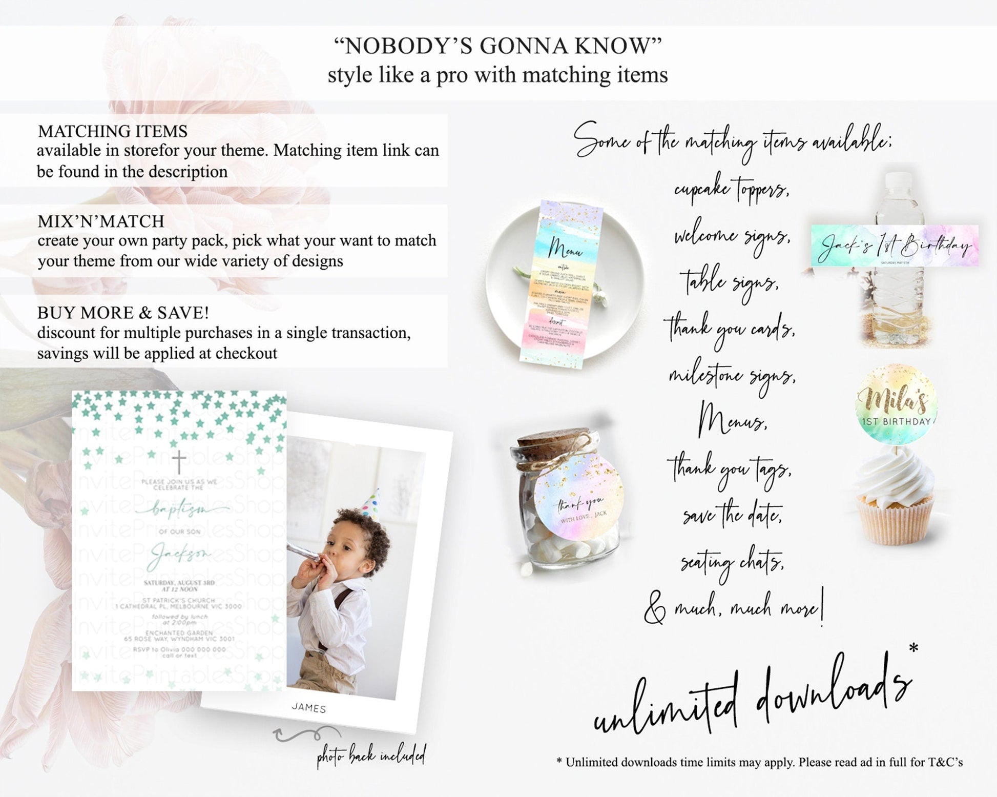 Star Baptism Invitation Pastel Stars Baptism 1st Birthday Invitation Rainbow Colors Confetti Twinkle Little Star Christening Invite D10310