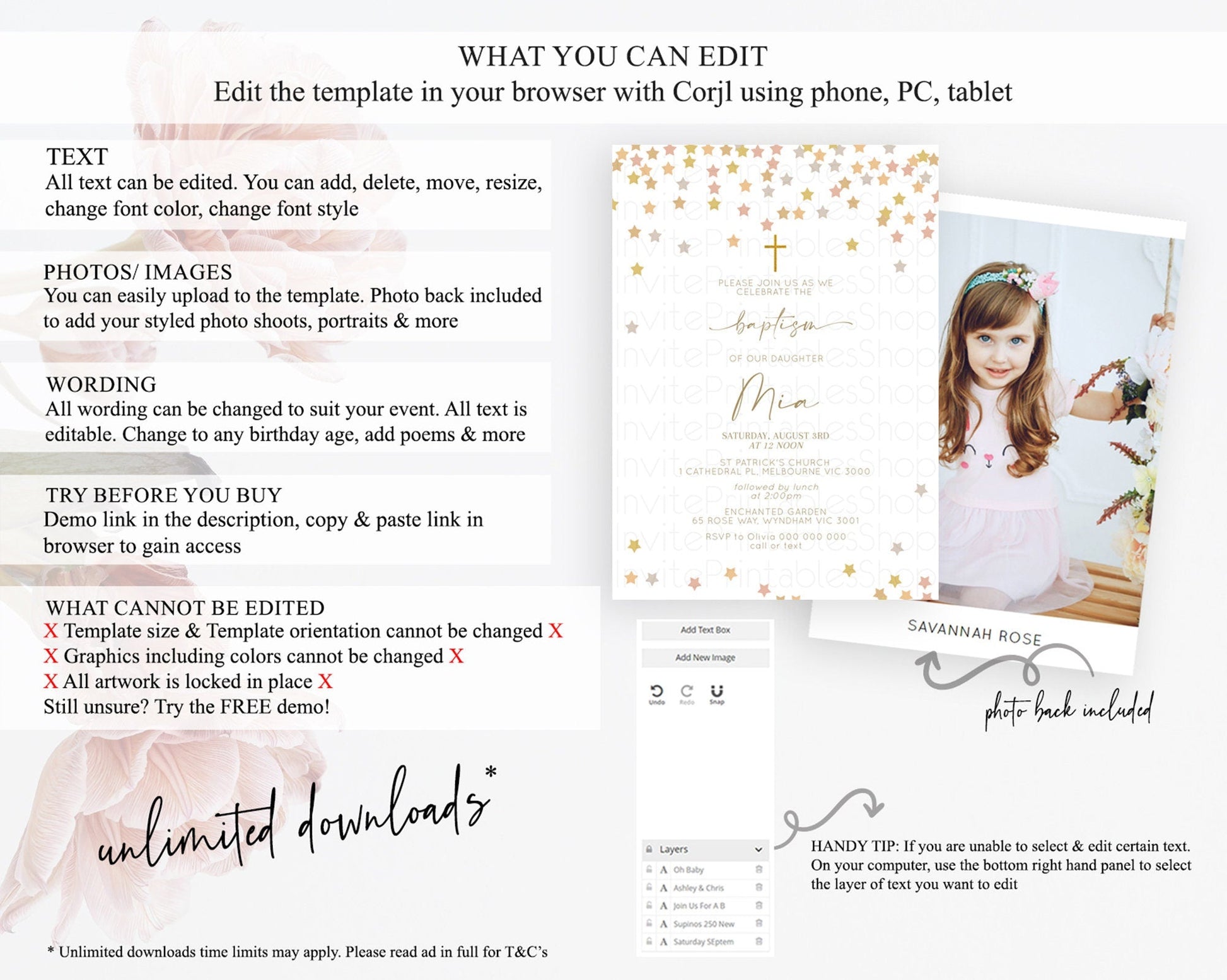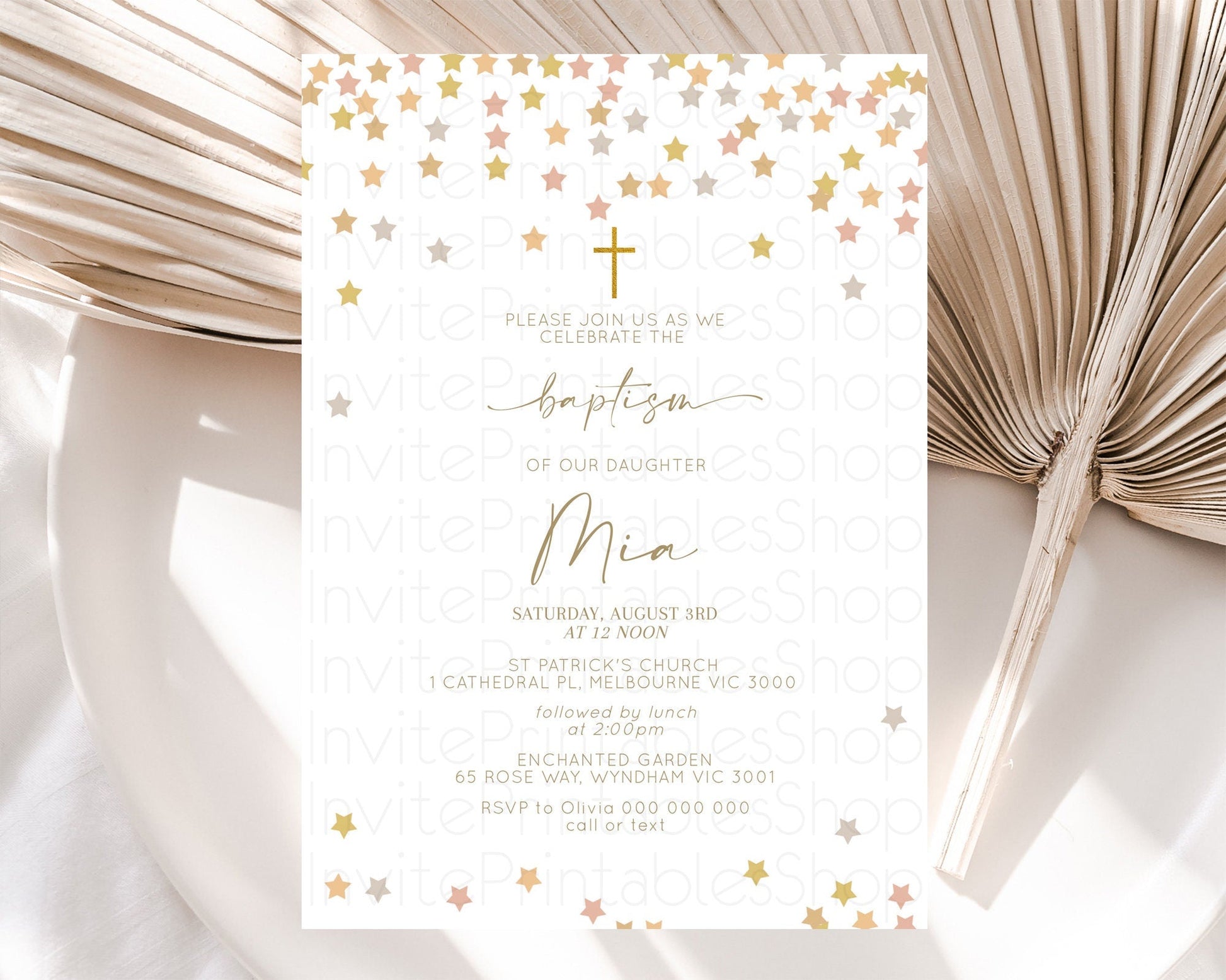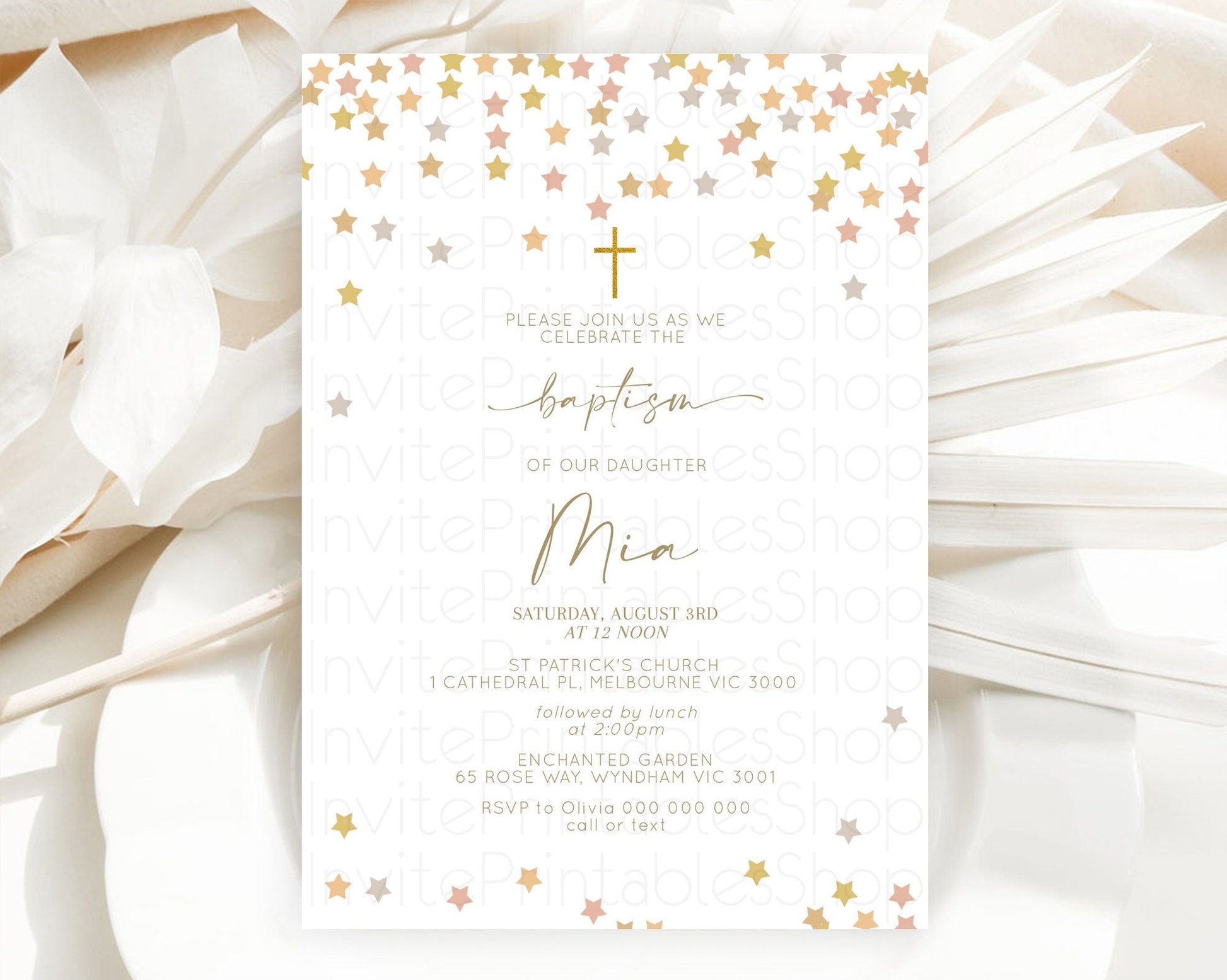 Star Baptism Invitation Pastel Stars Baptism 1st Birthday Invitation Rainbow Colors Confetti Twinkle Little Star Christening Invite D10342