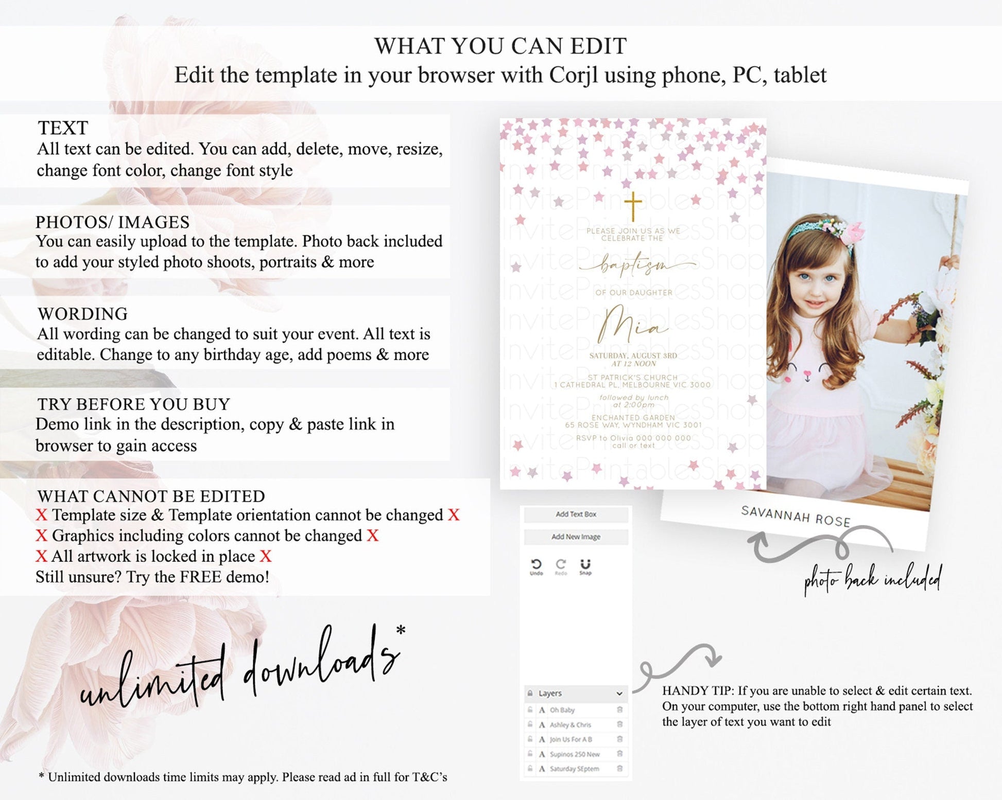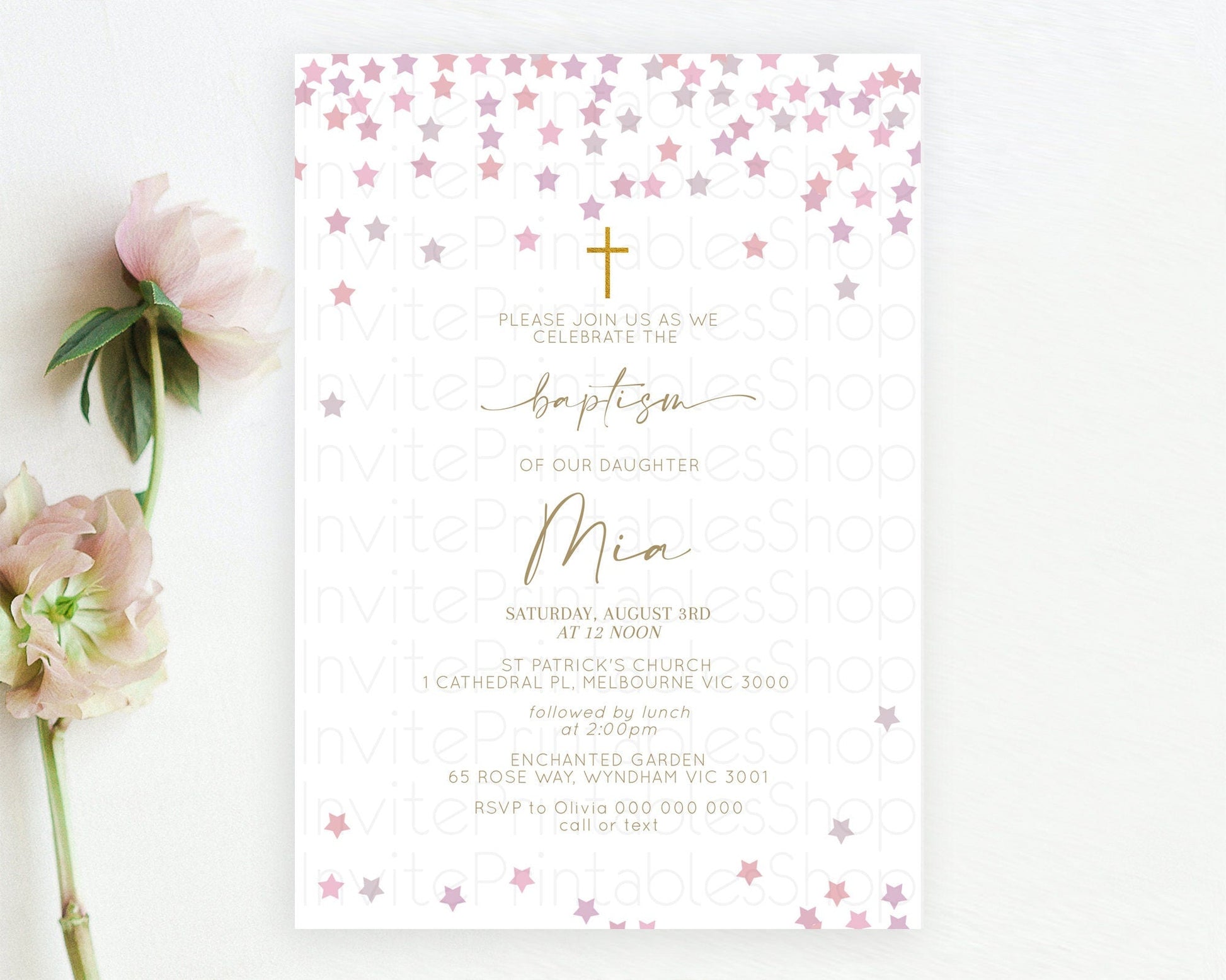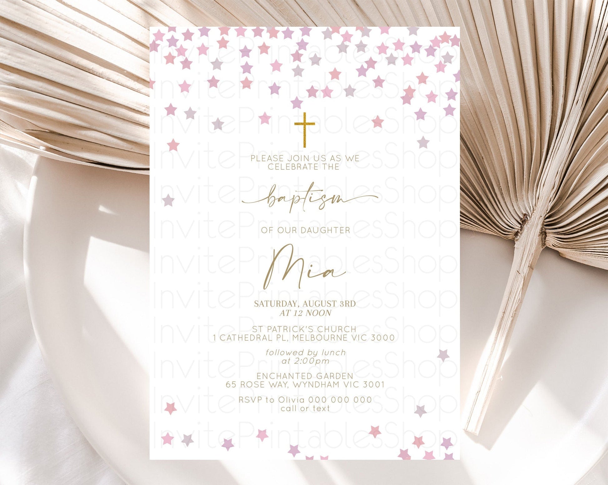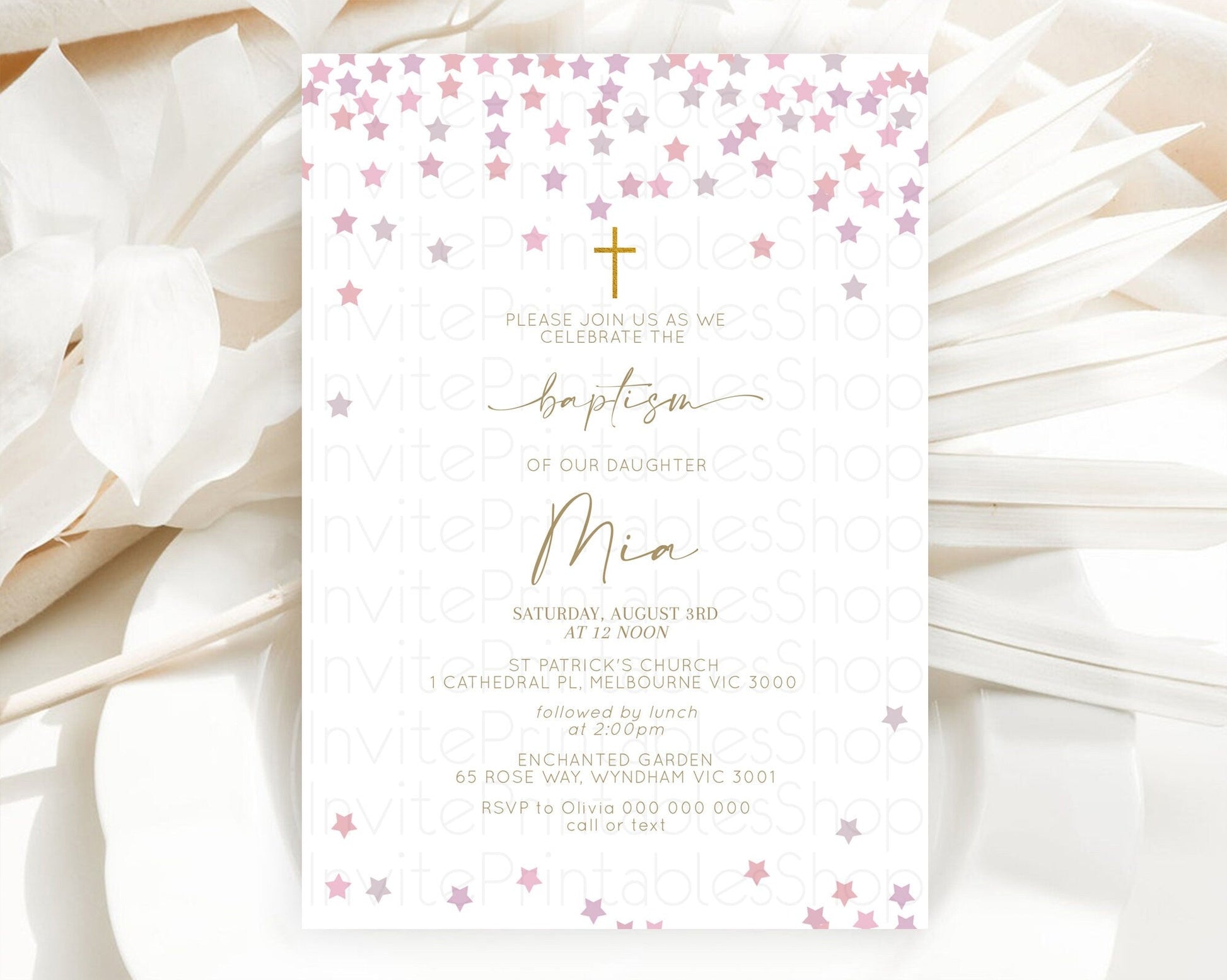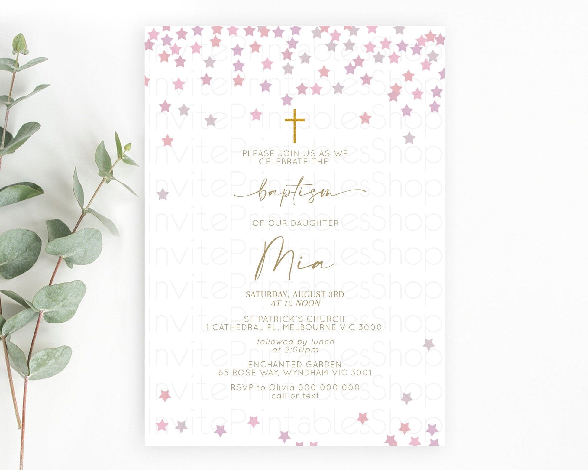 Star Baptism Invitation Pastel Stars Baptism 1st Birthday Invitation Rainbow Colors Confetti Twinkle Little Star Christening Invite D10344