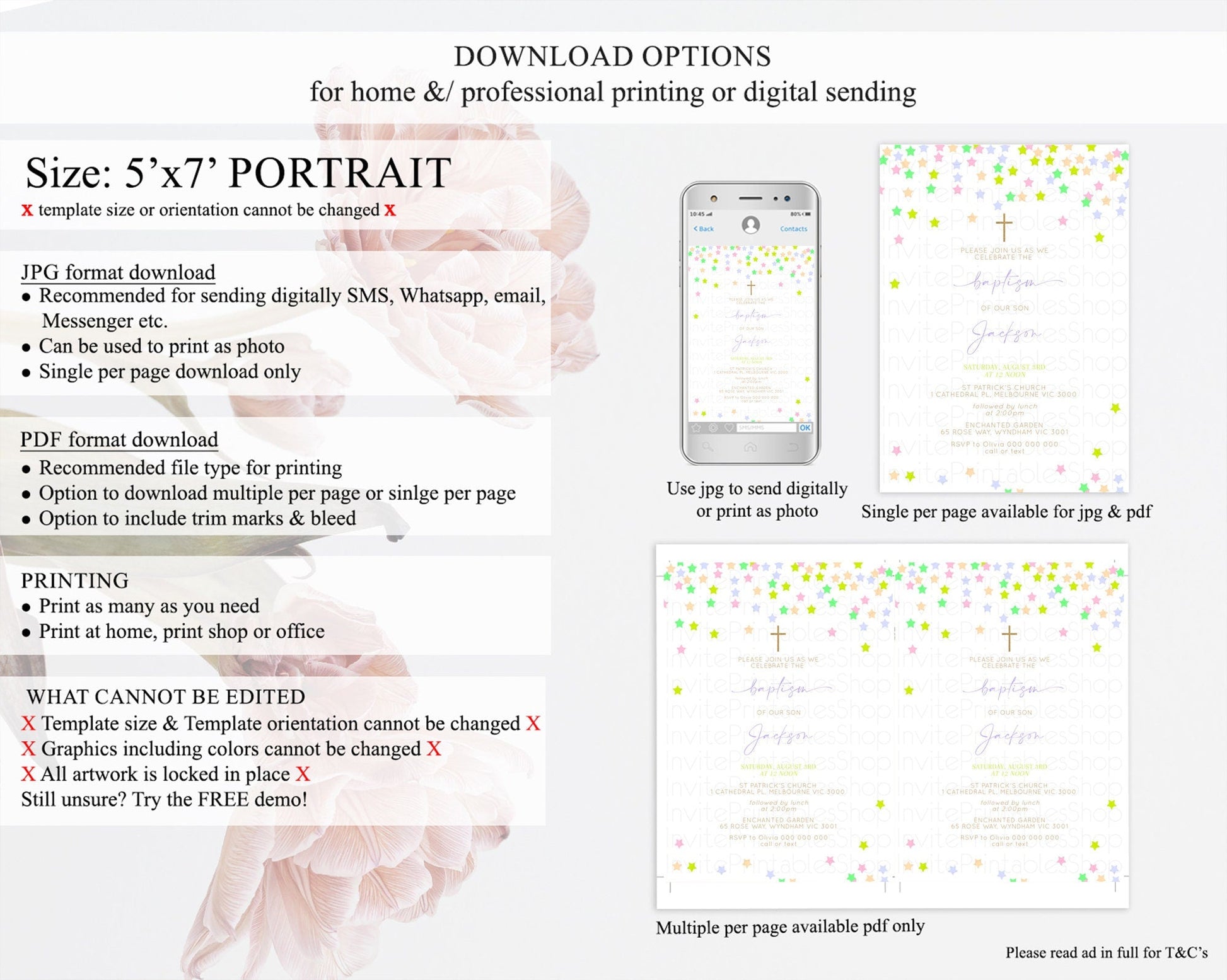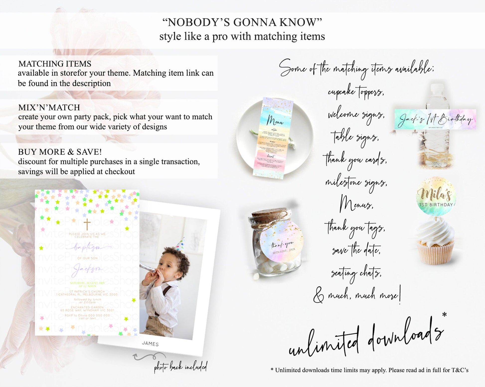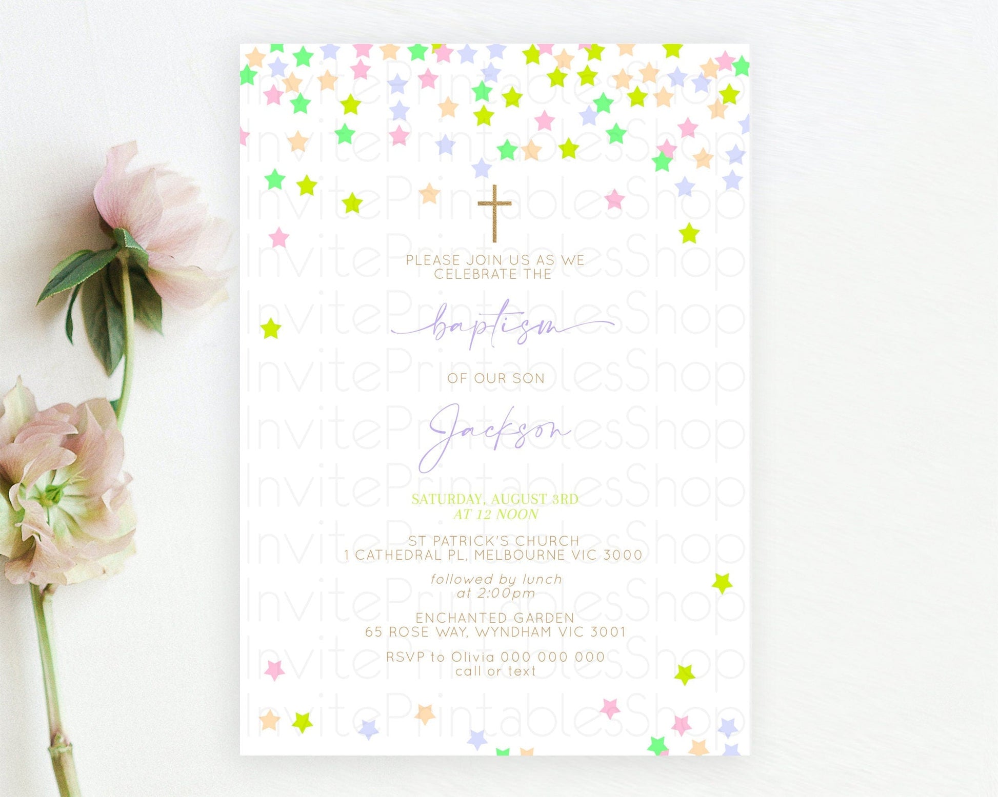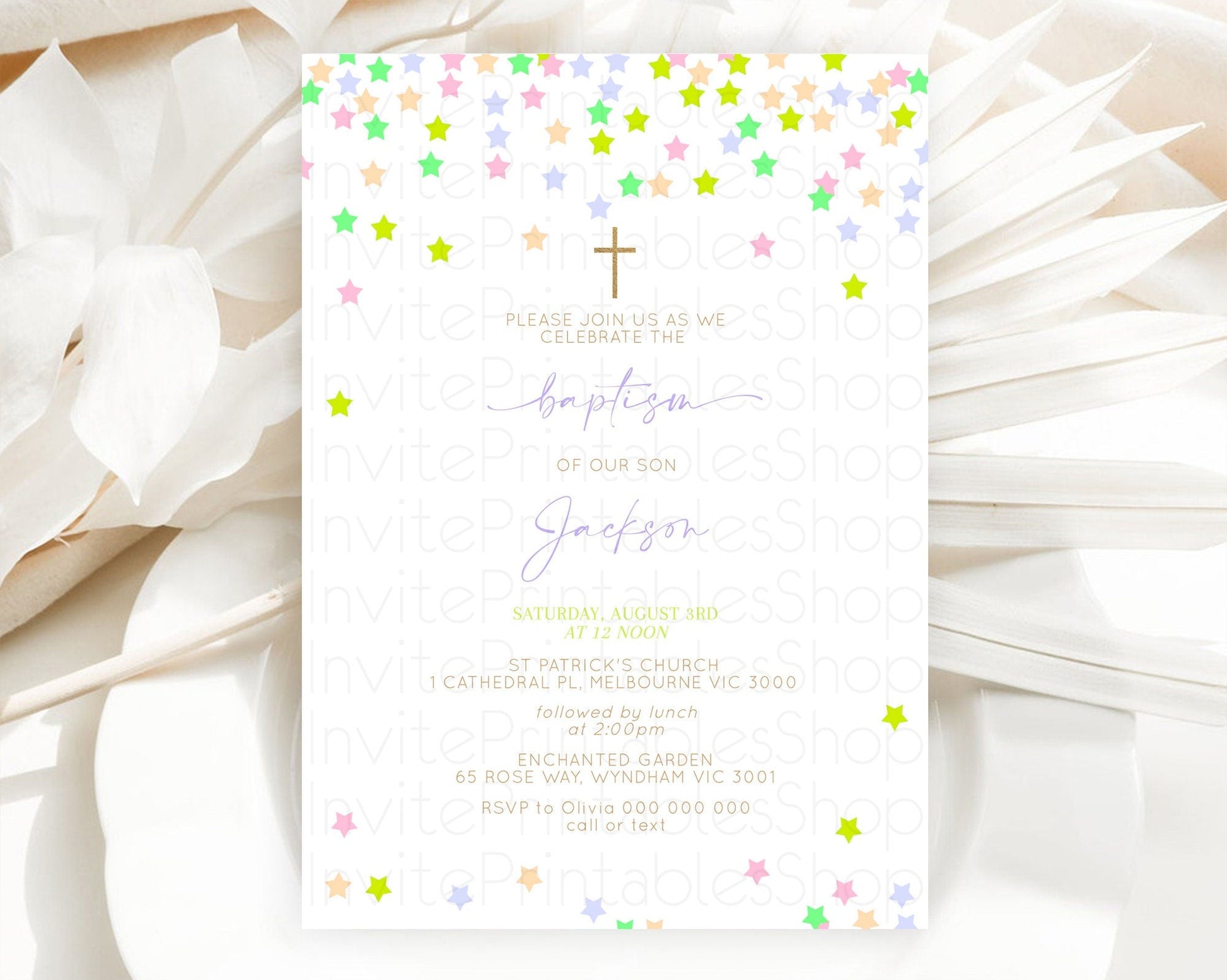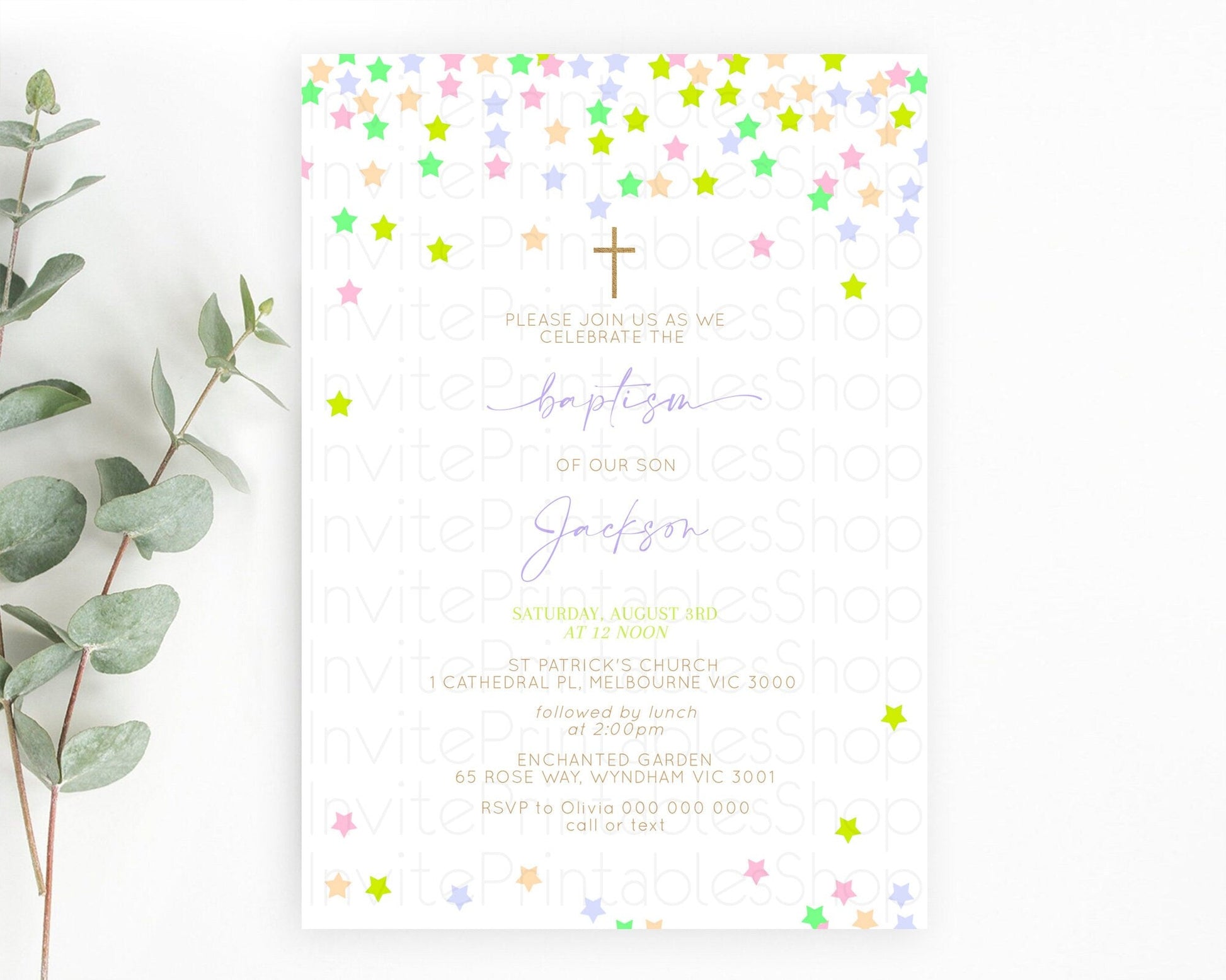 Star Baptism Invitation Pastel Stars Baptism 1st Birthday Invitation Rainbow Colors Confetti Twinkle Little Star Christening Invite D10396