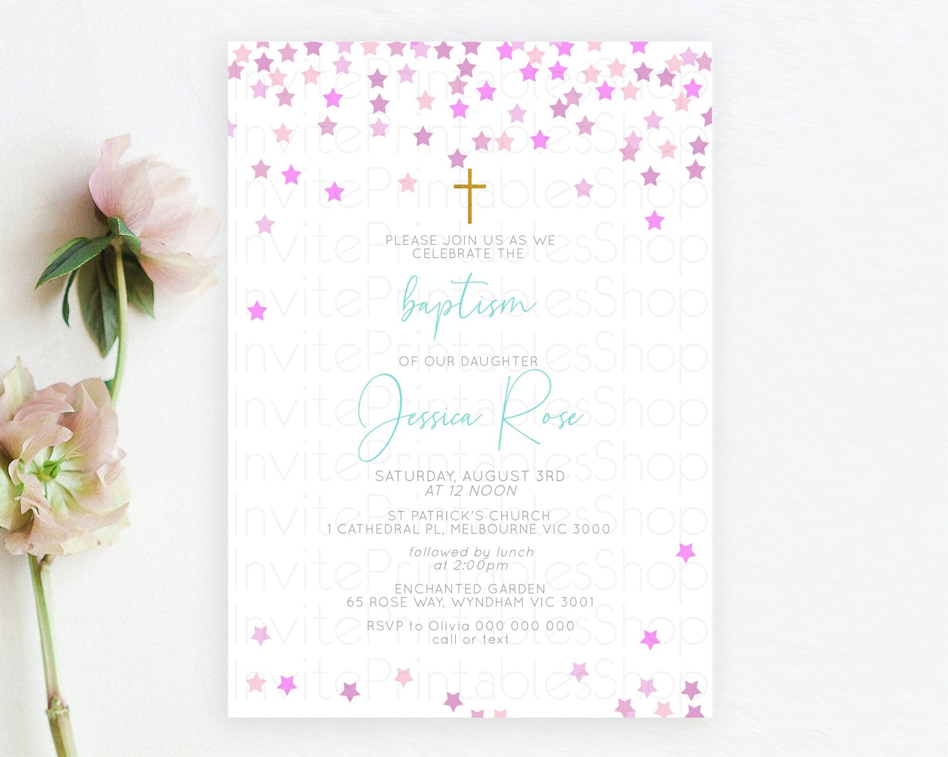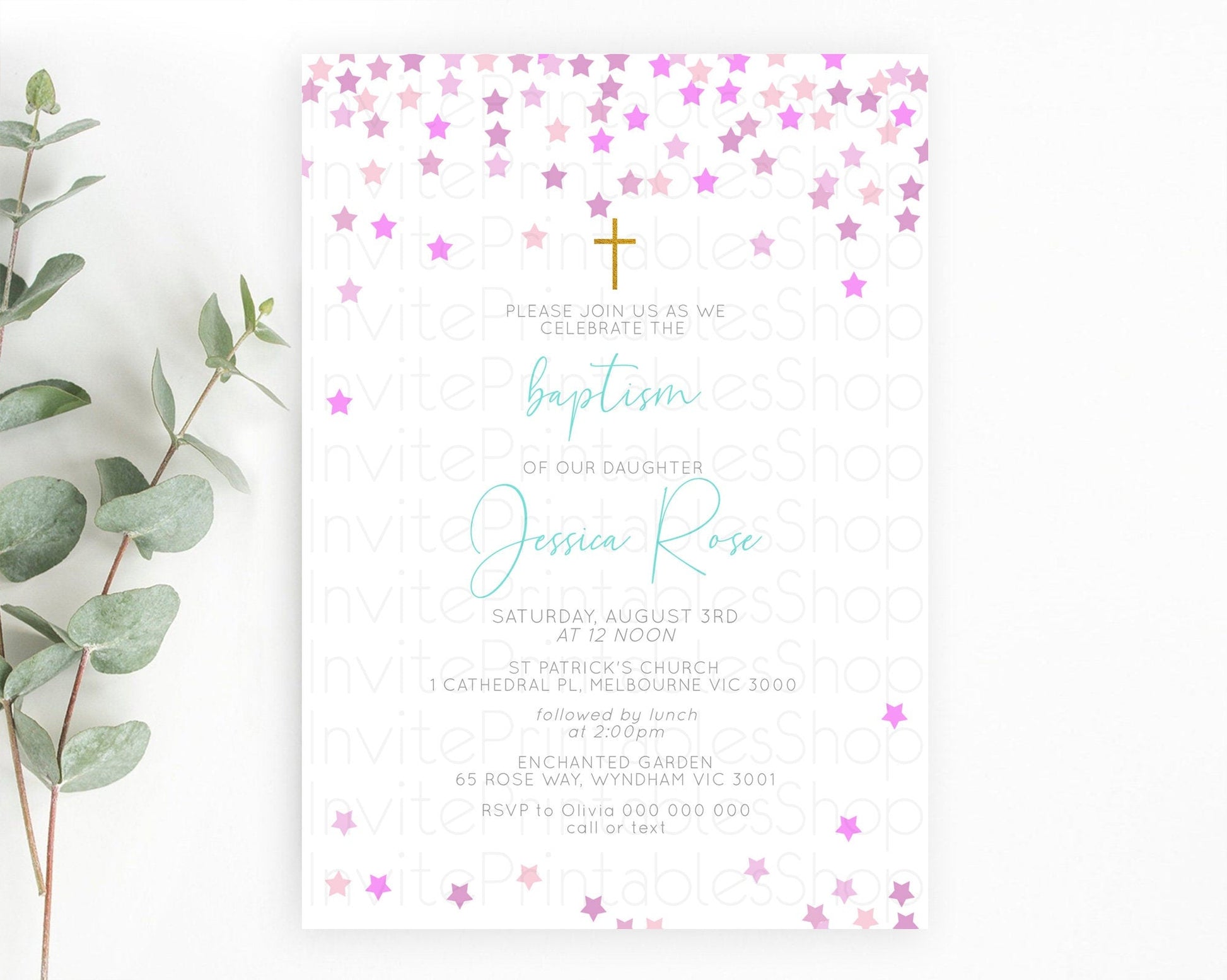 Star Baptism Invitation Pastel Stars Baptism 1st Birthday Invitation Rainbow Colors Confetti Twinkle Little Star Christening Invite D10403