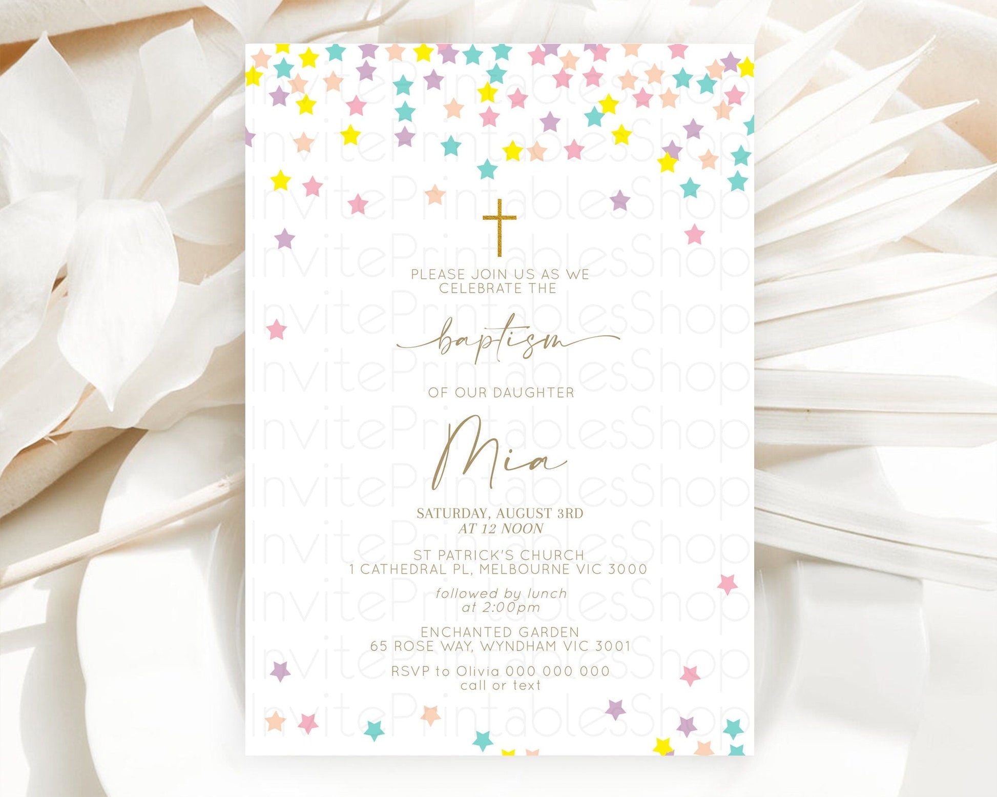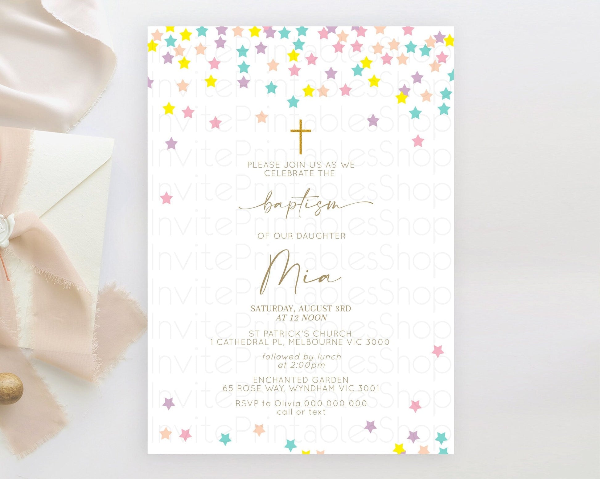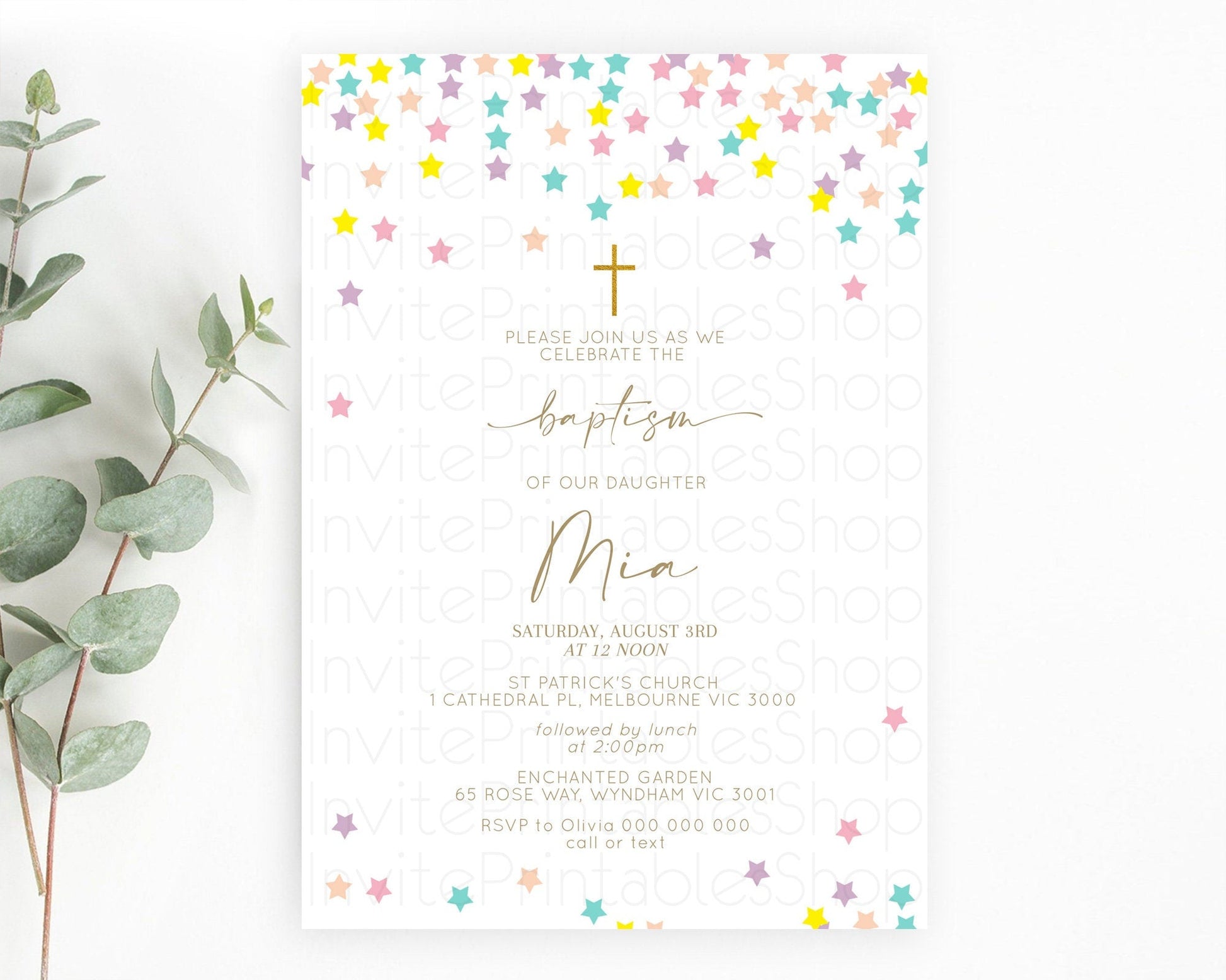 Star Baptism Invitation Pastel Stars Baptism 1st Birthday Invitation Rainbow Colors Confetti Twinkle Little Star Christening Invite D10601