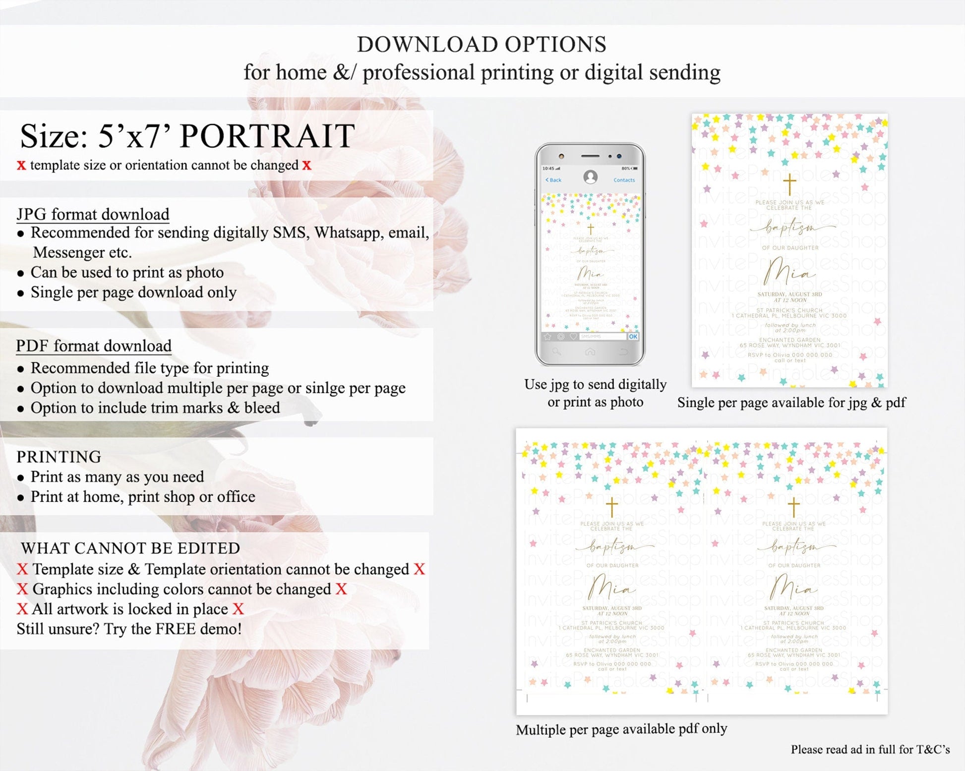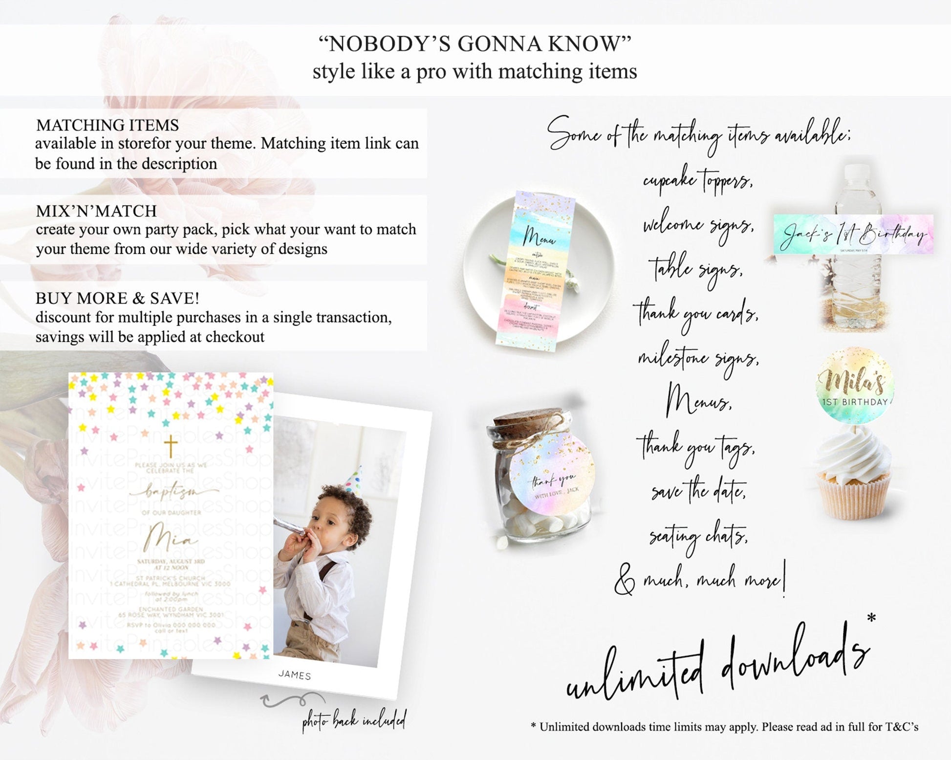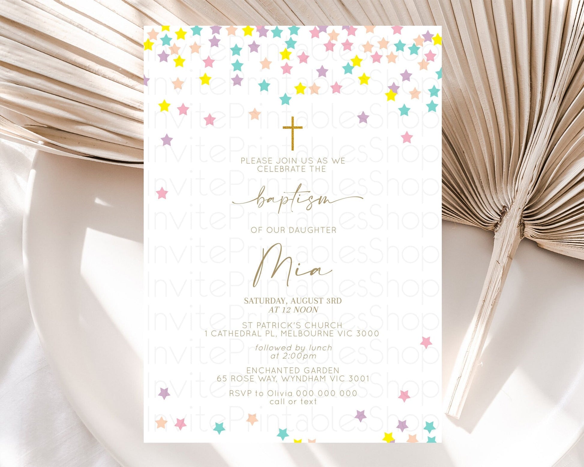 Star Baptism Invitation Pastel Stars Baptism 1st Birthday Invitation Rainbow Colors Confetti Twinkle Little Star Christening Invite D10601