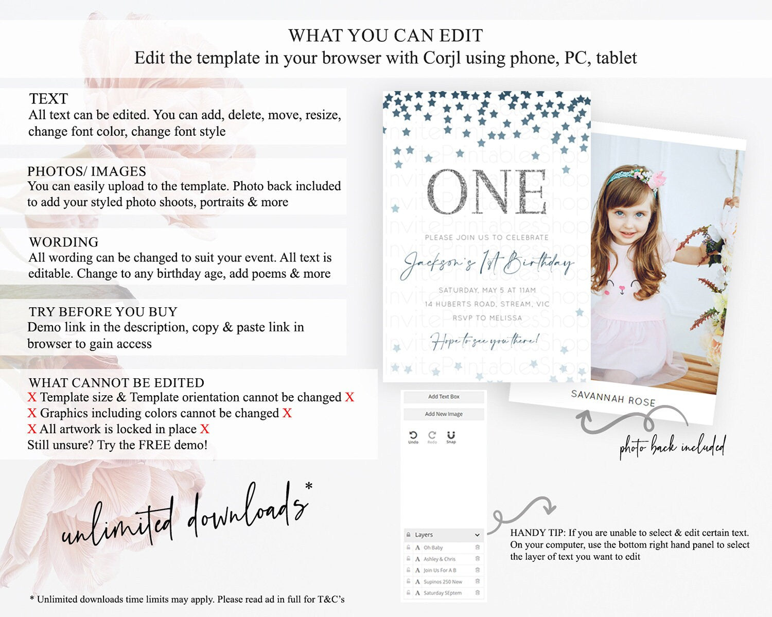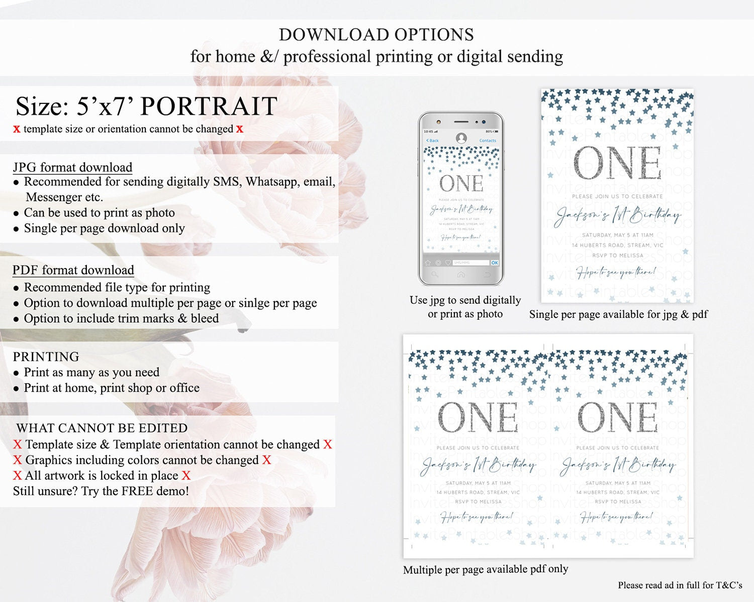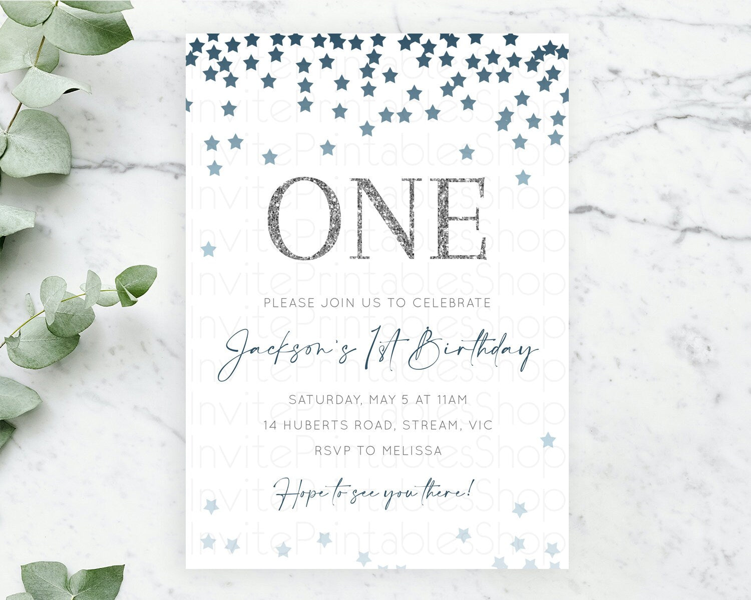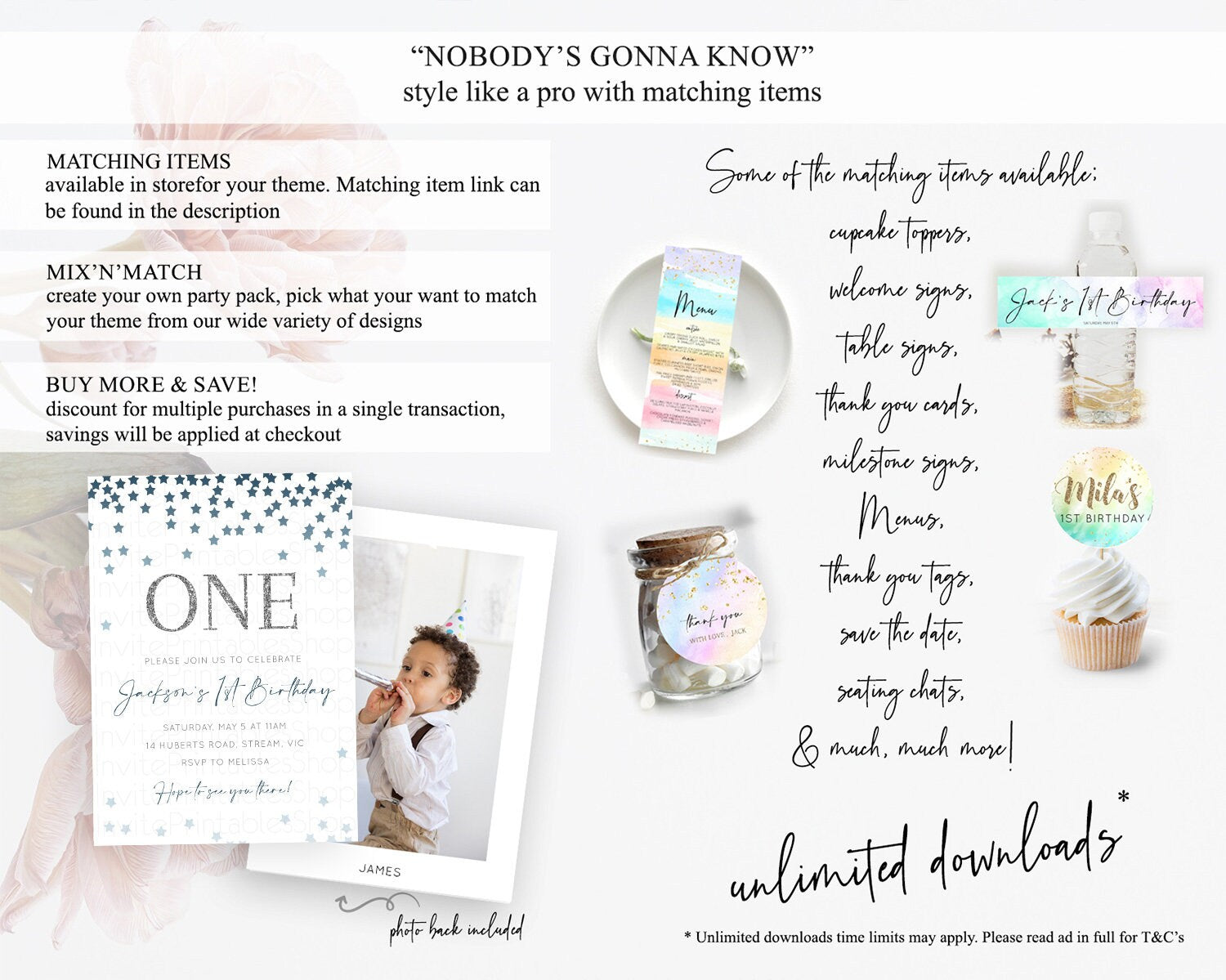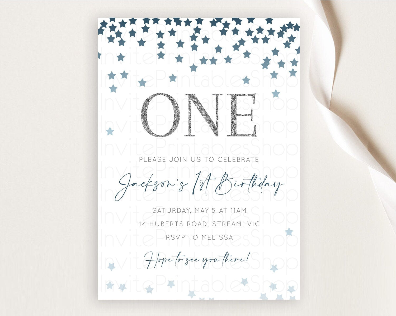 Star Birthday Invitation Pastel Stars Invite Shooting Star Party Rainbow Colorful Confetti Twinkle Little Star 2nd First Birthday D10308