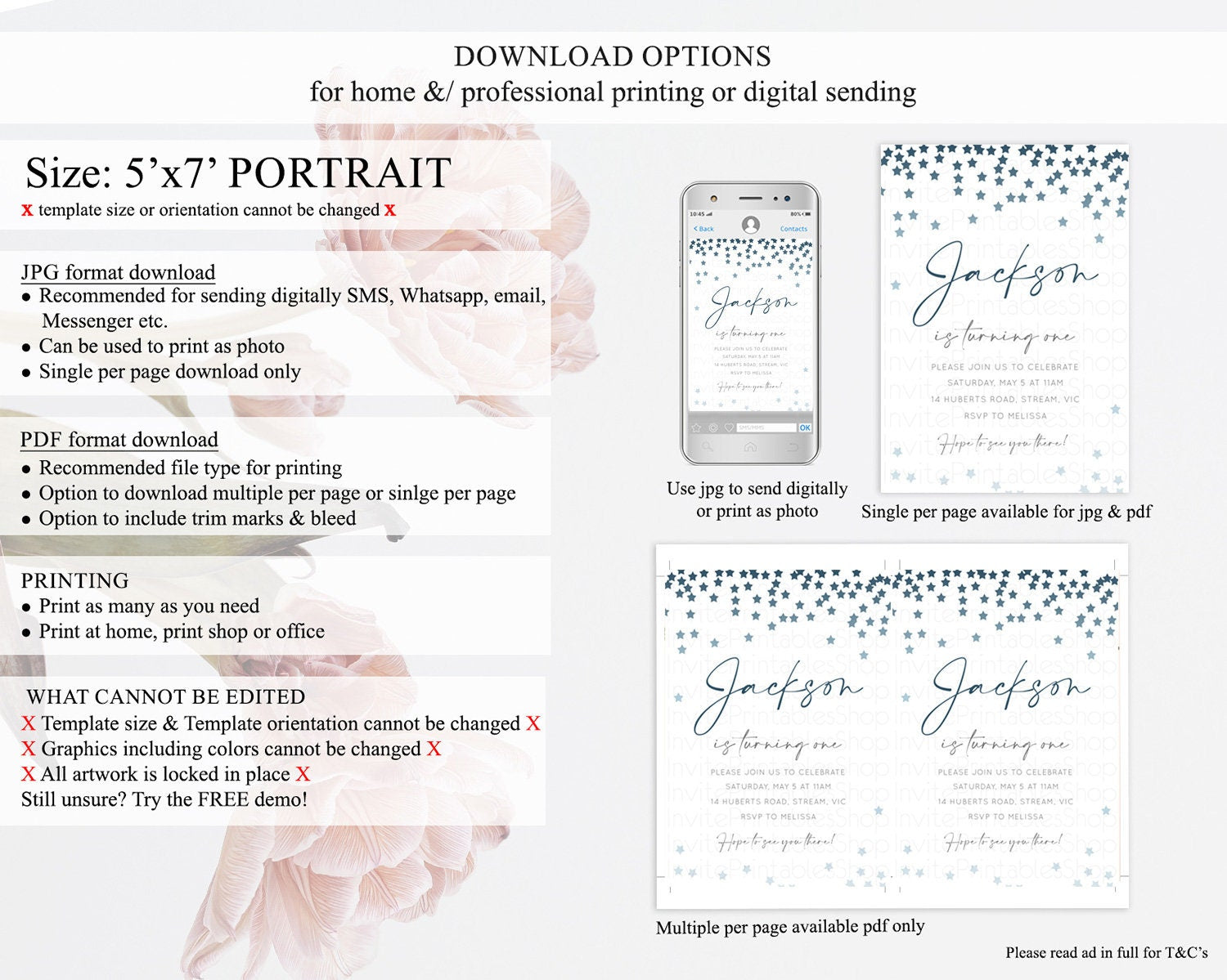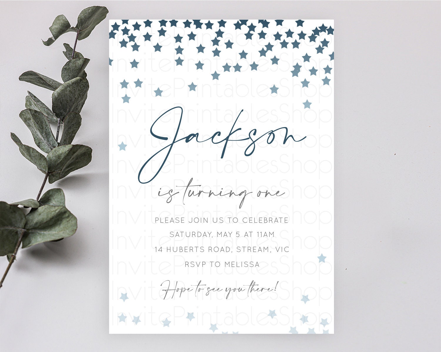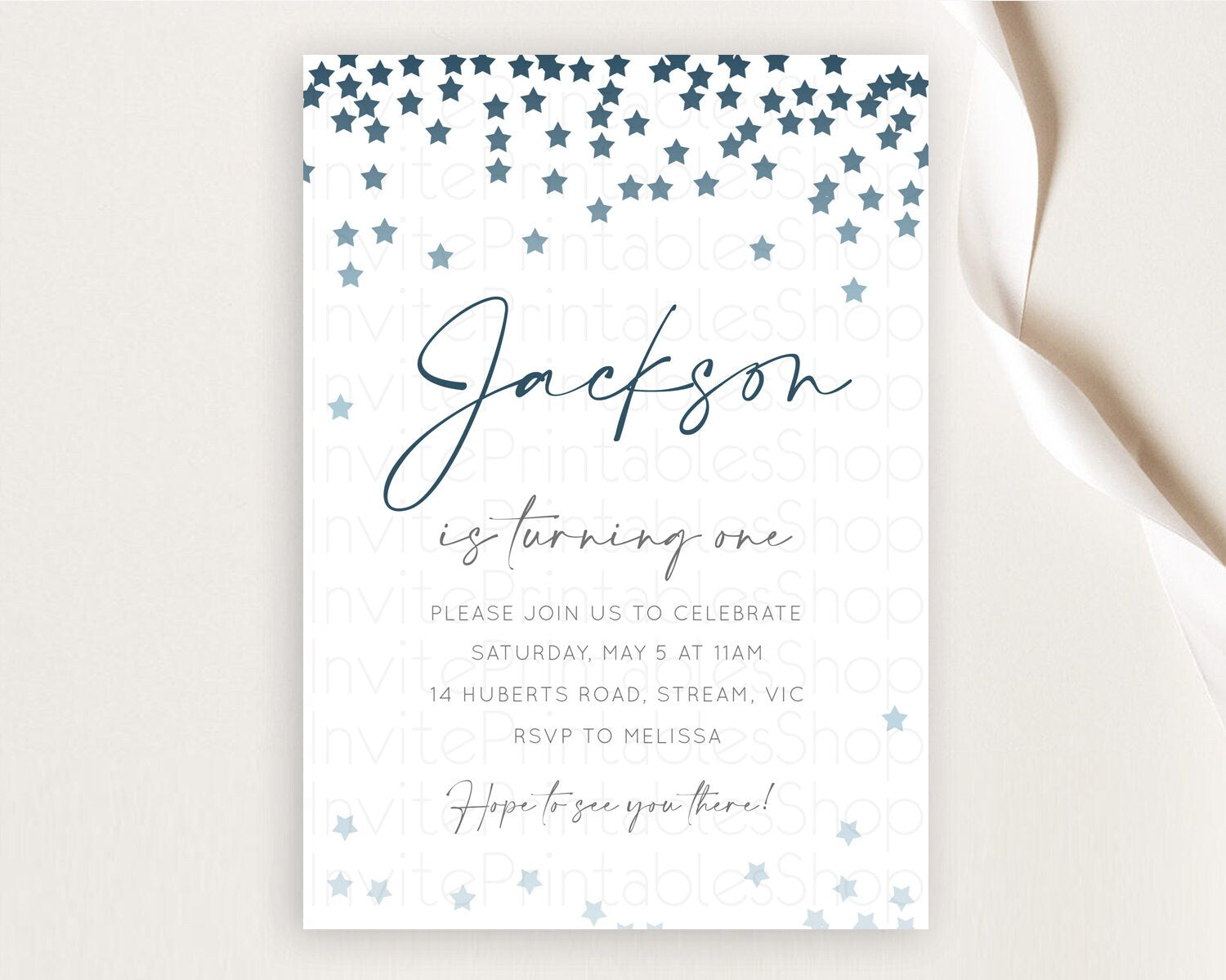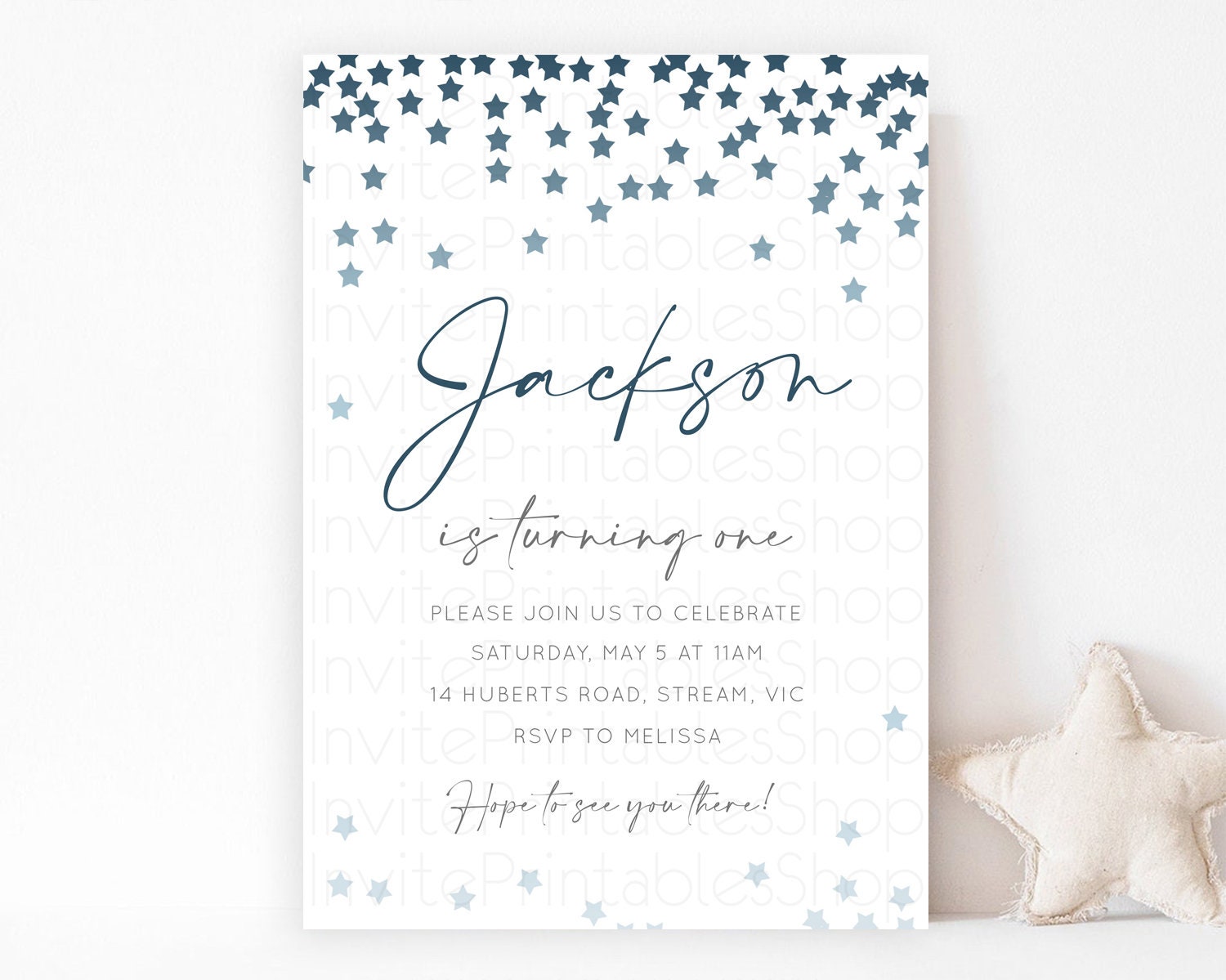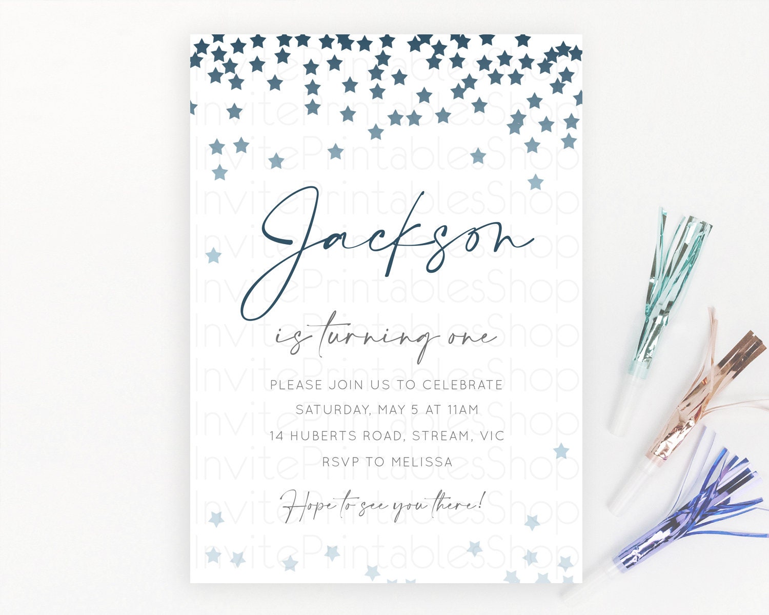 Star Birthday Invitation Pastel Stars Invite Shooting Star Party Rainbow Colorful Confetti Twinkle Little Star 2nd First Birthday D10308