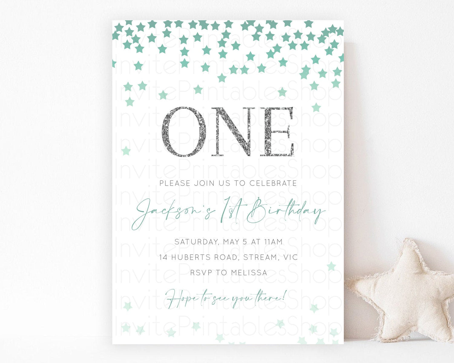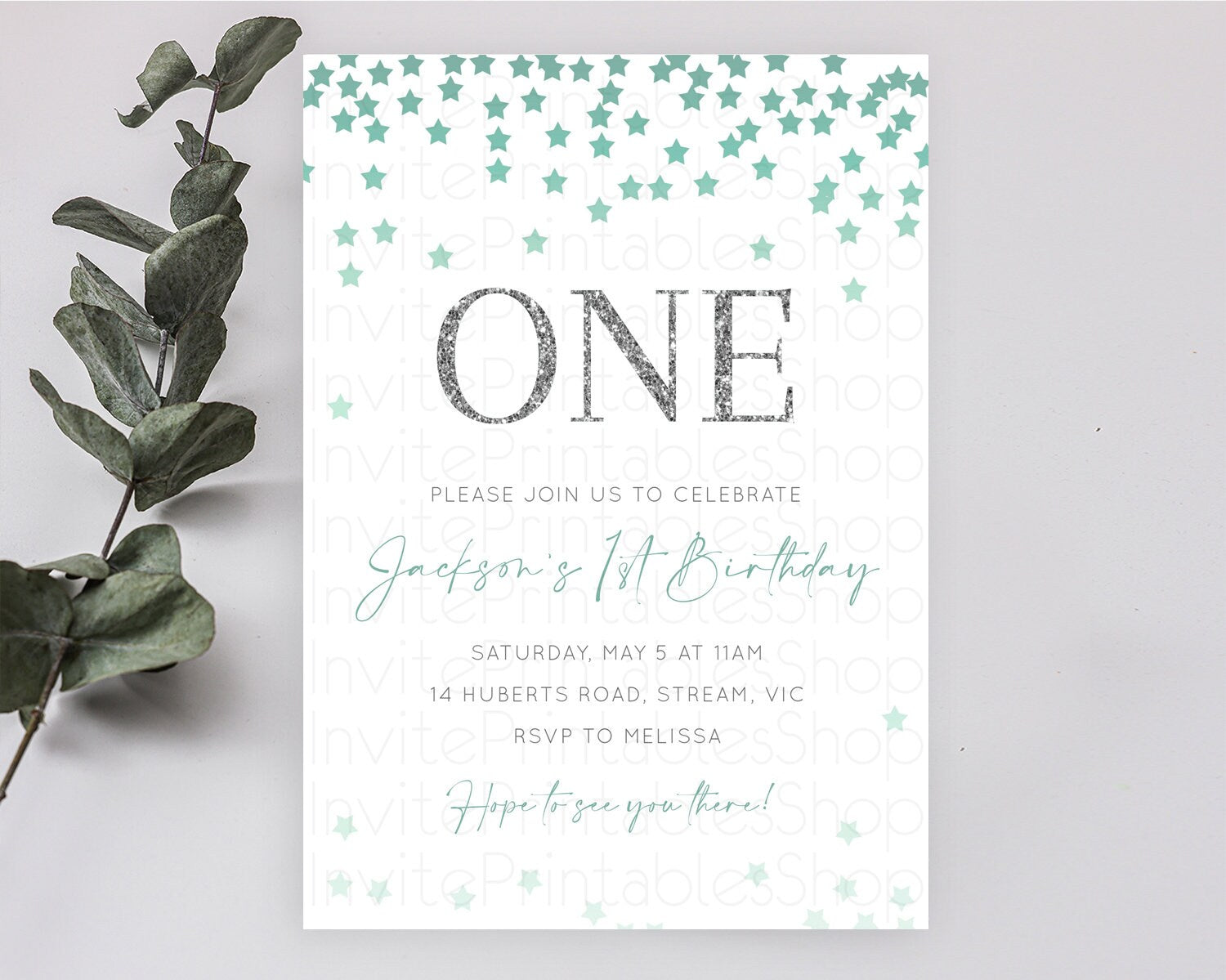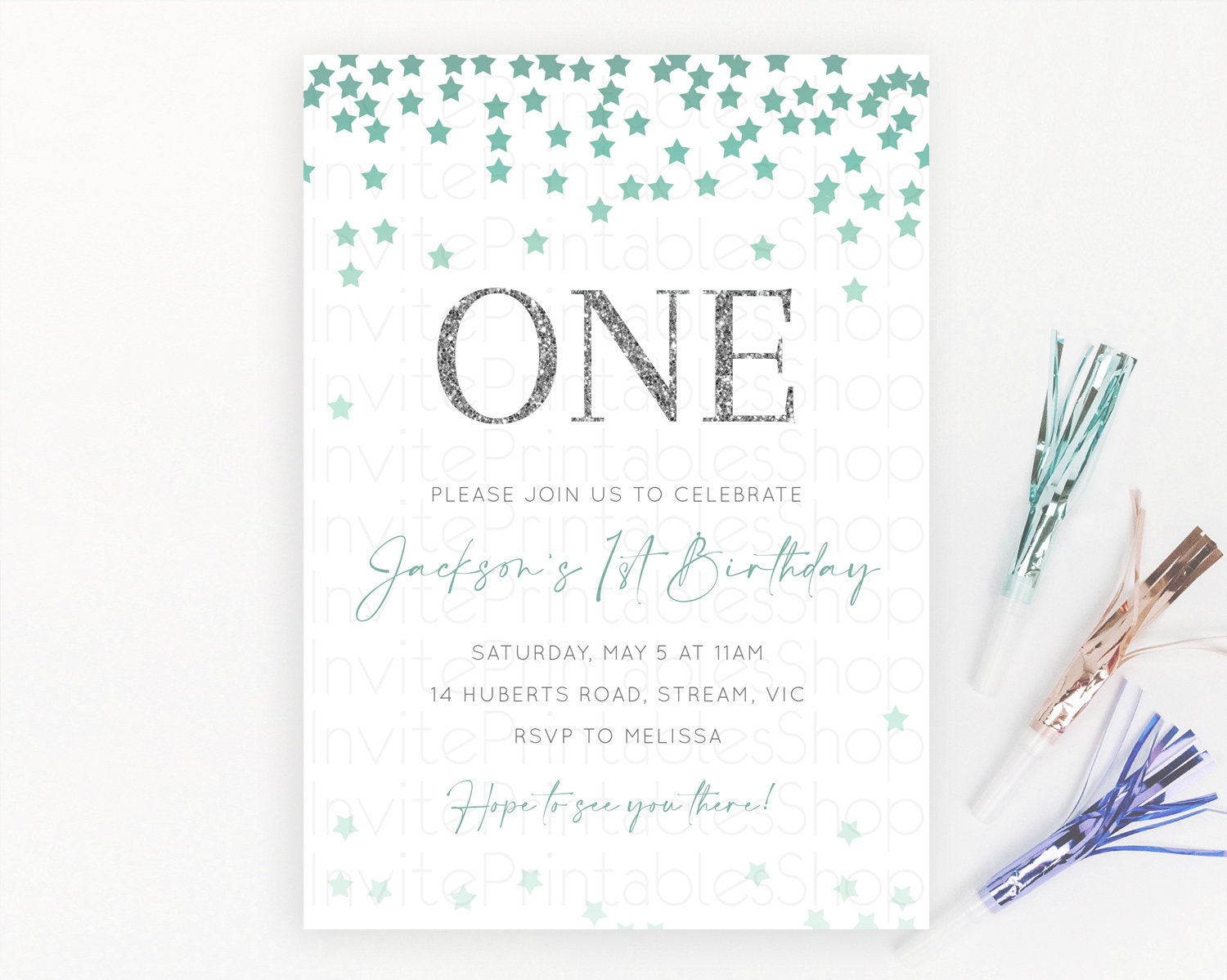 Star Birthday Invitation Pastel Stars Invite Shooting Star Party Rainbow Colorful Confetti Twinkle Little Star 2nd First Birthday D10310