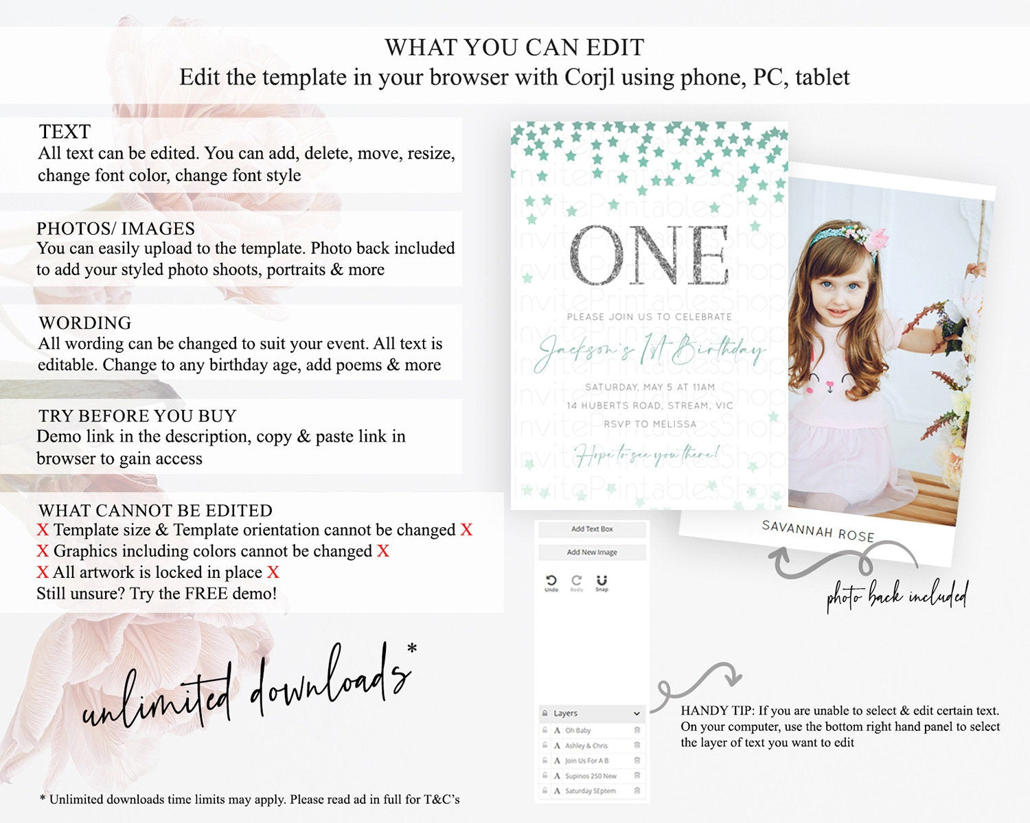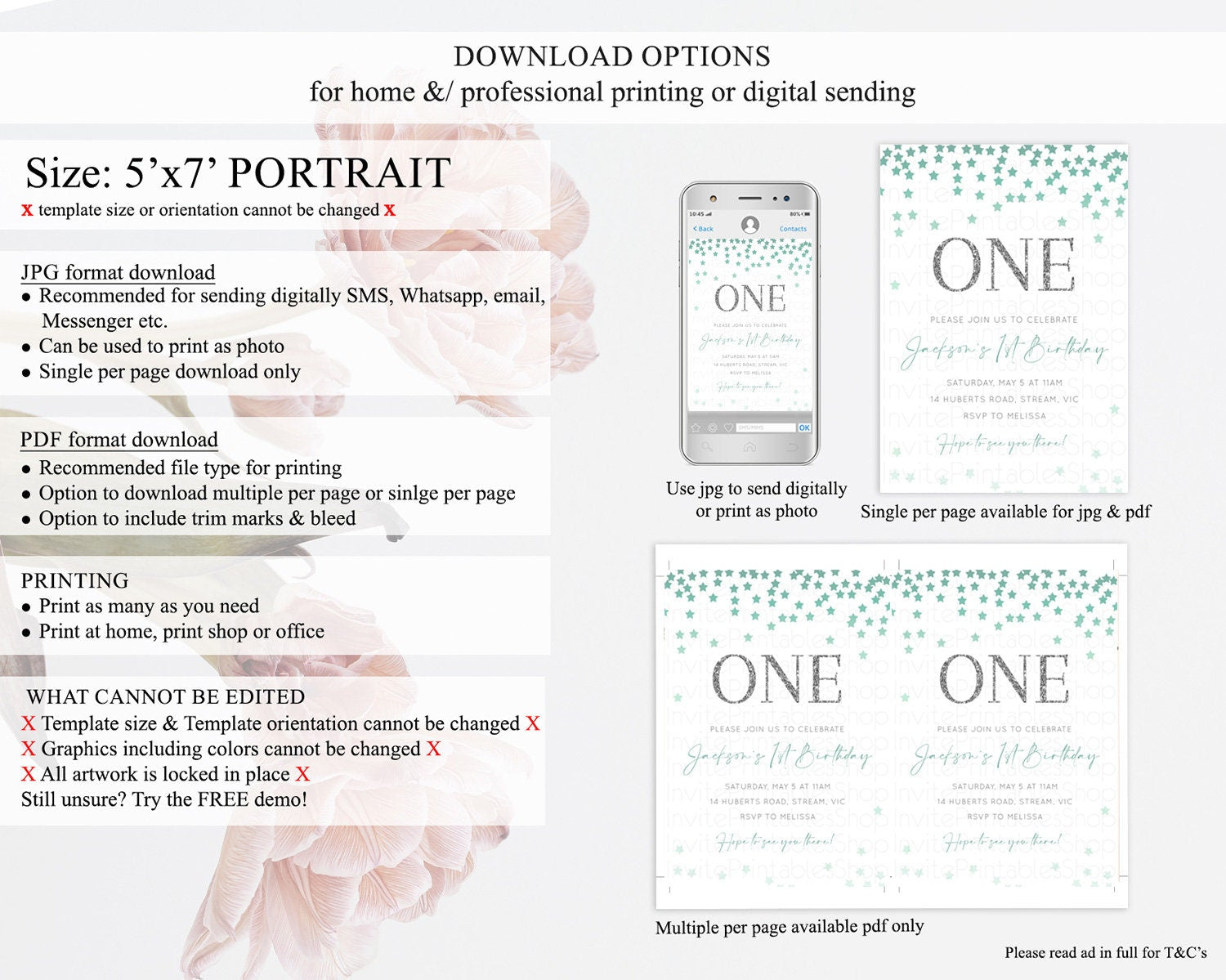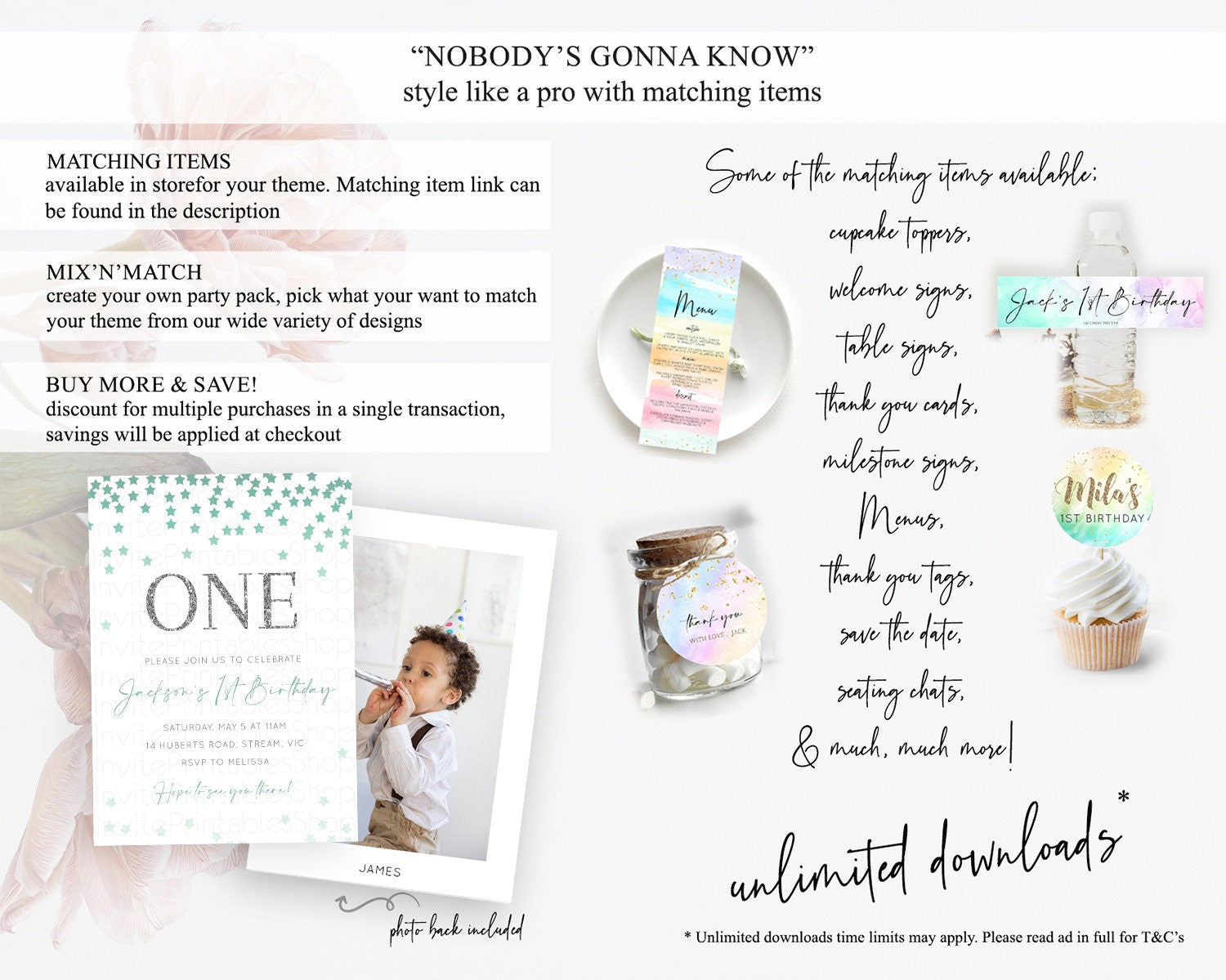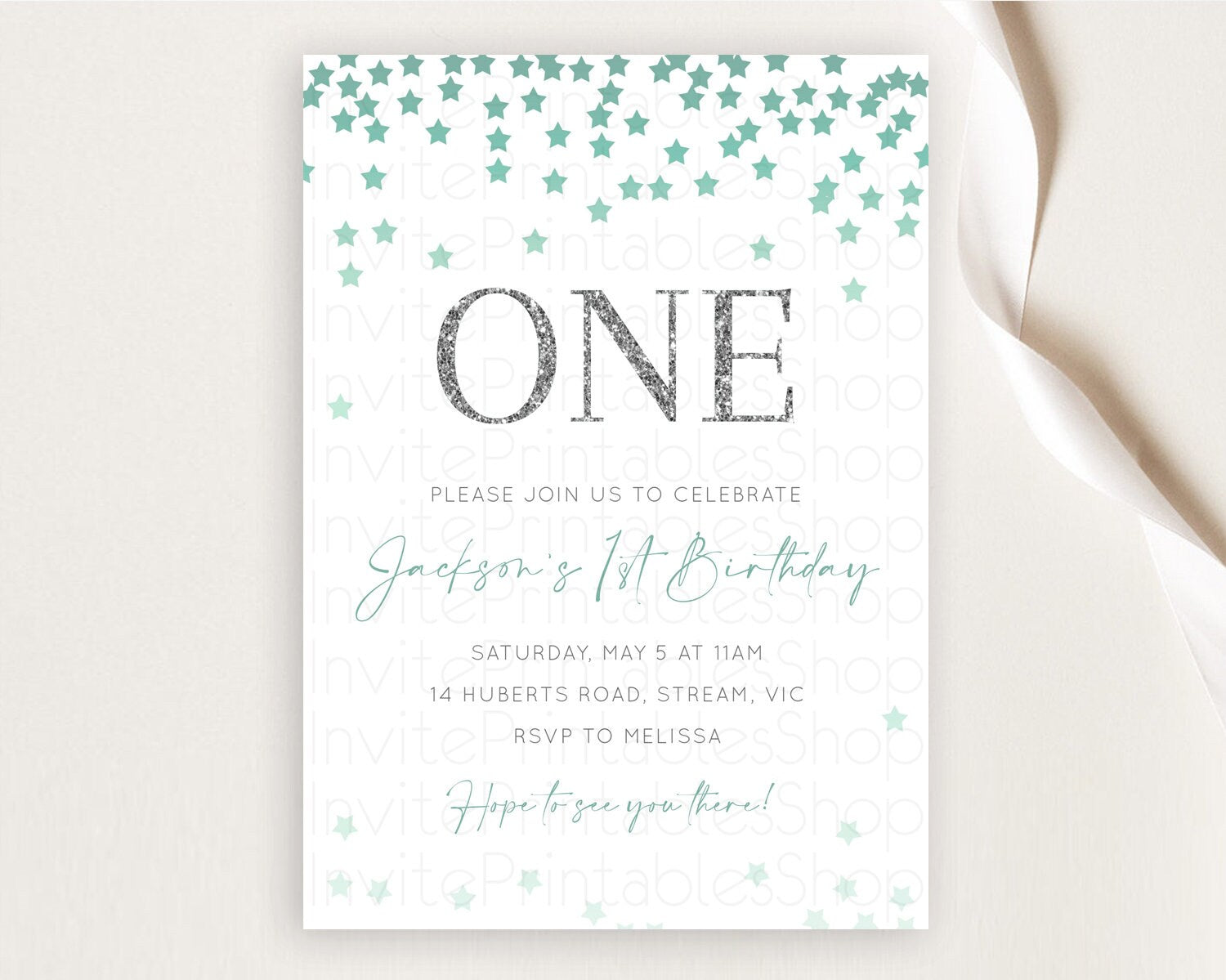 Star Birthday Invitation Pastel Stars Invite Shooting Star Party Rainbow Colorful Confetti Twinkle Little Star 2nd First Birthday D10310