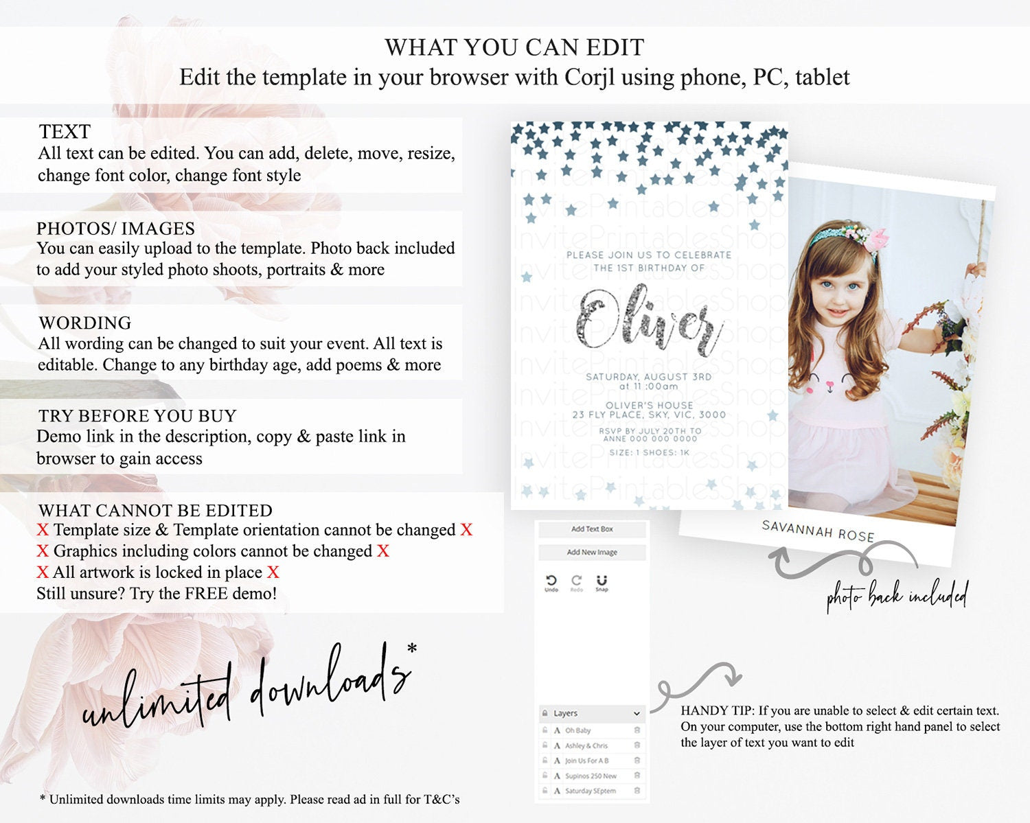 • After purchase, Corjl emails your editing link. Allow up to 15 minutes for delivery.