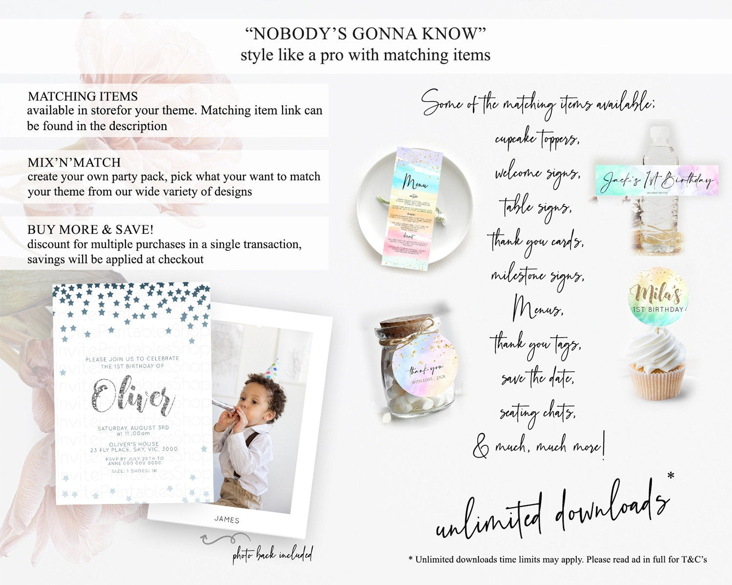 • Content shown in your gallery images is the source of truth for what’s included.