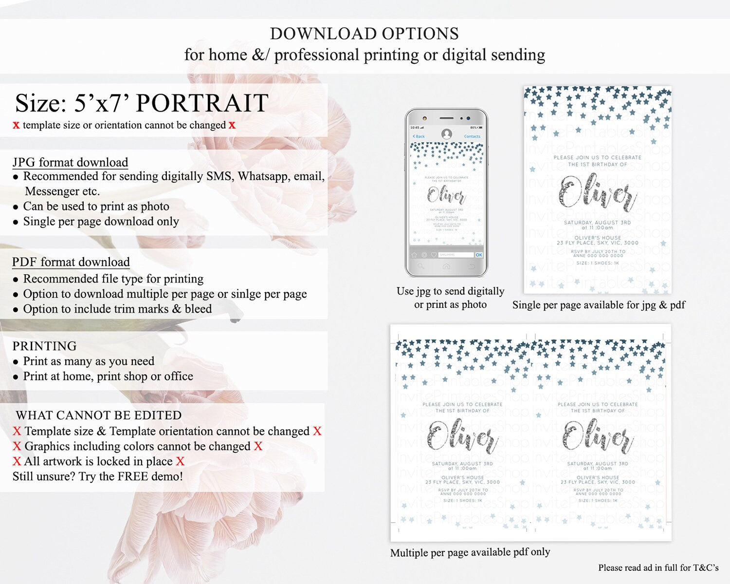 • Template size & orientation cannot be changed. Please use the demo link to confirm this product suits your needs.