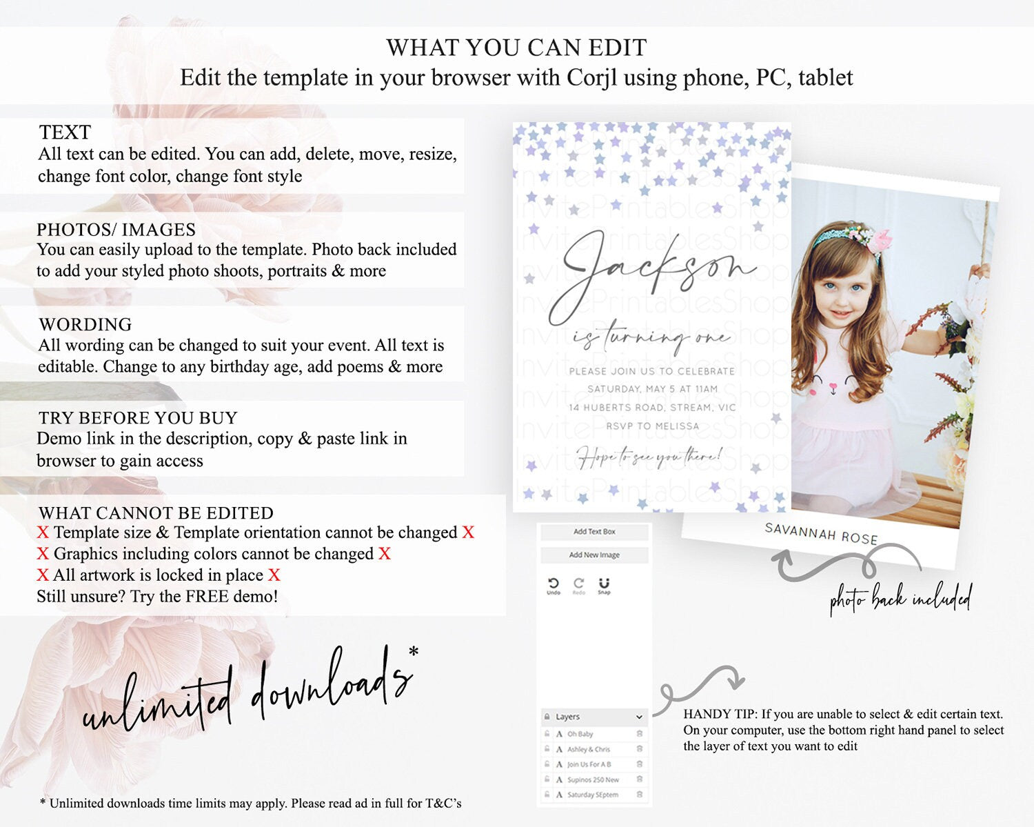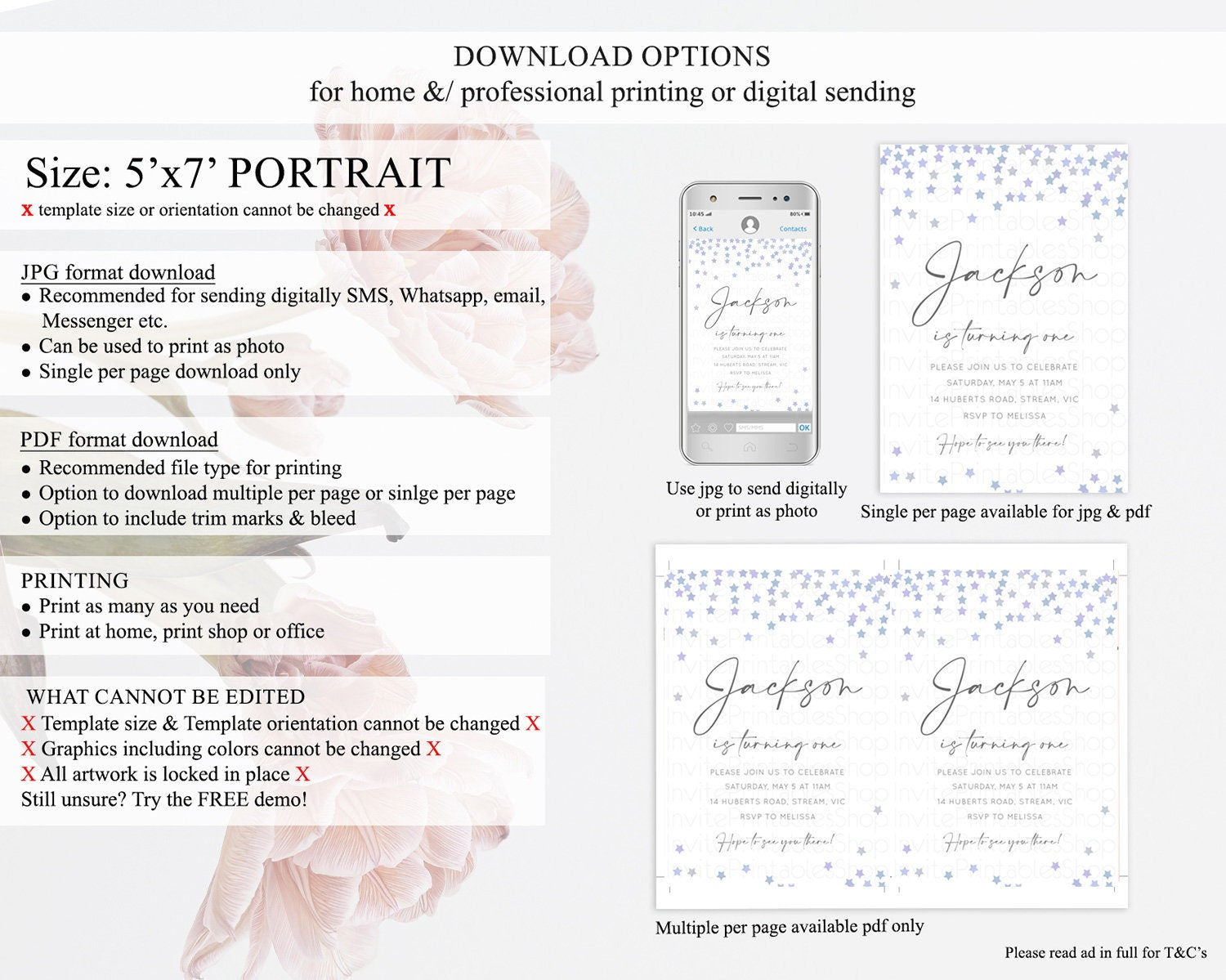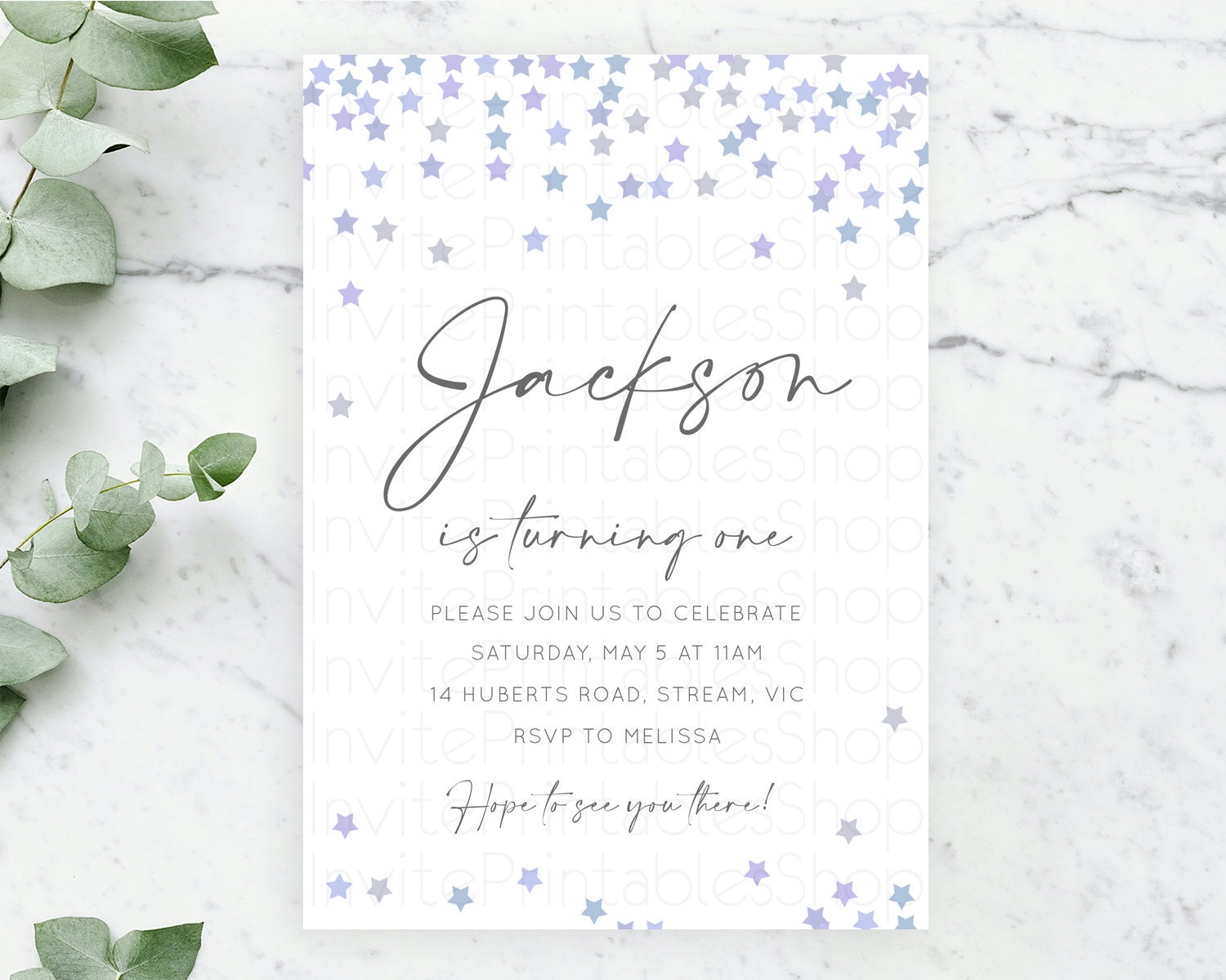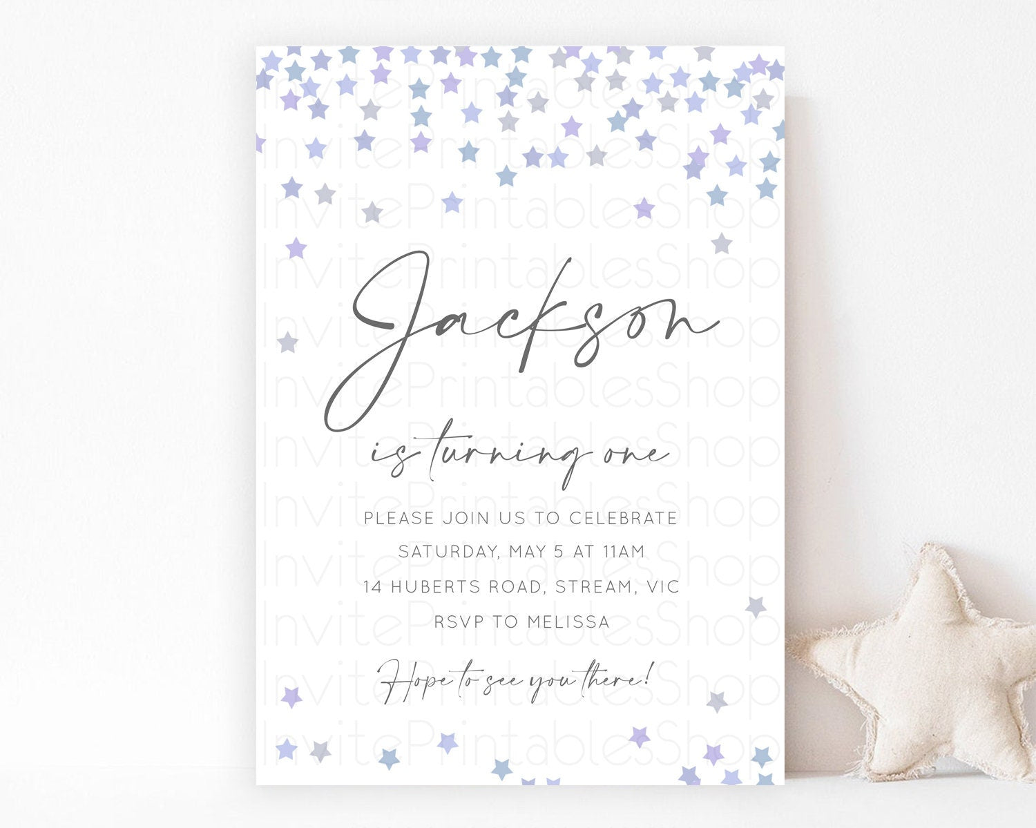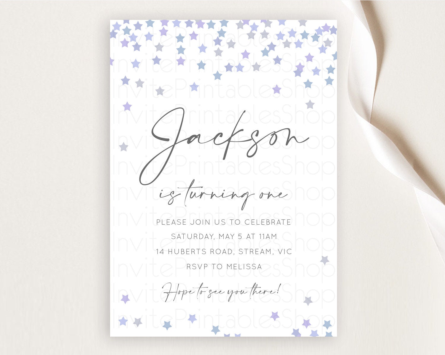 Star Birthday Invitation Pastel Stars Invite Shooting Star Party Rainbow Colorful Confetti Twinkle Little Star 2nd First Birthday D10341