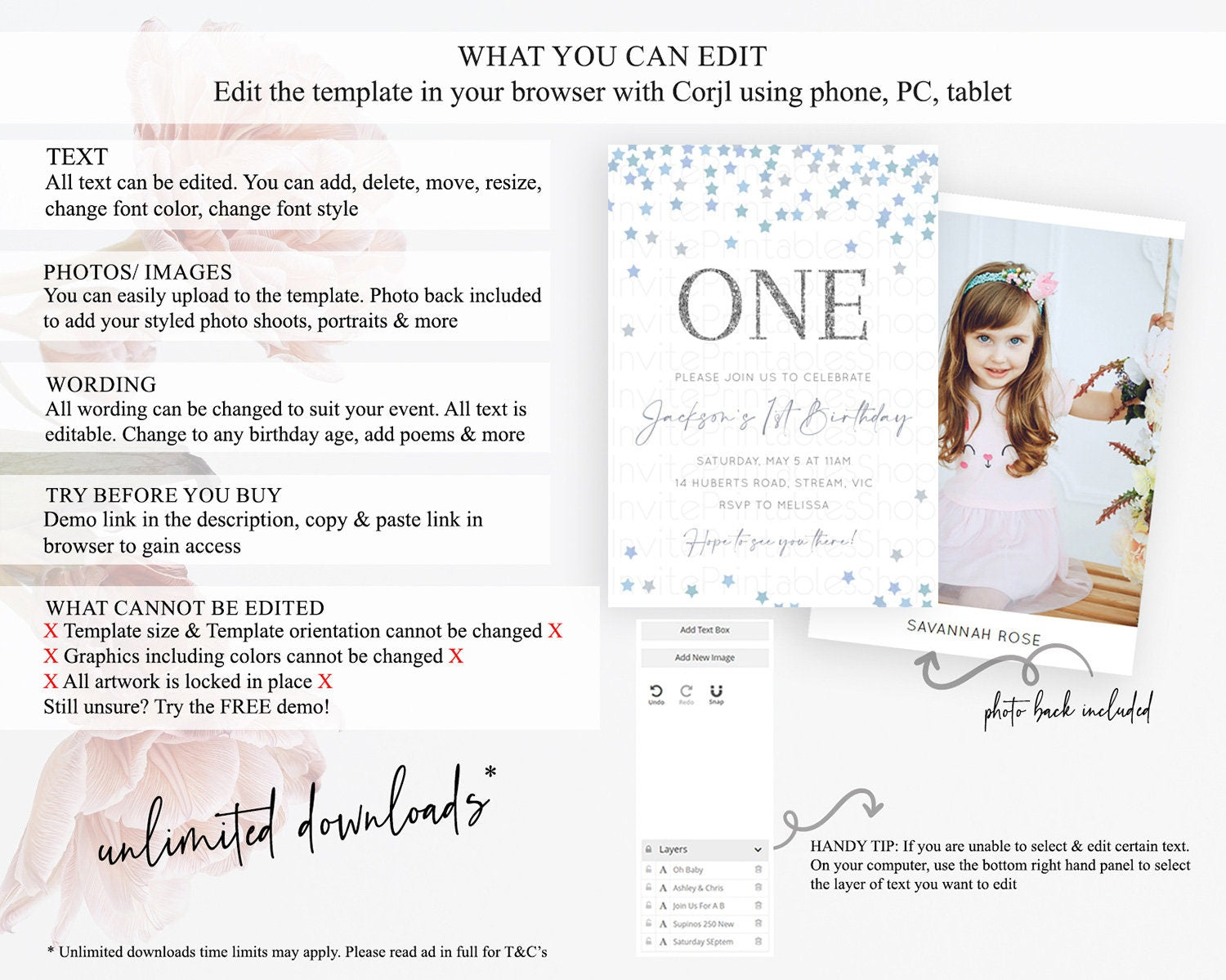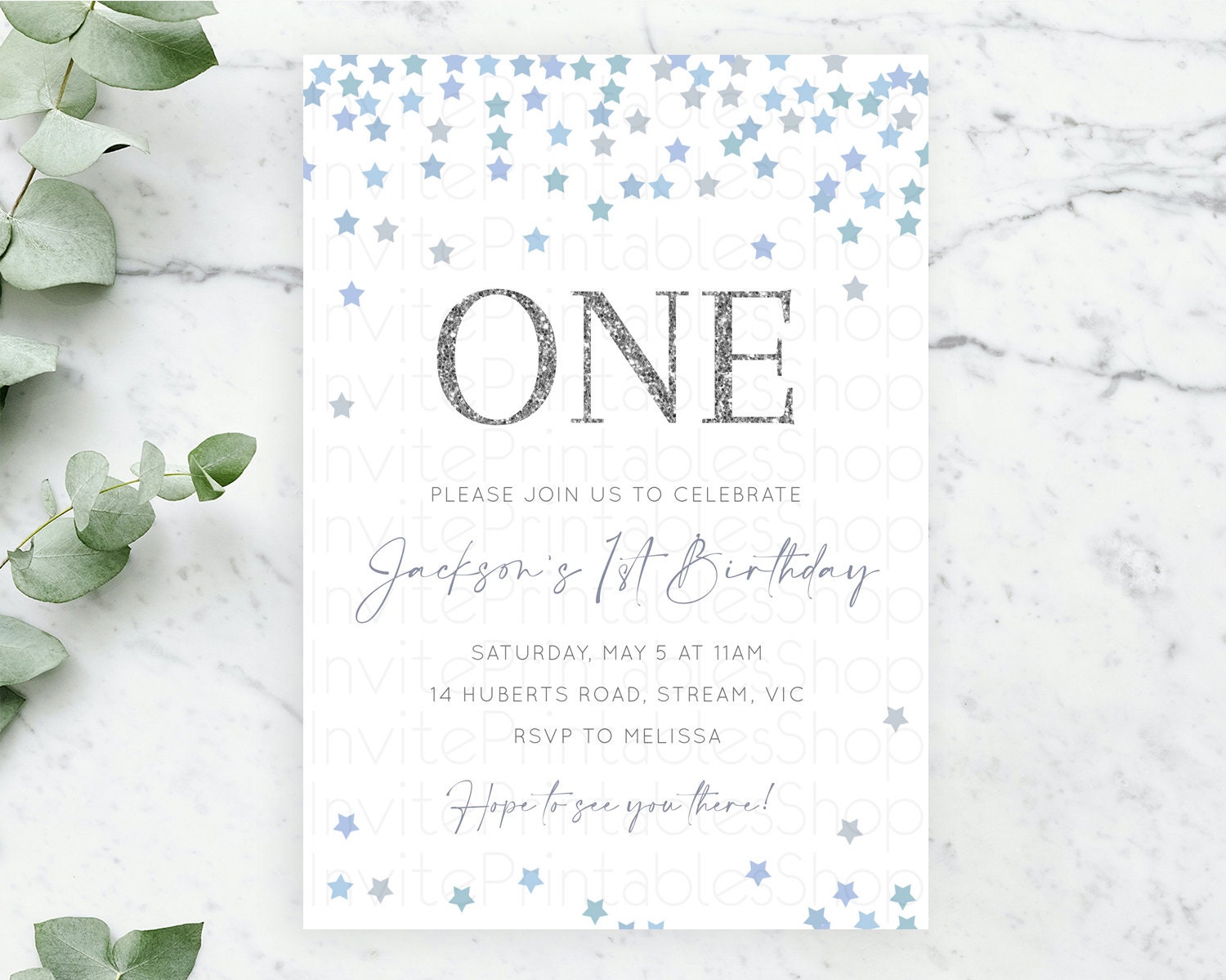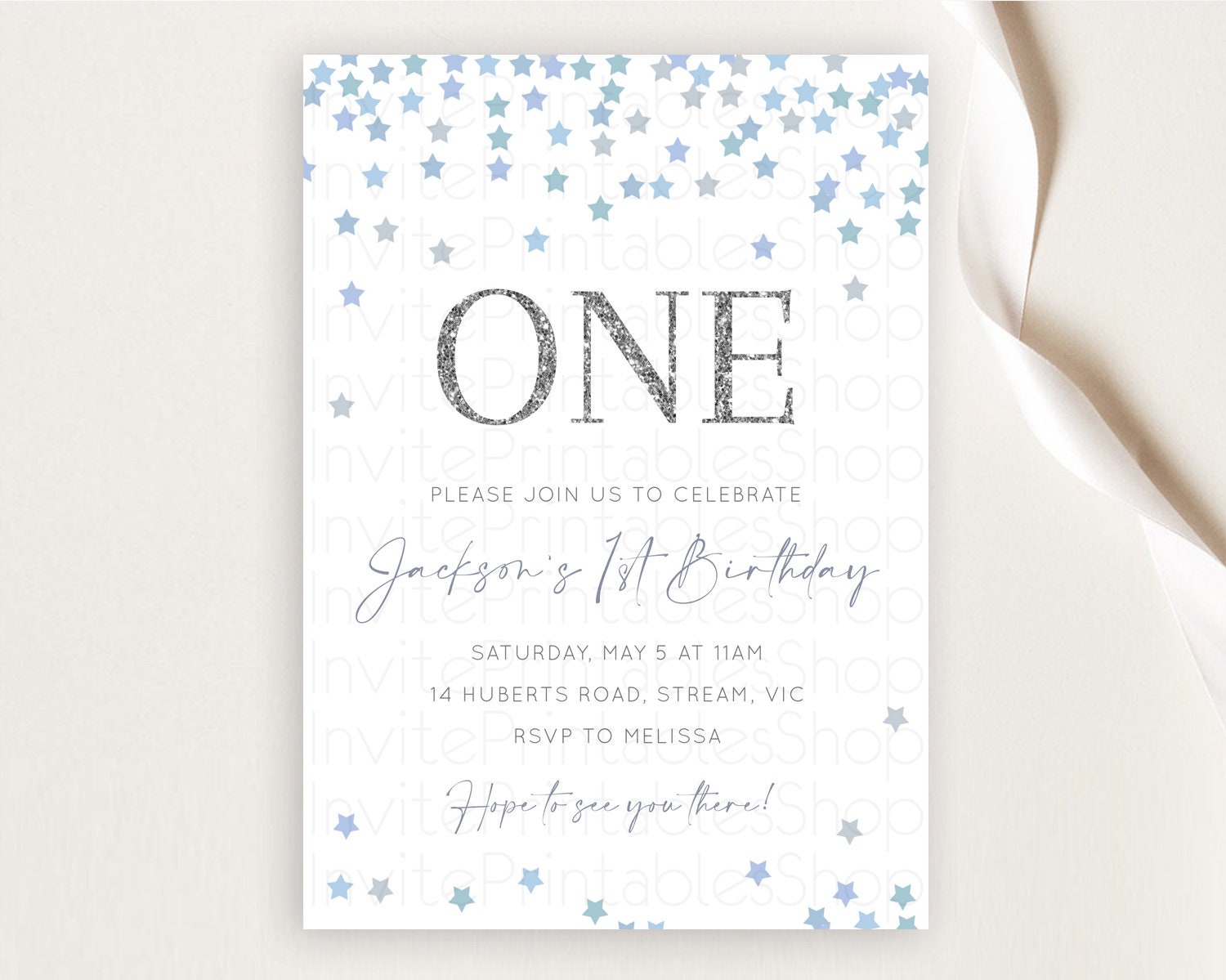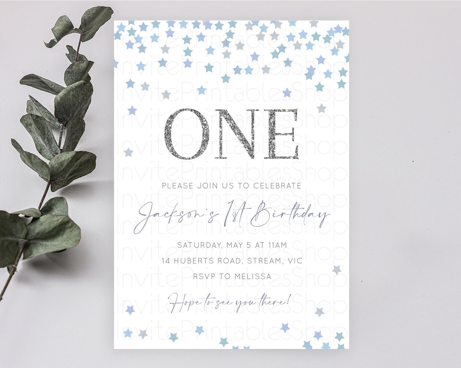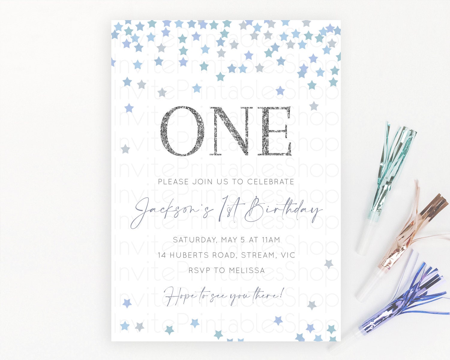 Star Birthday Invitation Pastel Stars Invite Shooting Star Party Rainbow Colorful Confetti Twinkle Little Star 2nd First Birthday D10341