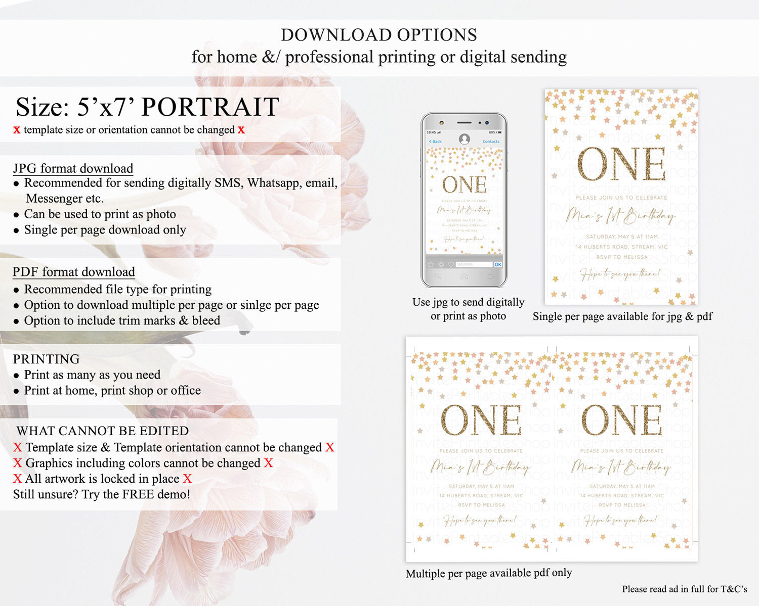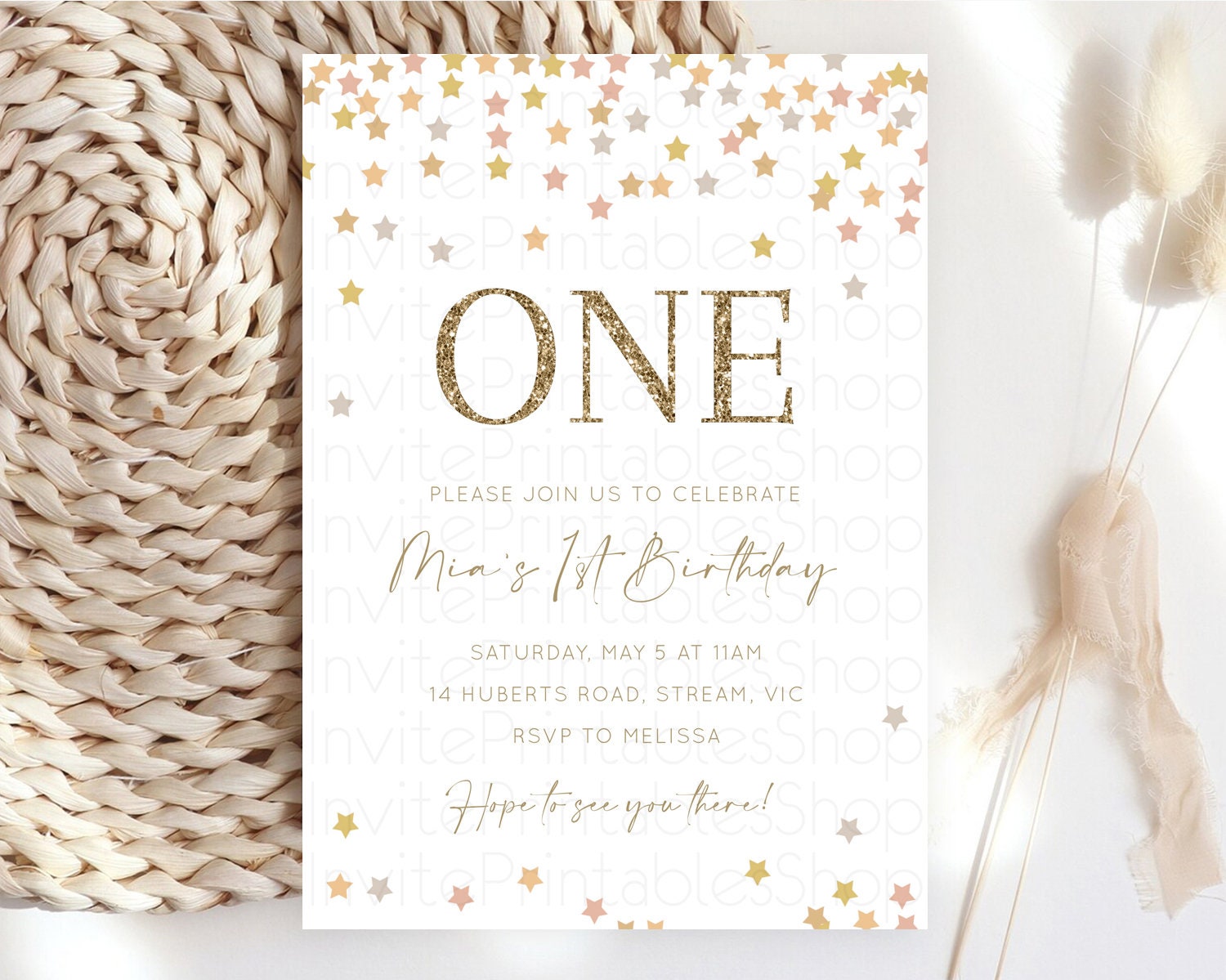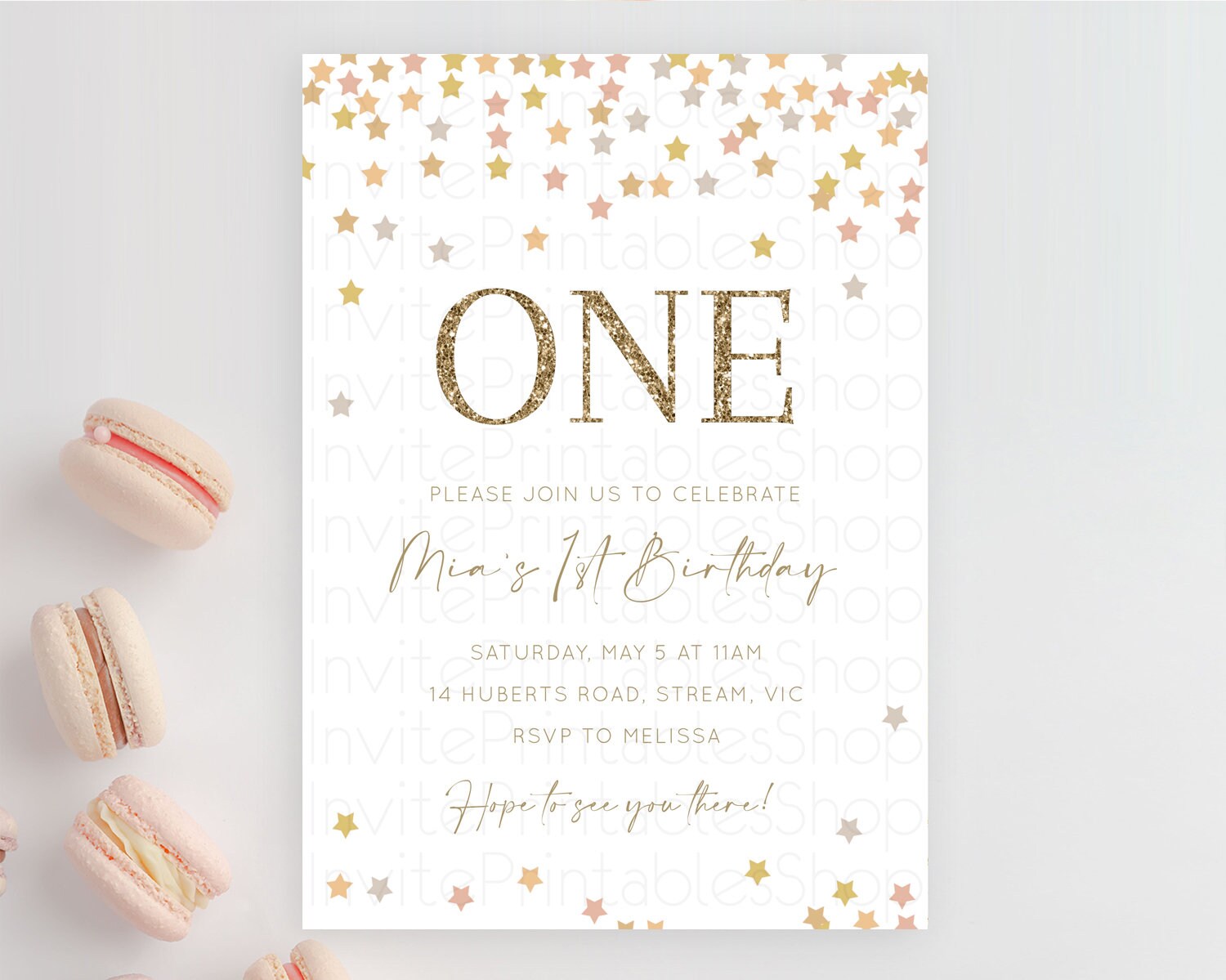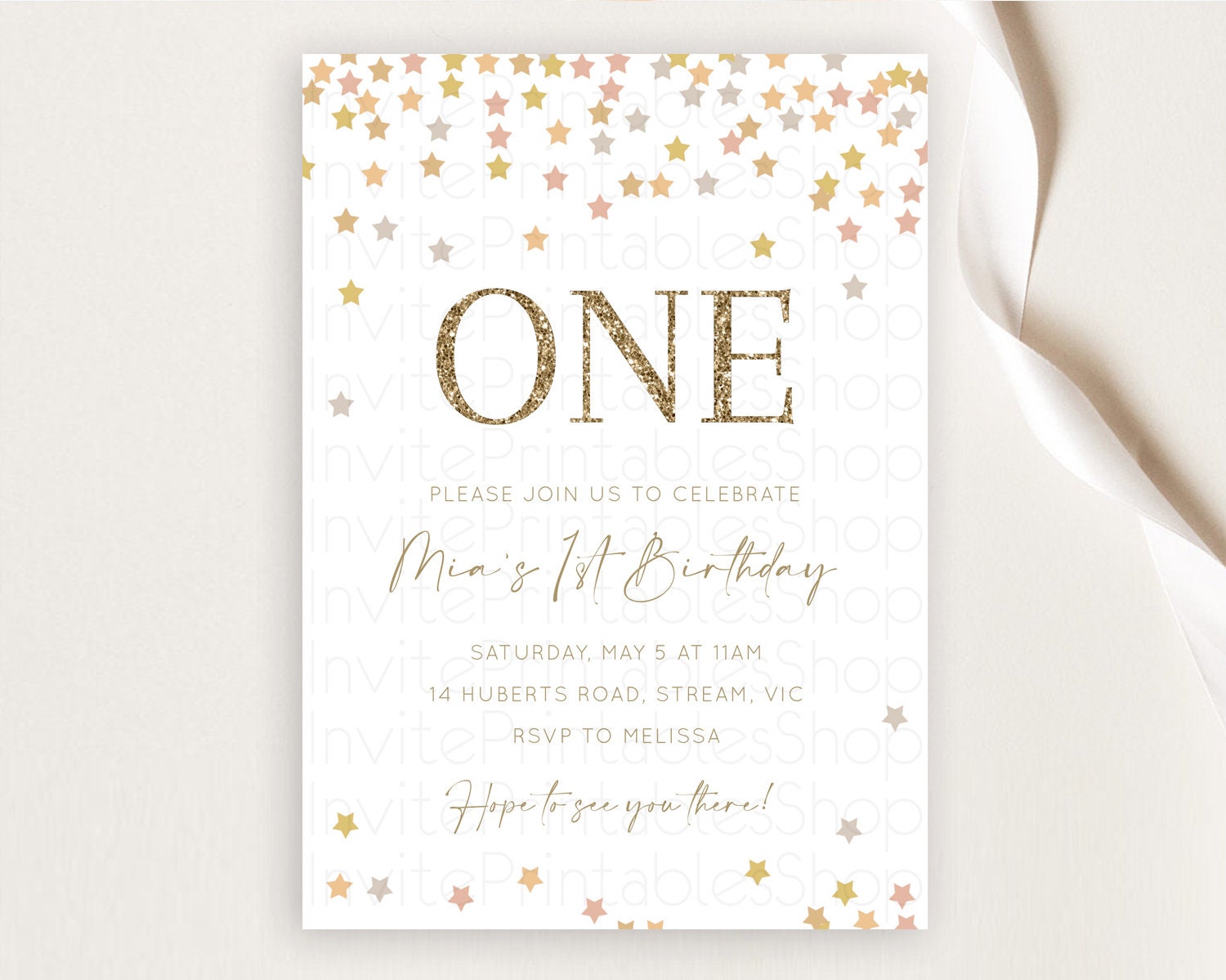 Star Birthday Invitation Pastel Stars Invite Shooting Star Party Rainbow Colorful Confetti Twinkle Little Star 2nd First Birthday D10342