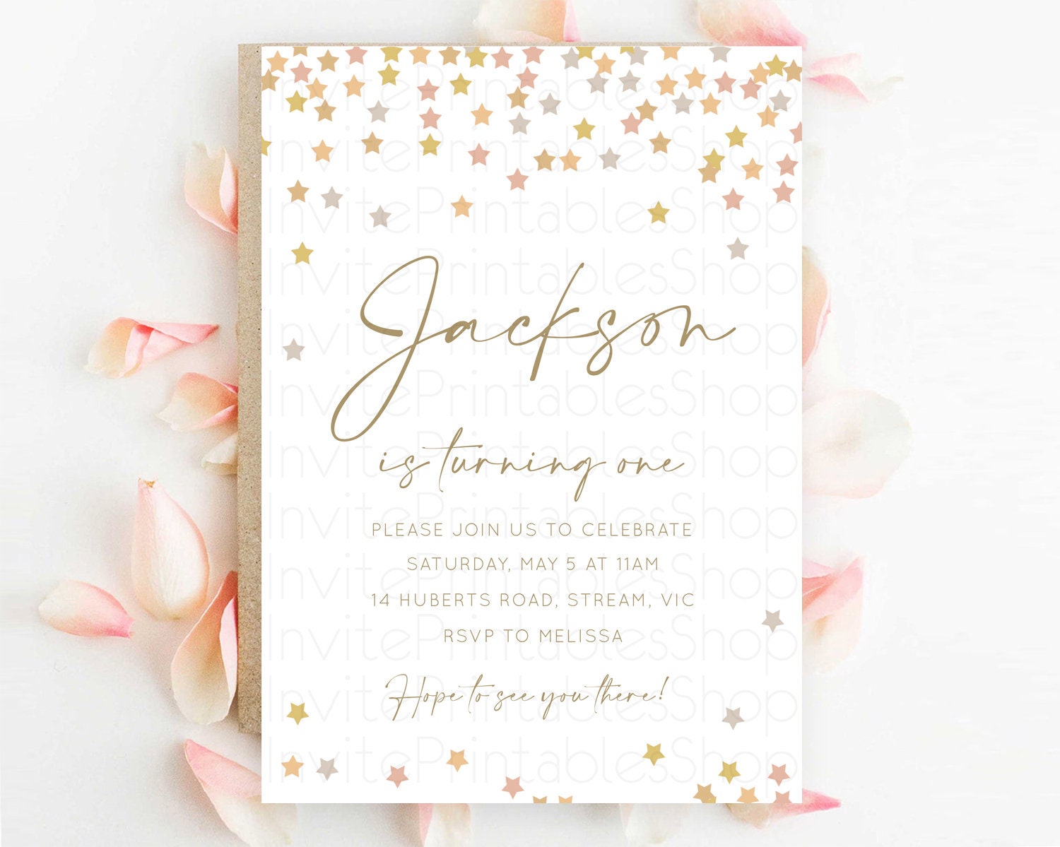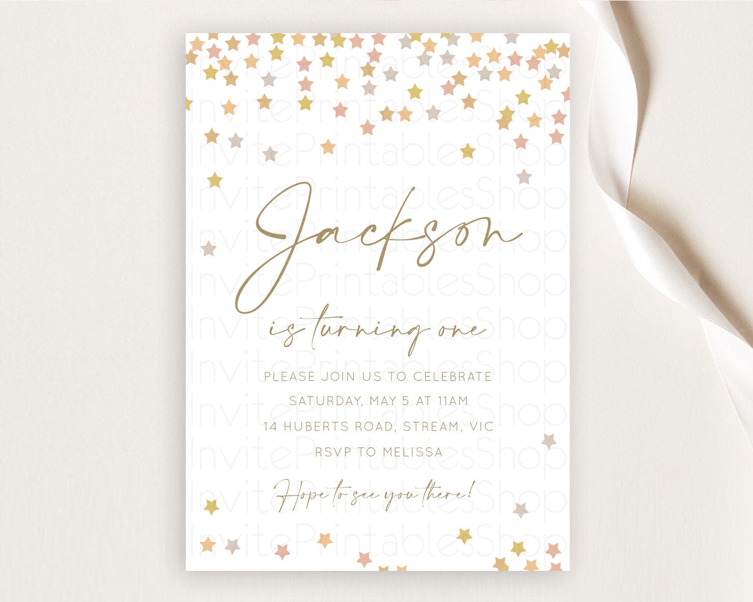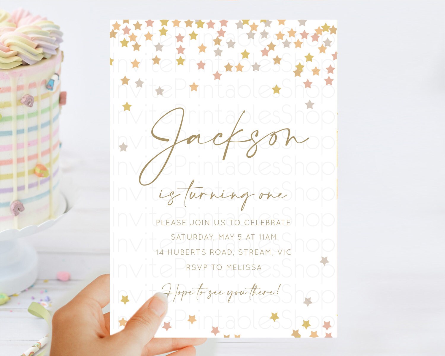 Star Birthday Invitation Pastel Stars Invite Shooting Star Party Rainbow Colorful Confetti Twinkle Little Star 2nd First Birthday D10342