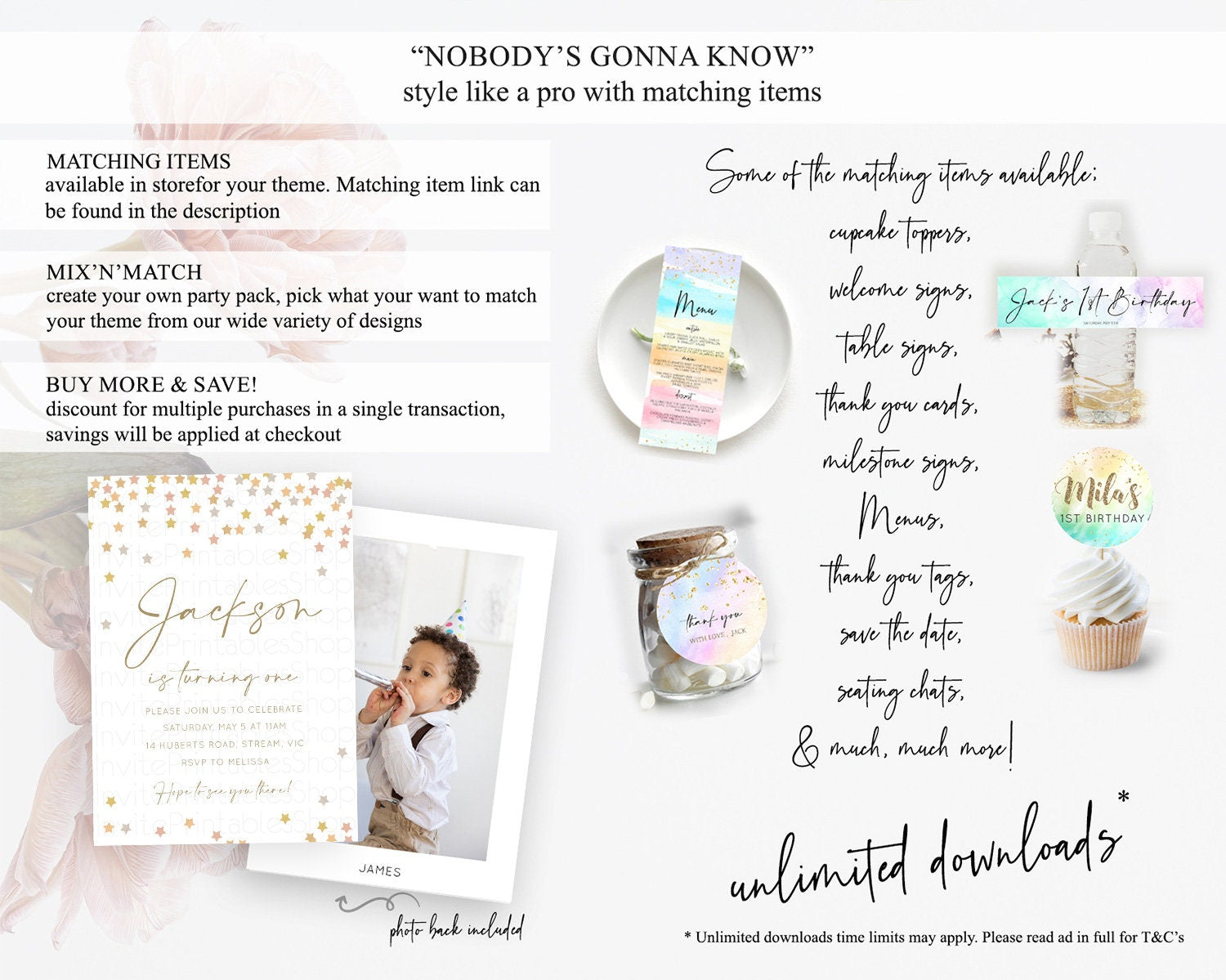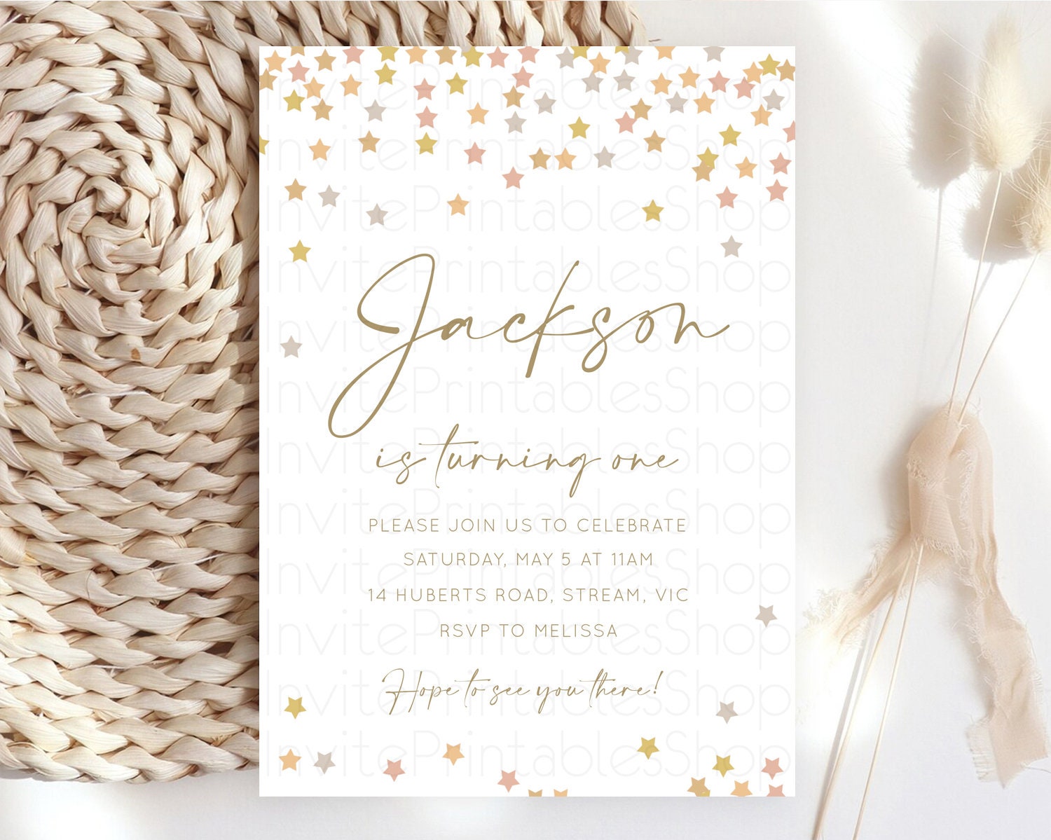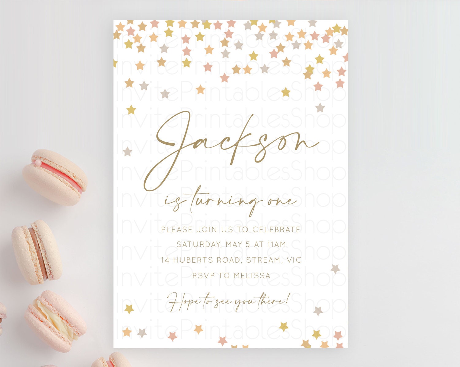 Star Birthday Invitation Pastel Stars Invite Shooting Star Party Rainbow Colorful Confetti Twinkle Little Star 2nd First Birthday D10342