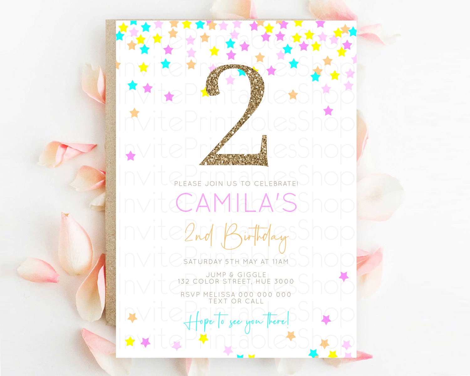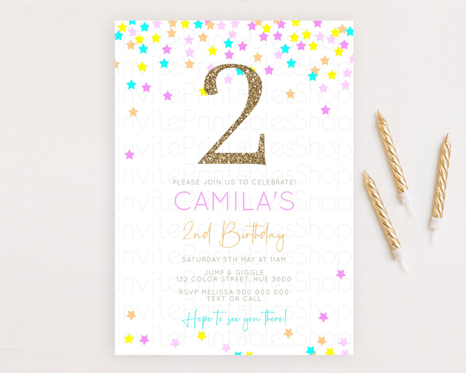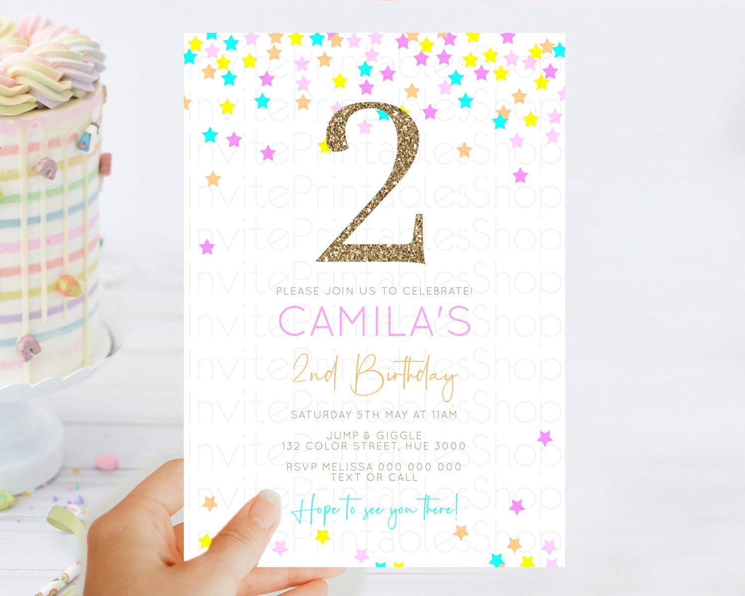 Star Birthday Invitation Pastel Stars Invite Shooting Star Party Rainbow Colorful Confetti Twinkle Little Star 2nd First Birthday D10397