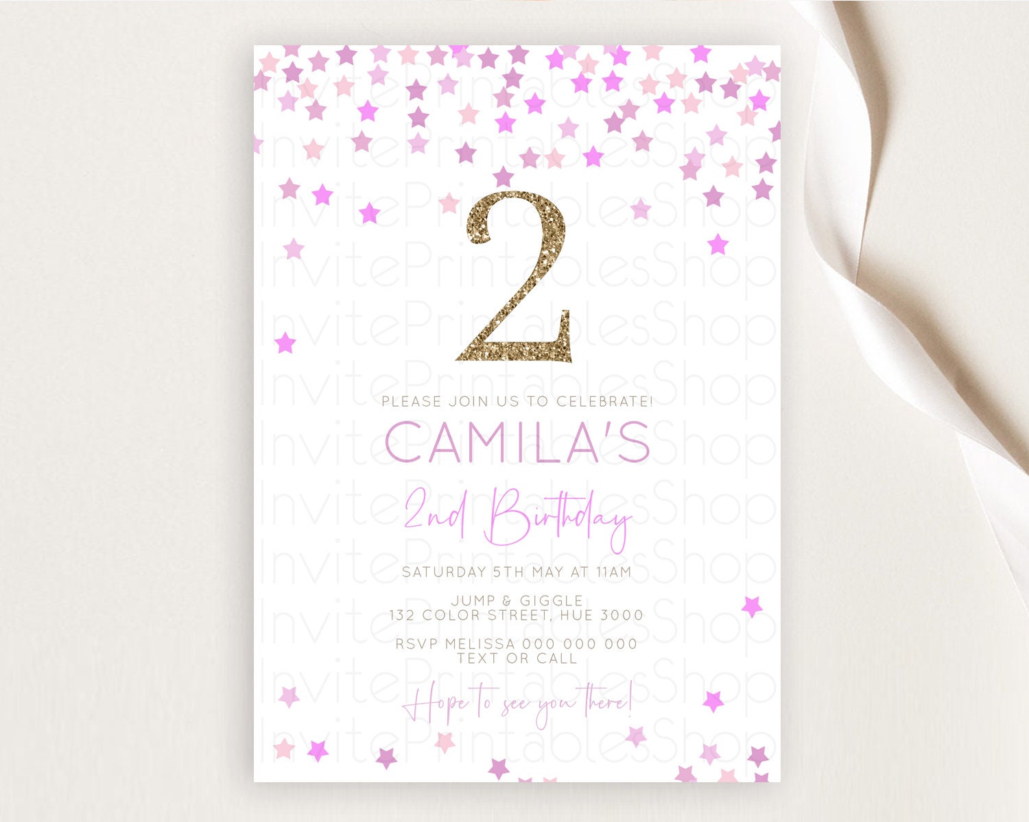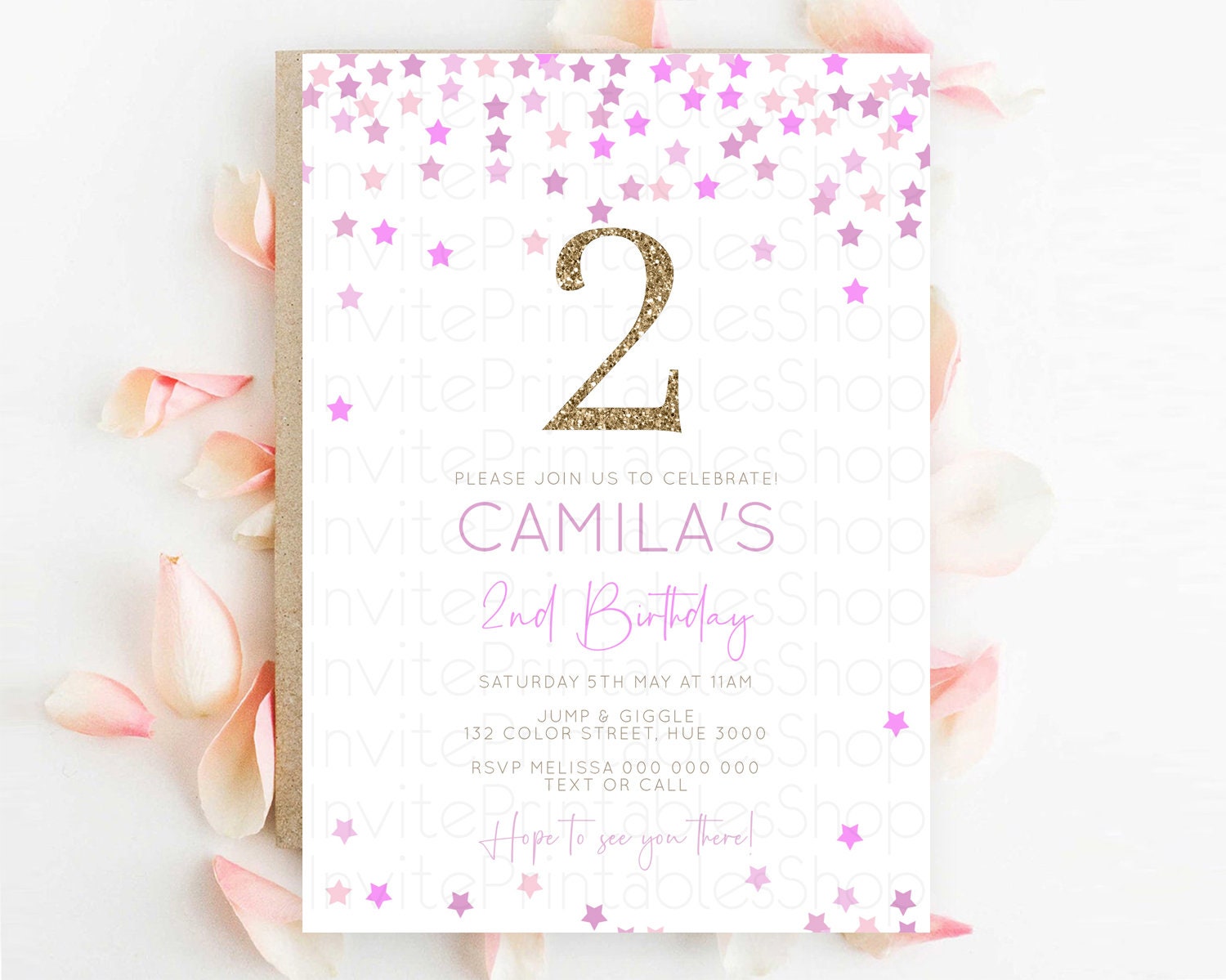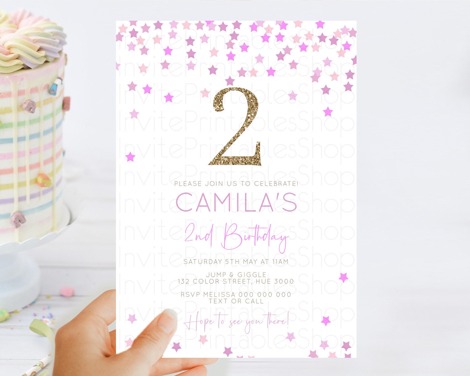Star Birthday Invitation Pastel Stars Invite Shooting Star Party Rainbow Colorful Confetti Twinkle Little Star 2nd First Birthday D10403