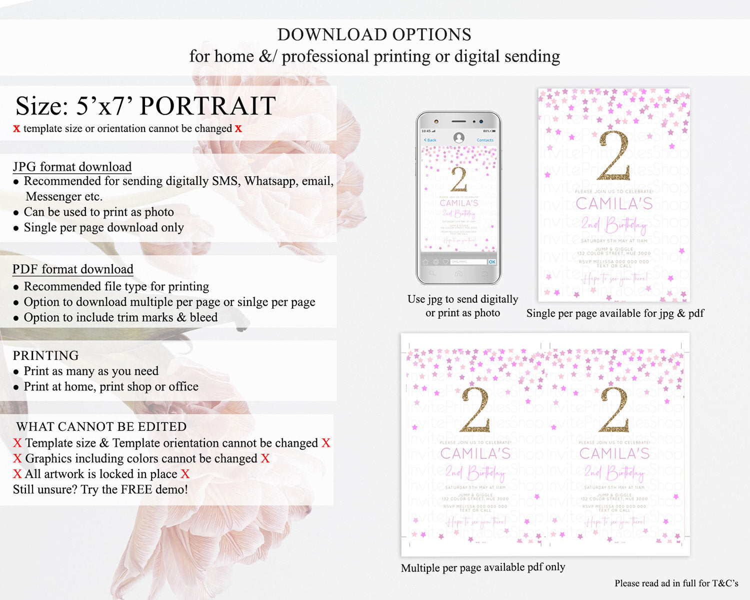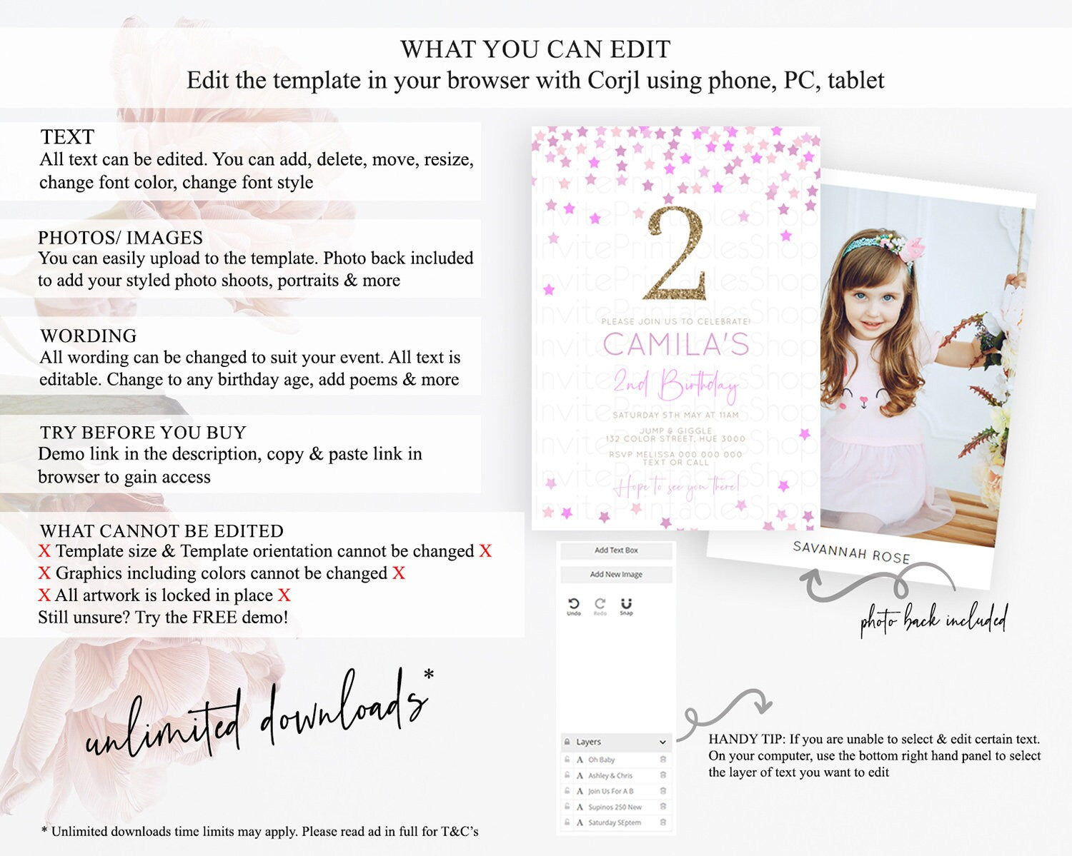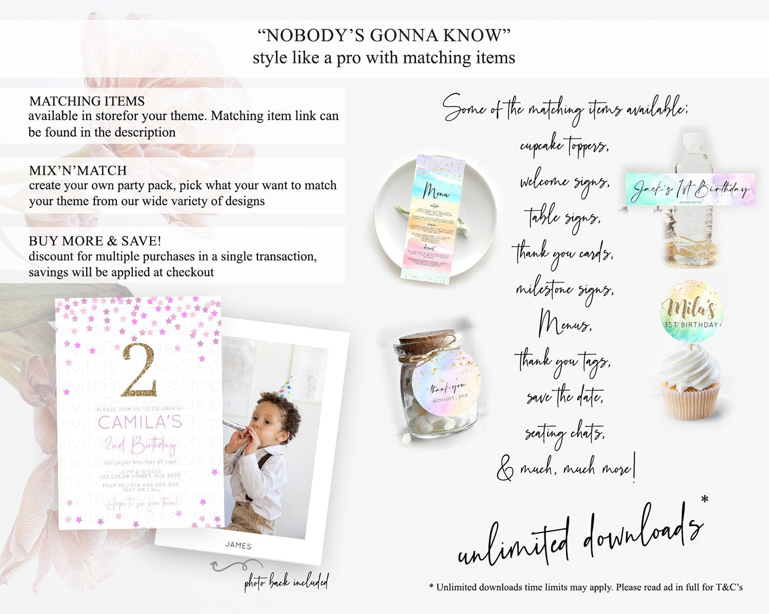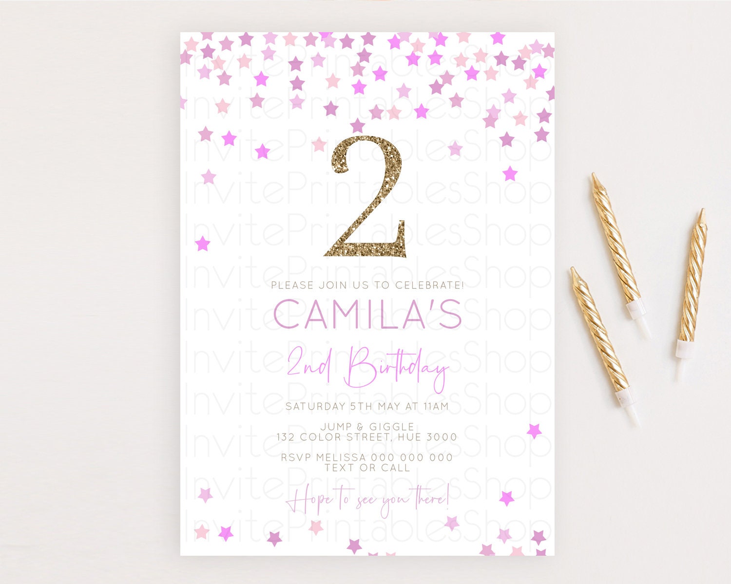 Star Birthday Invitation Pastel Stars Invite Shooting Star Party Rainbow Colorful Confetti Twinkle Little Star 2nd First Birthday D10403