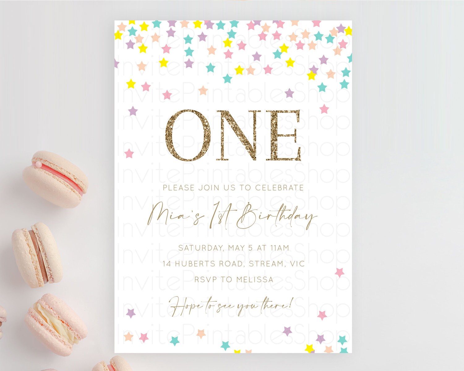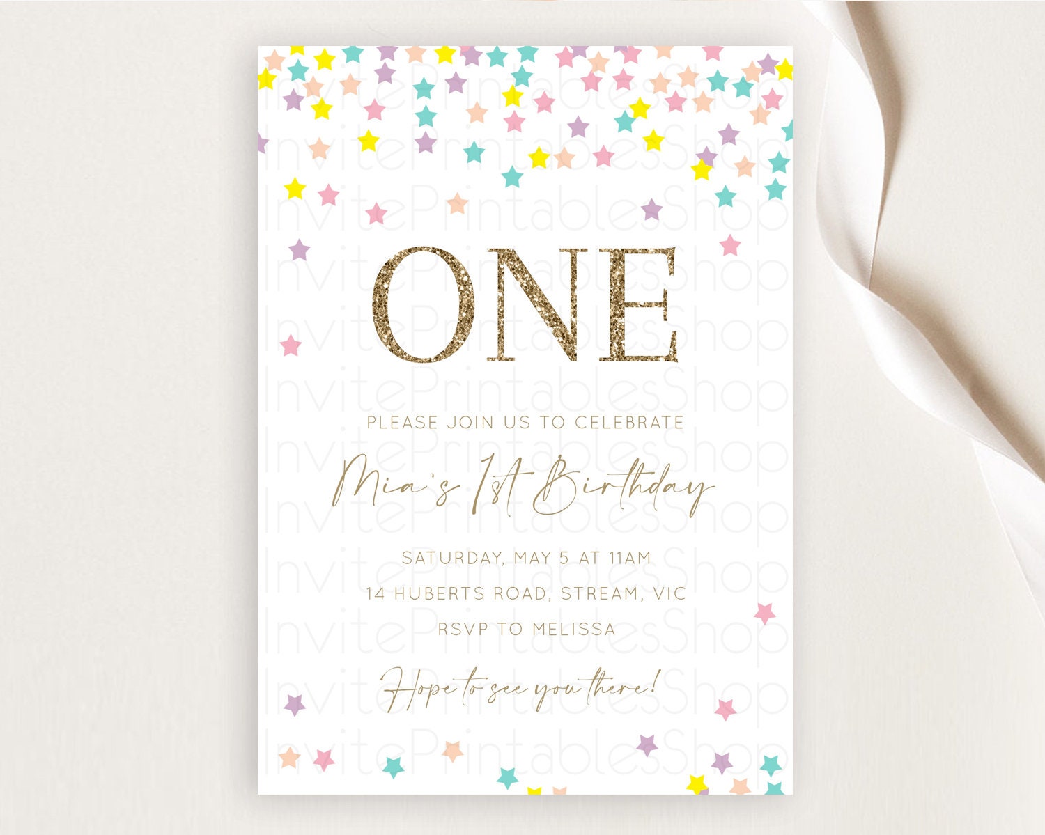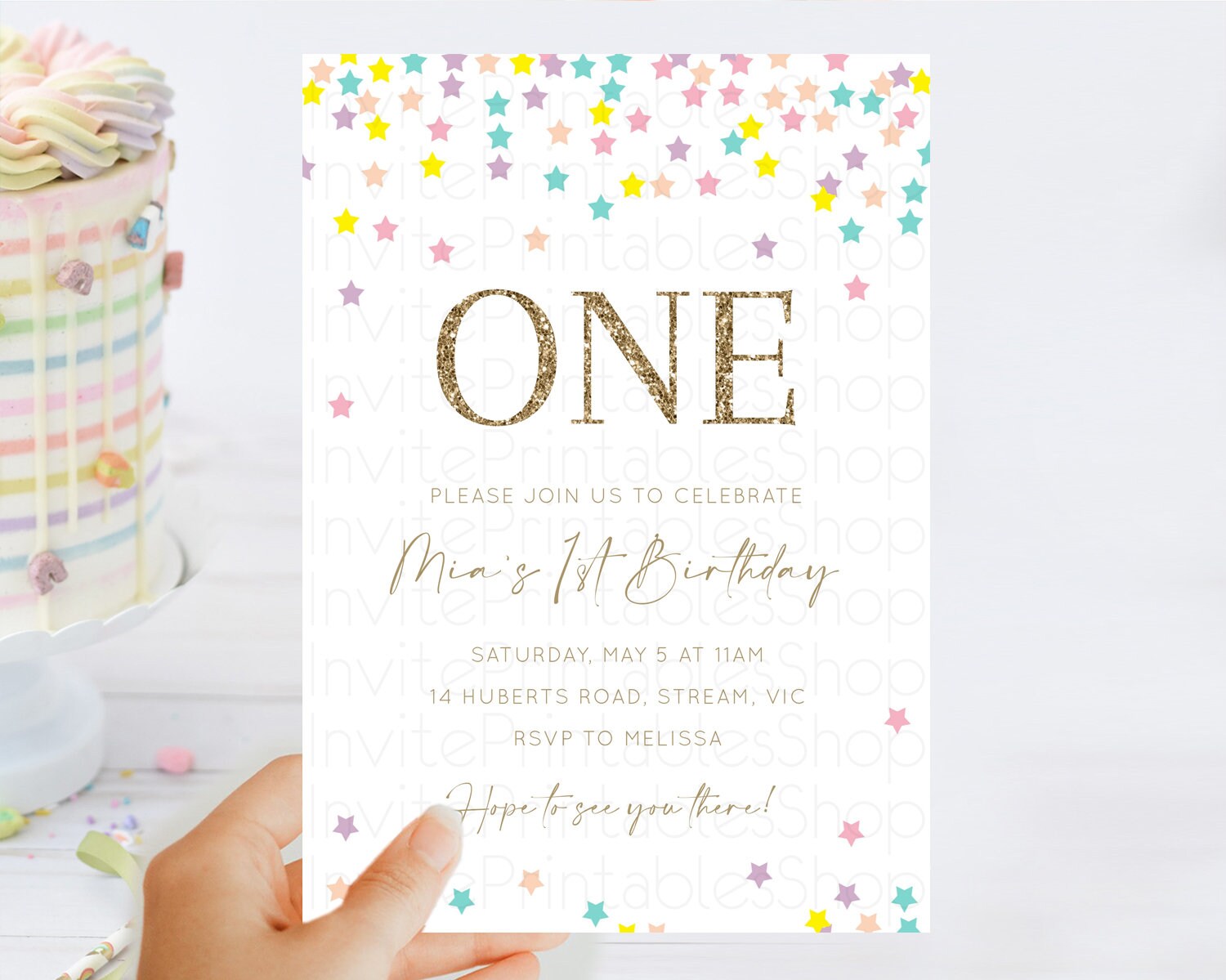 Star Birthday Invitation Pastel Stars Invite Shooting Star Party Rainbow Colorful Confetti Twinkle Little Star 2nd First Birthday D10601