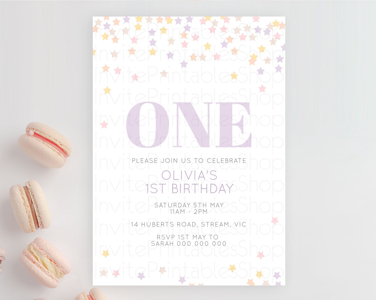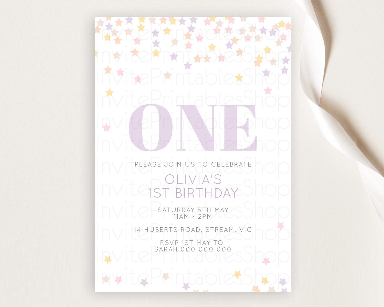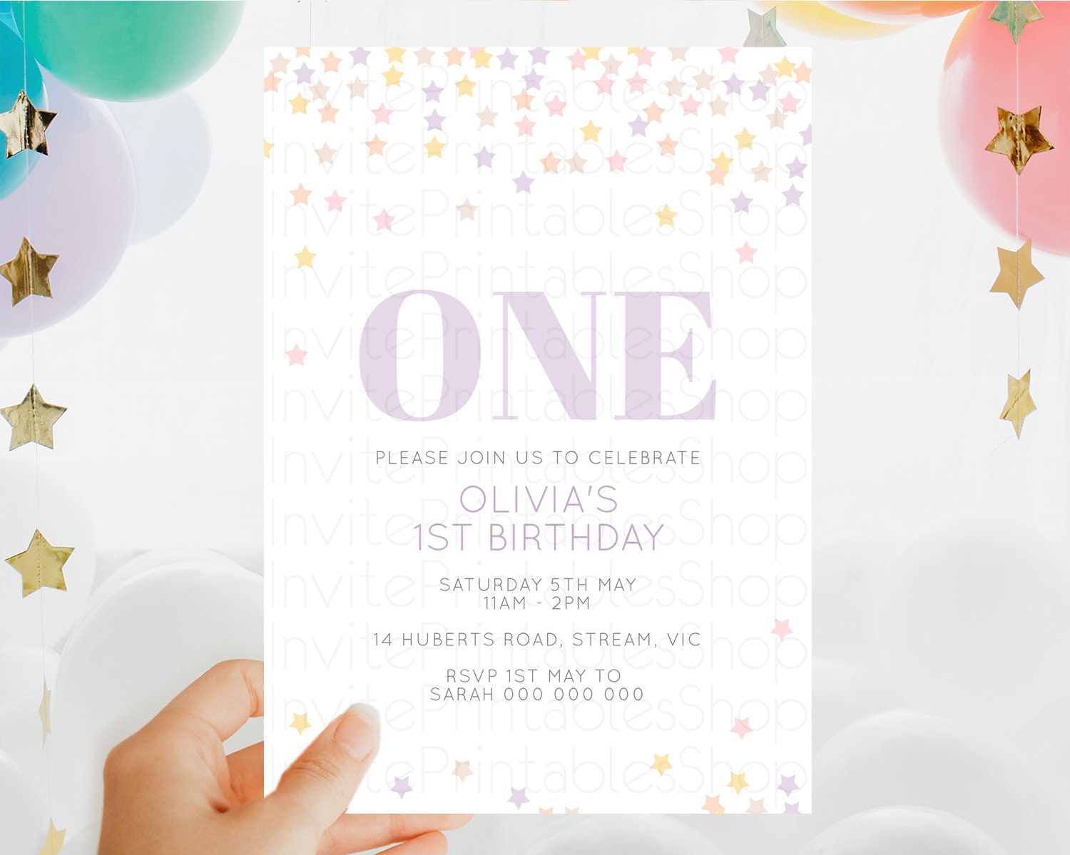 Star Birthday Invitation Pastel Stars Invite Shooting Star Party Rainbow Colorful Confetti Twinkle Little Star 2nd First Birthday D10810