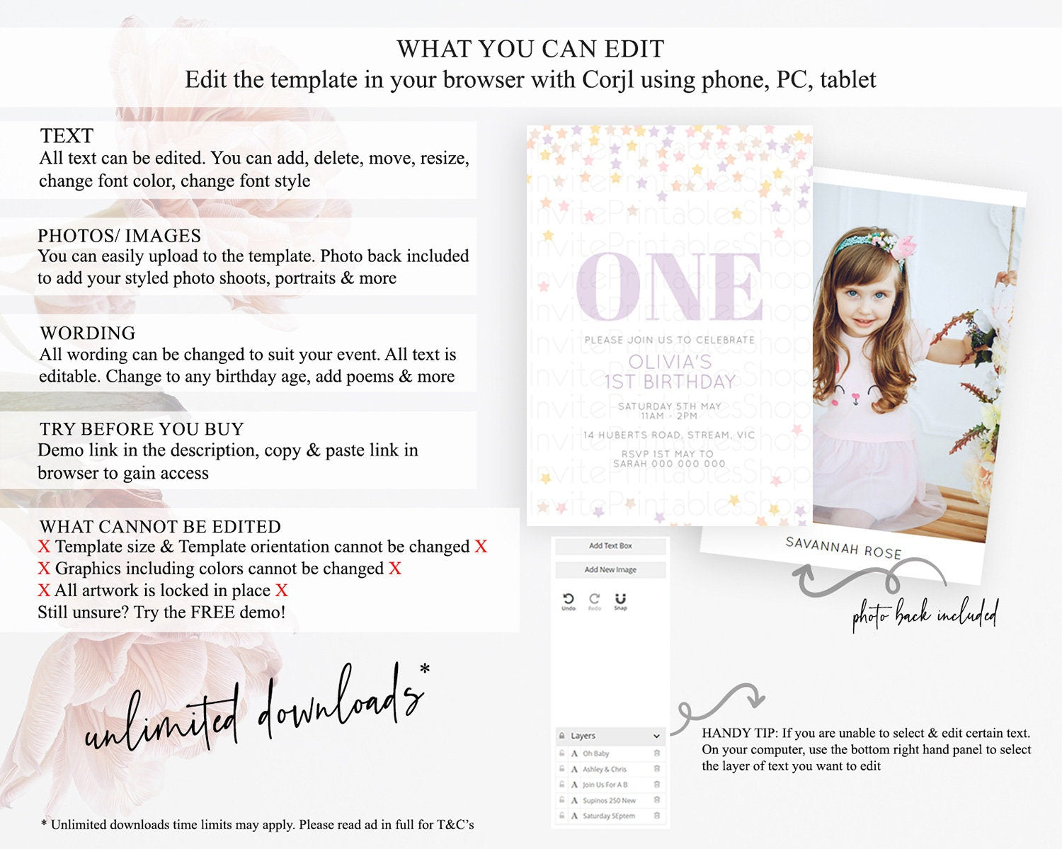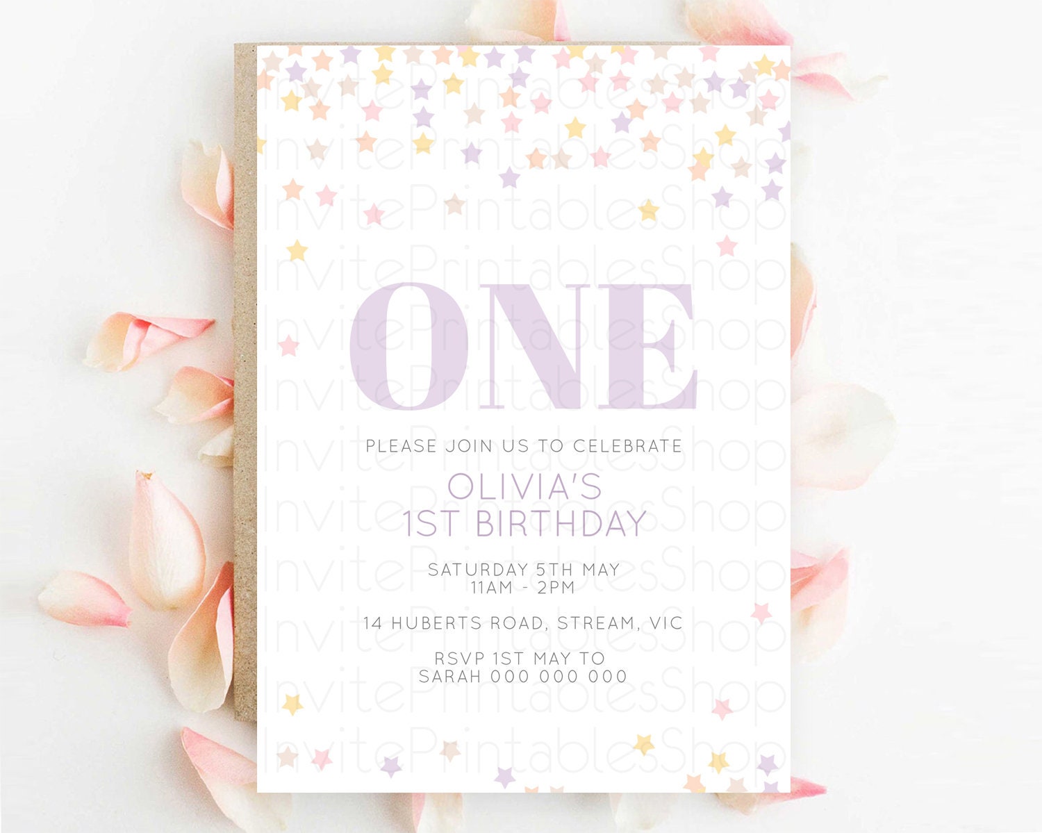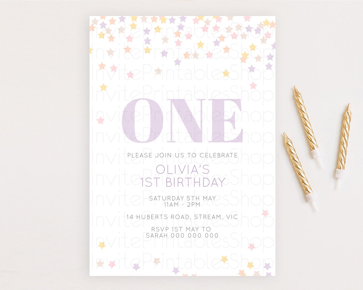 Star Birthday Invitation Pastel Stars Invite Shooting Star Party Rainbow Colorful Confetti Twinkle Little Star 2nd First Birthday D10810
