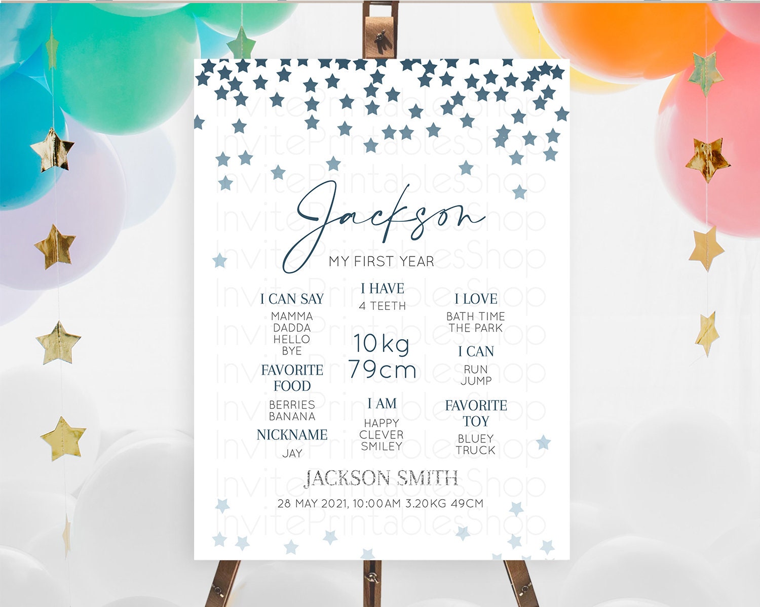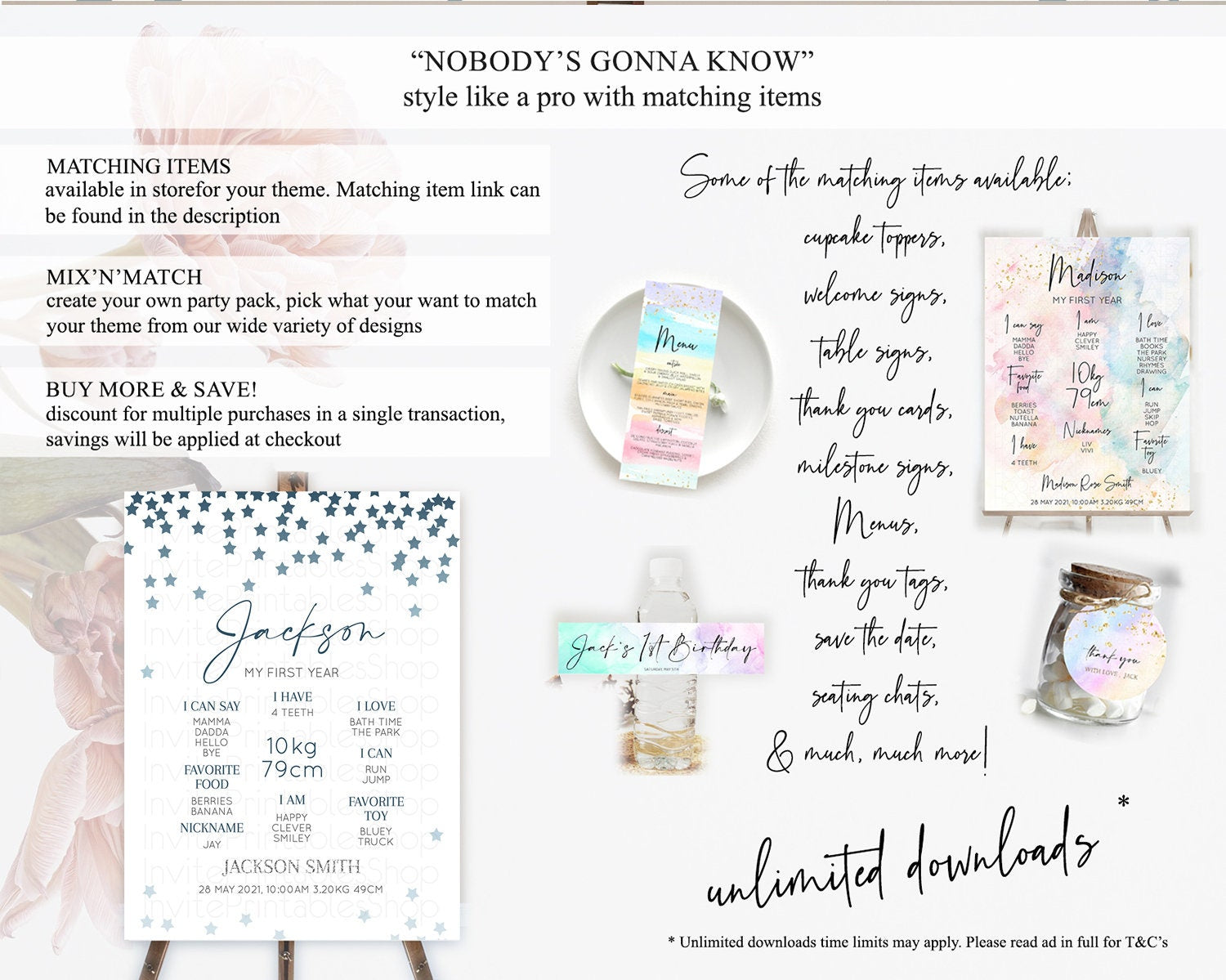 Star First Birthday Milestone Poster Pastel Stars Milestone Shooting Star Rainbow Colorful Confetti Twinkle Little Star 1st Birthday D10308