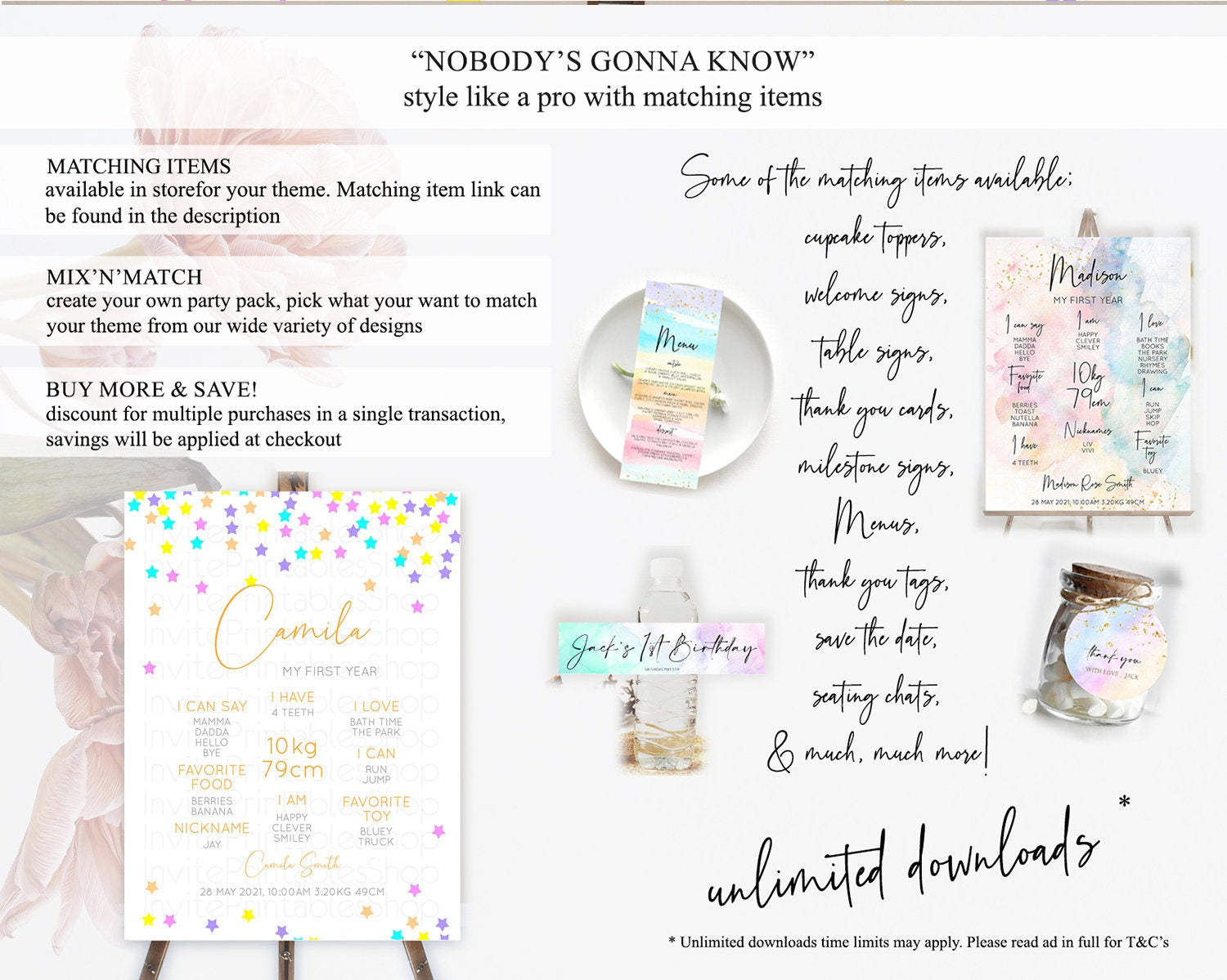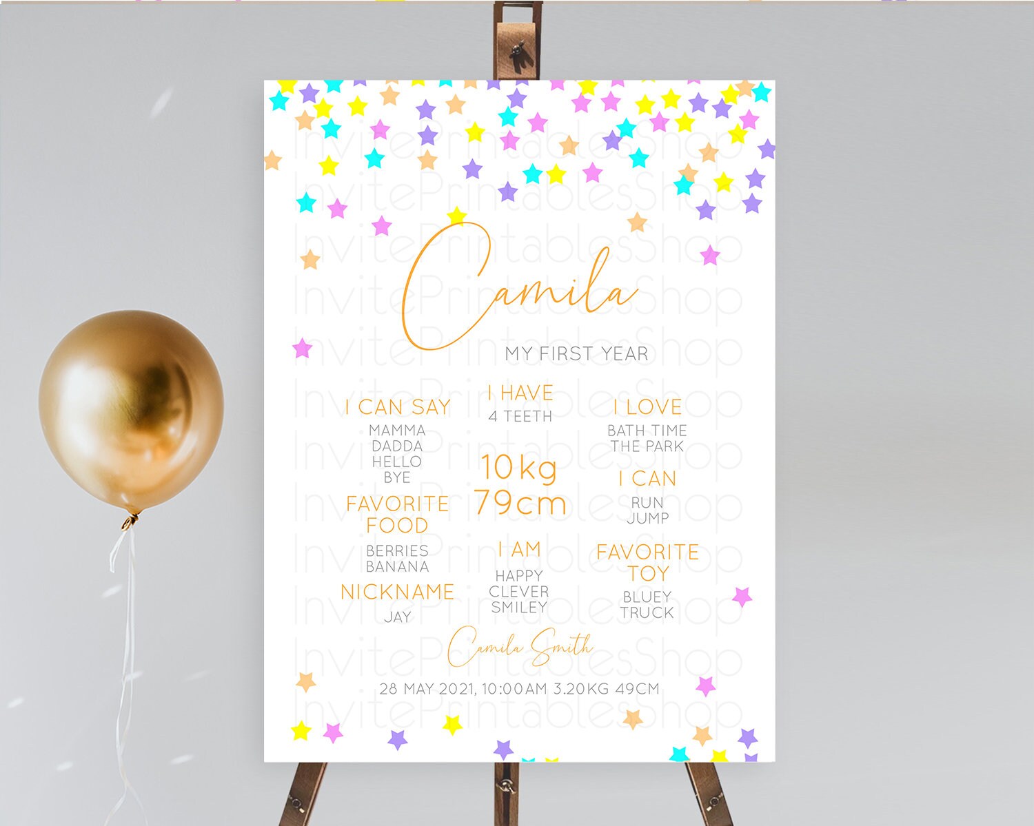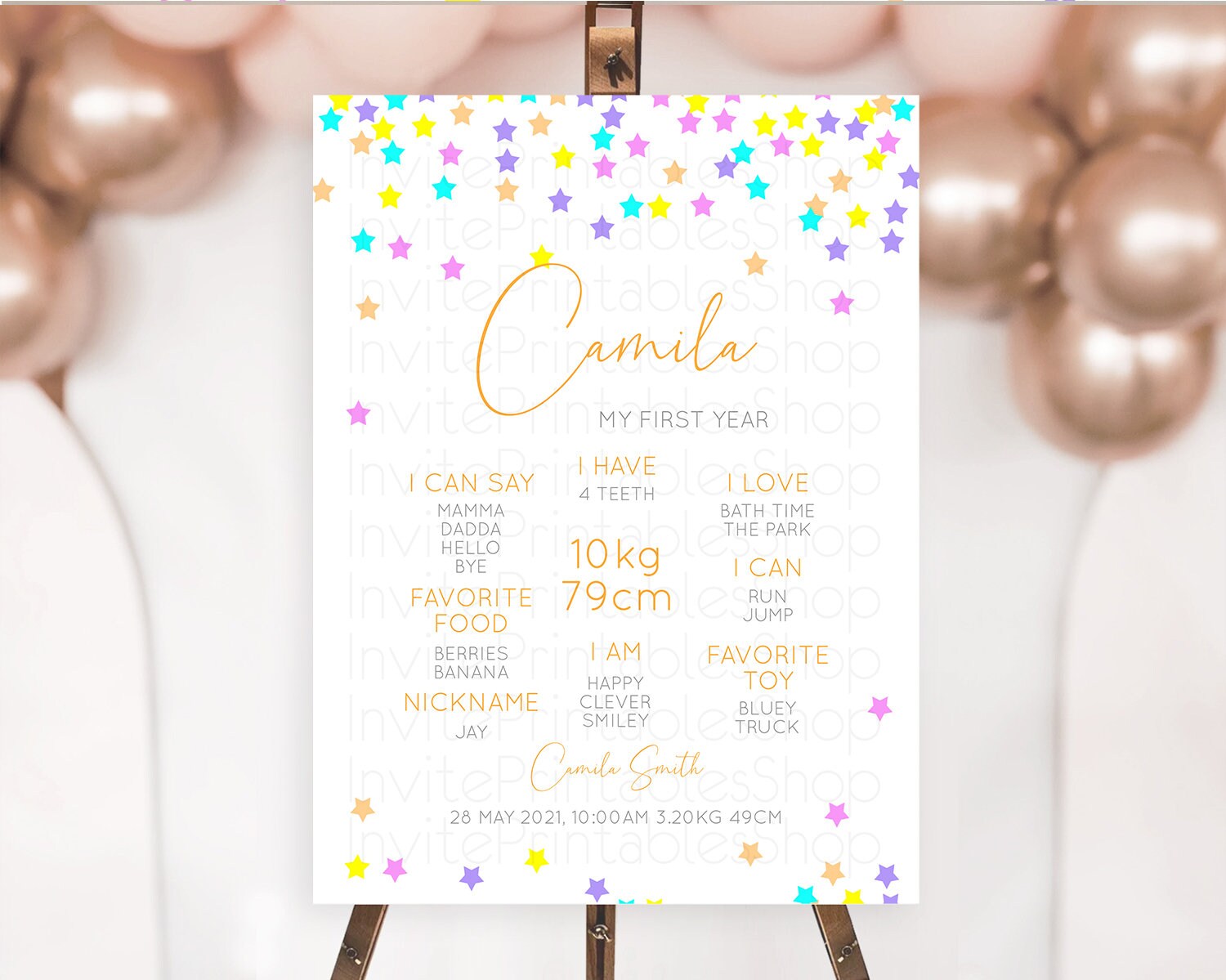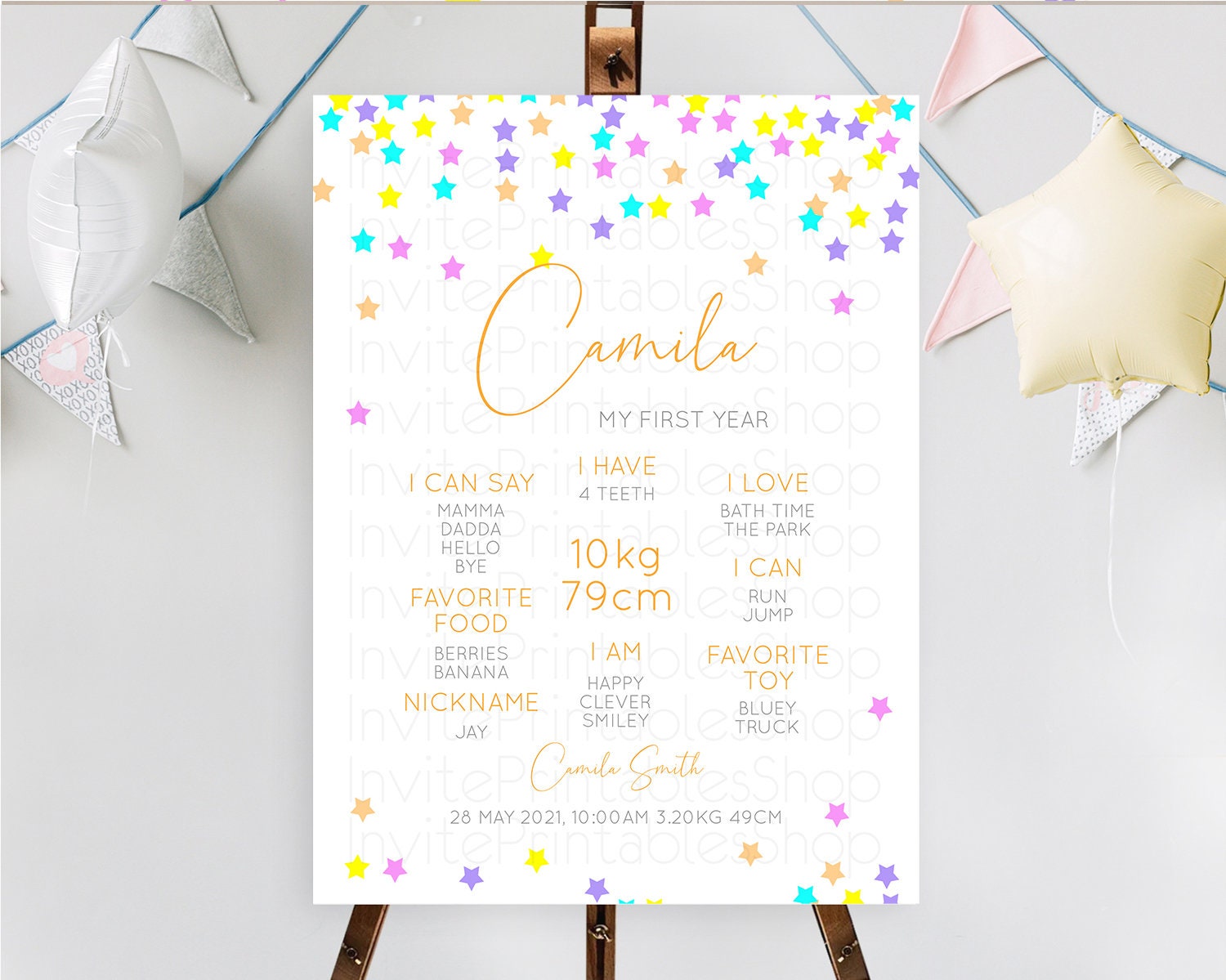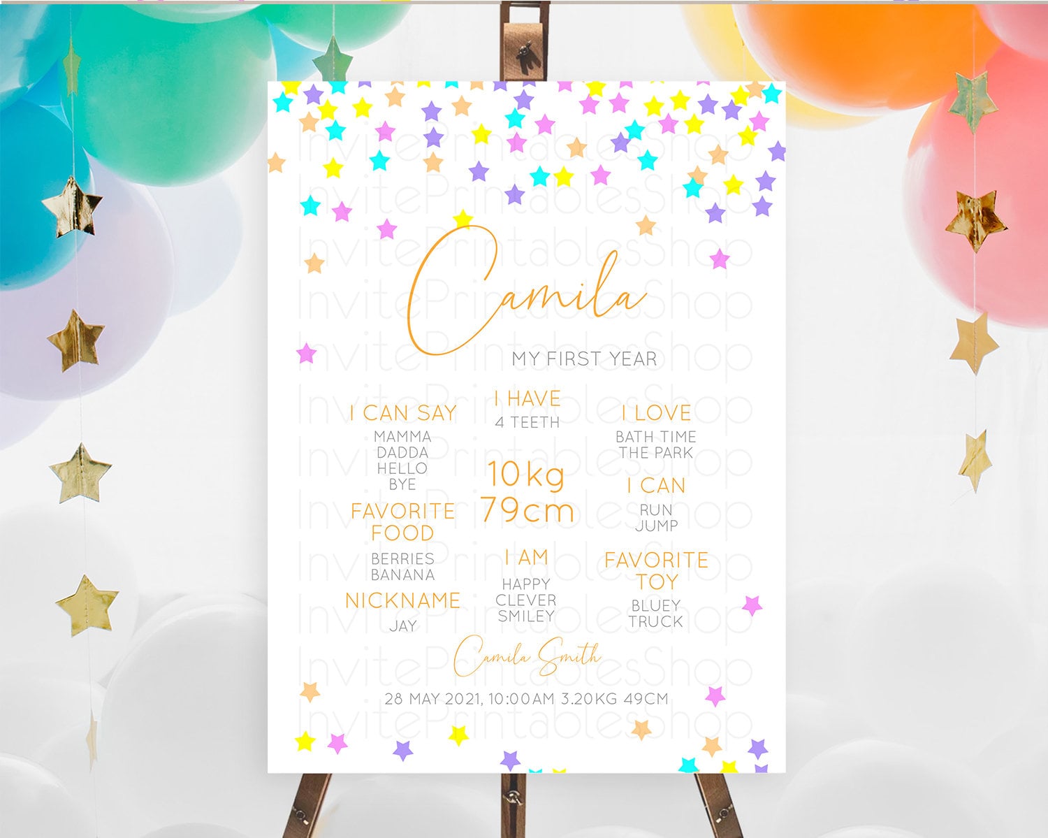 Star First Birthday Milestone Poster Pastel Stars Milestone Shooting Star Rainbow Colorful Confetti Twinkle Little Star 1st Birthday D10397