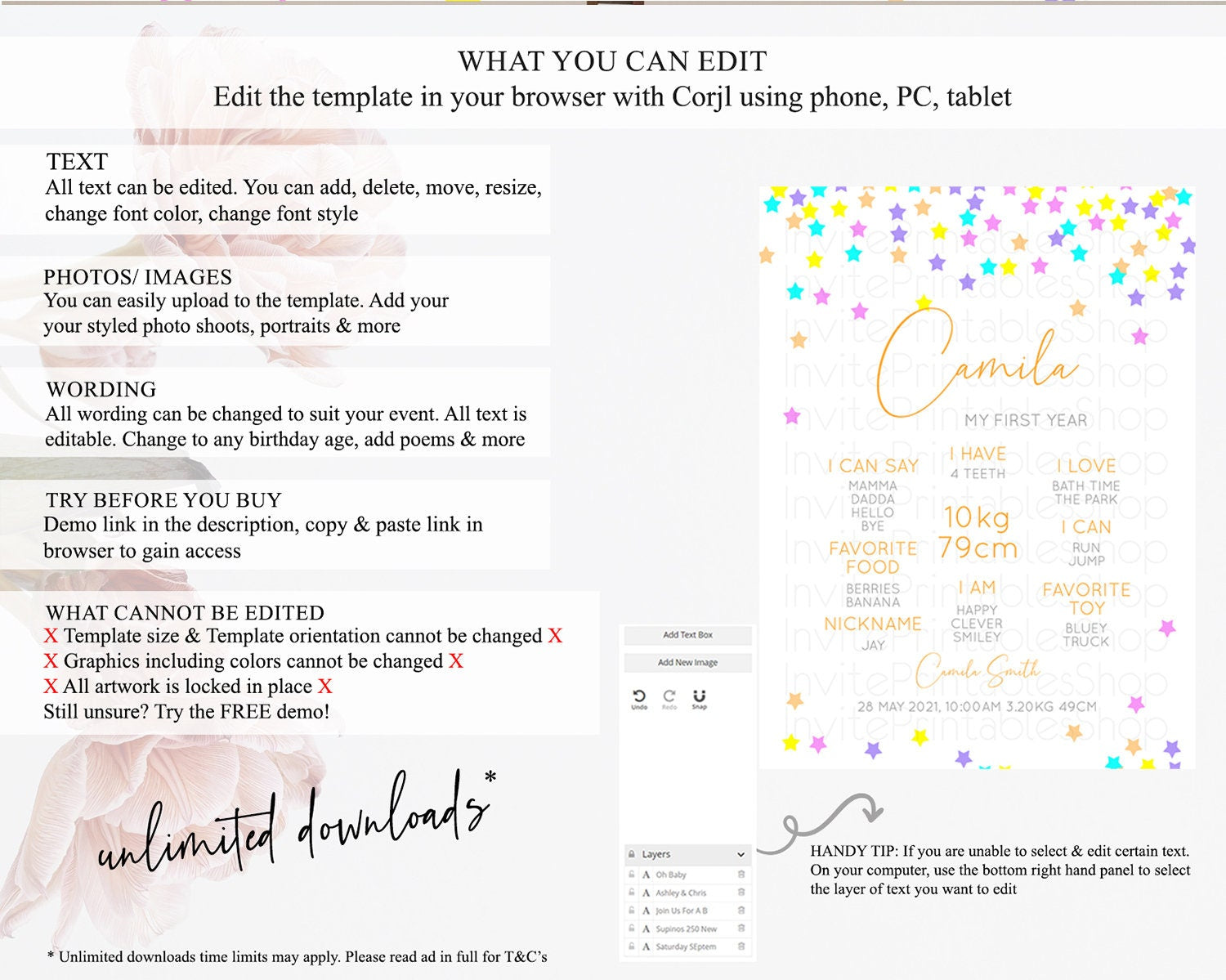 • After purchase, Corjl emails your editing link. Allow up to 15 minutes for delivery.