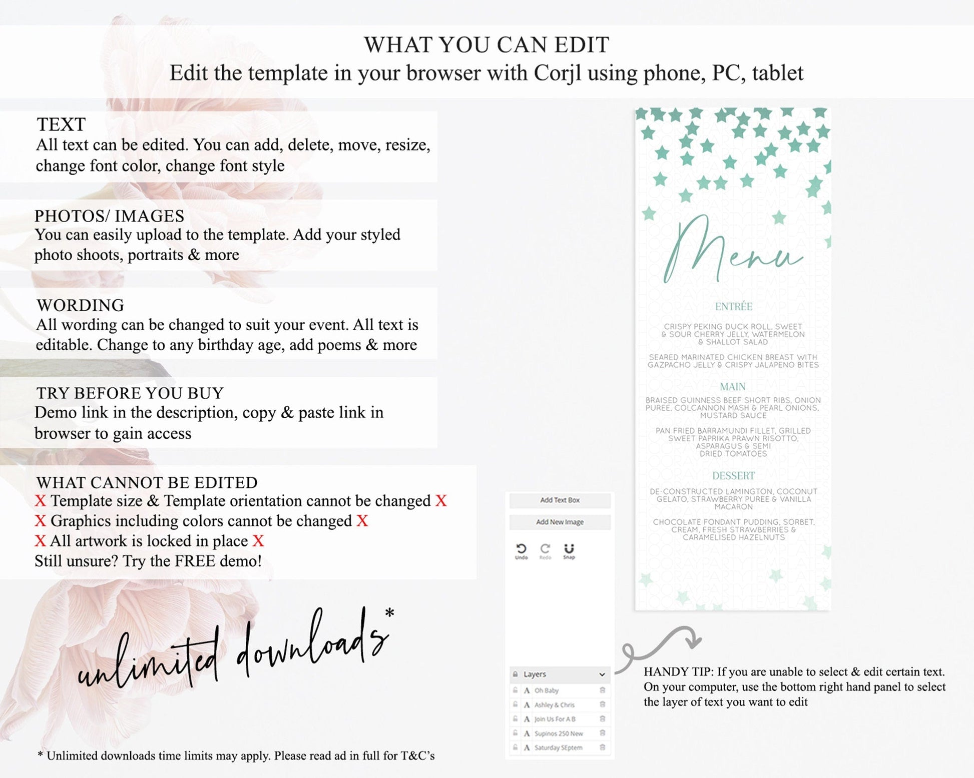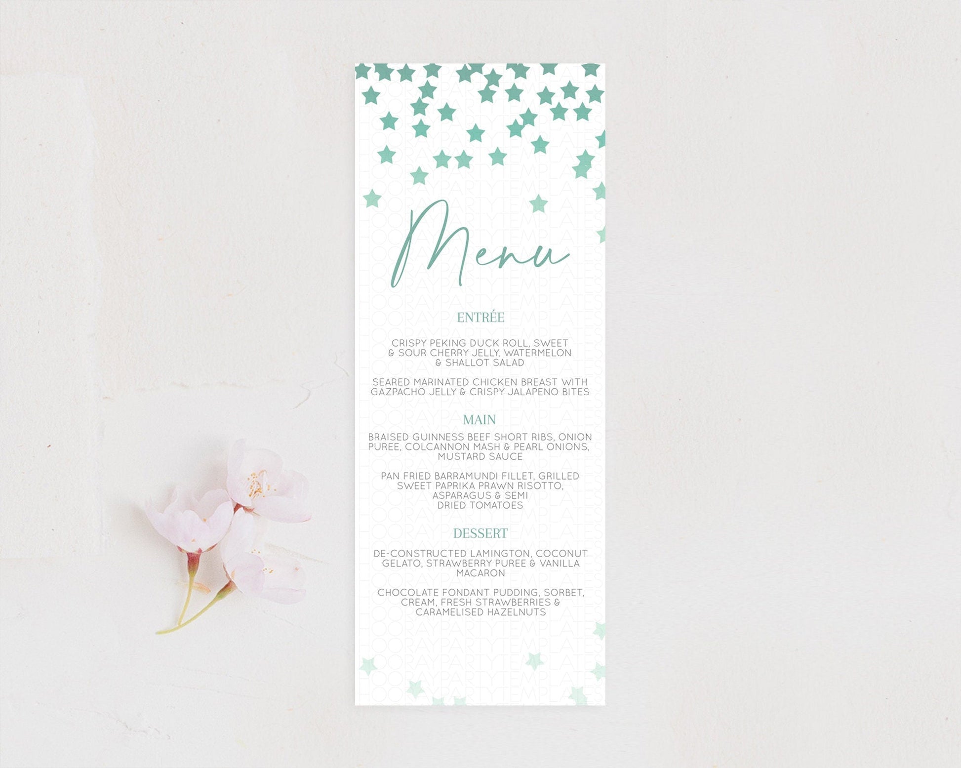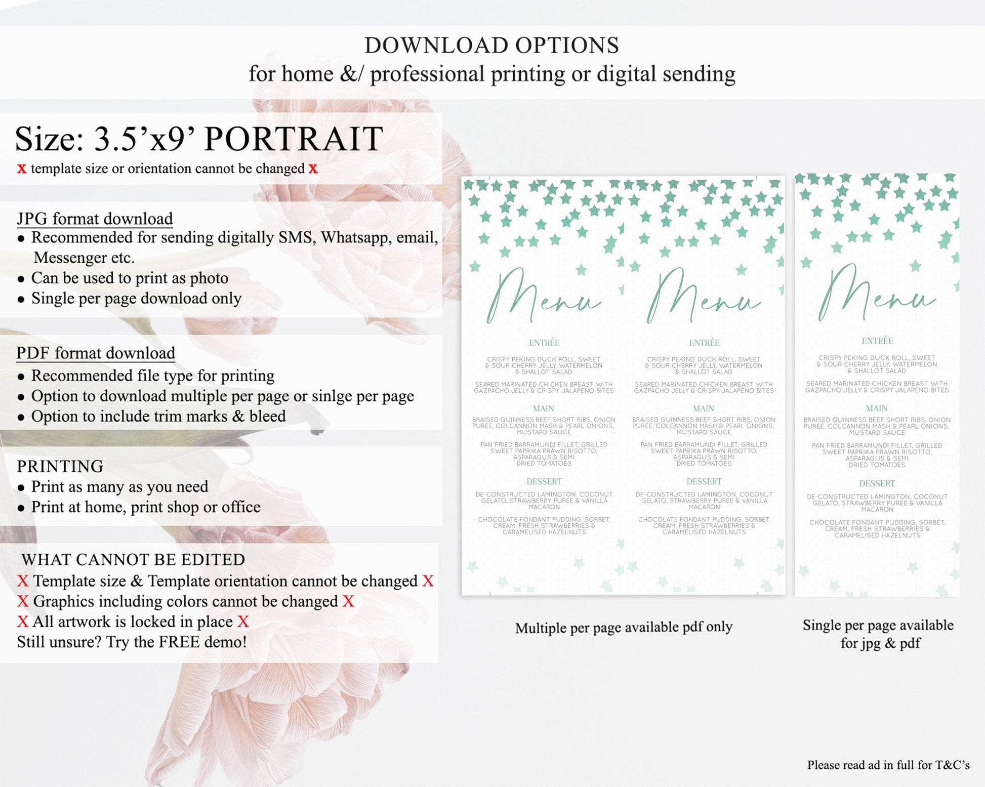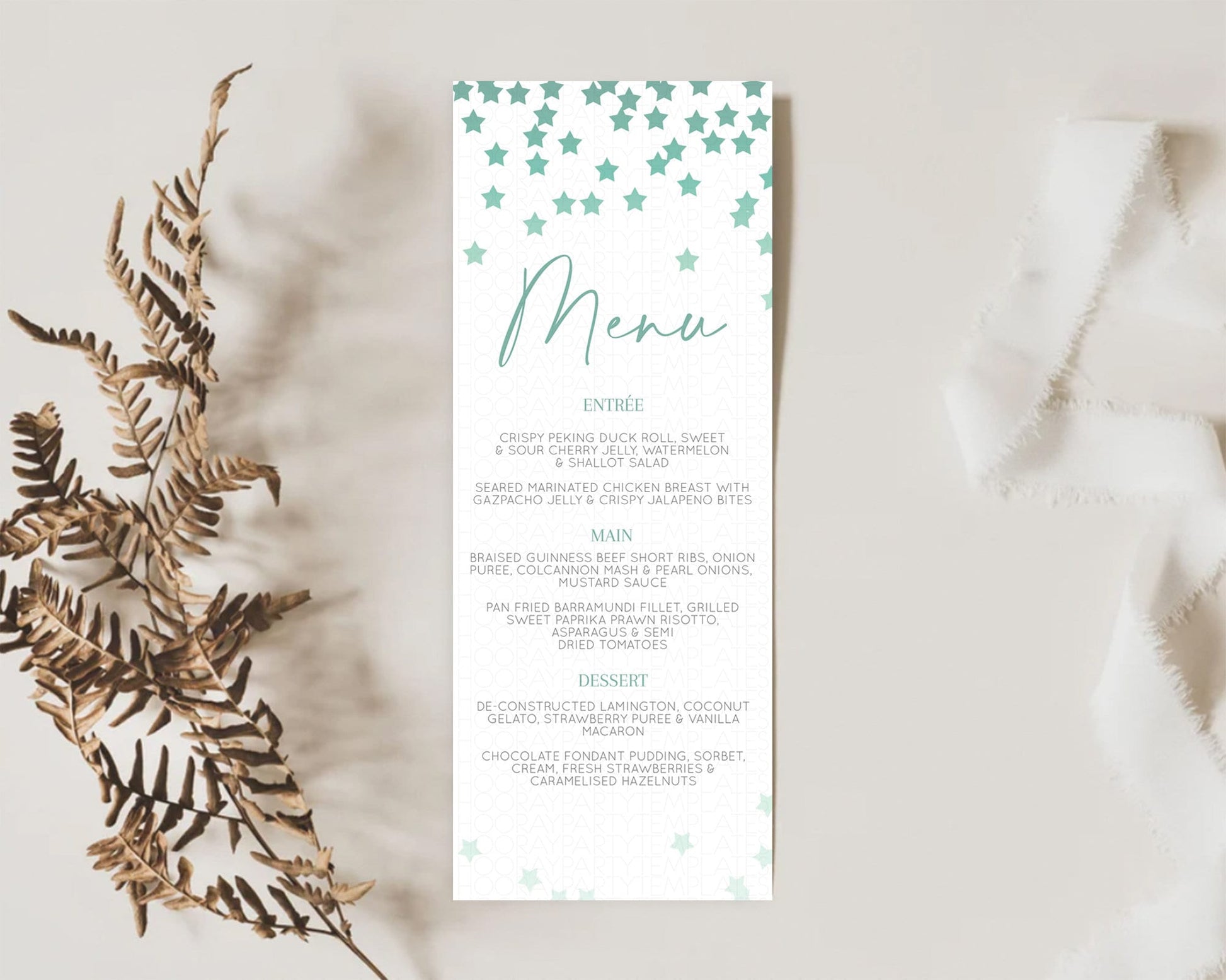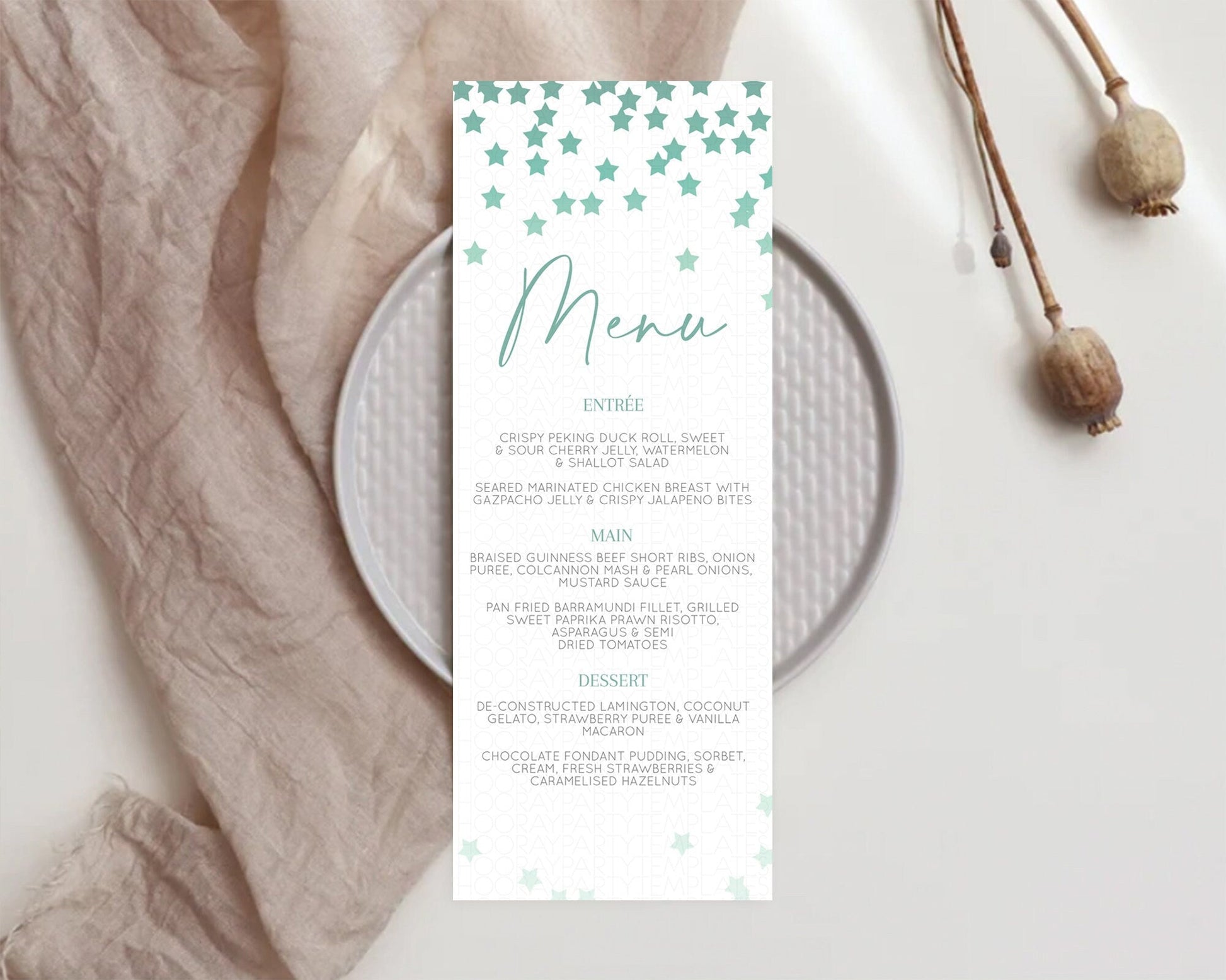 Star Menu Template Pastel Stars Menu Shooting Star Twinkle Little Star Decor Rainbow Colorful Confetti Dinner Dessert Food Menu D10310