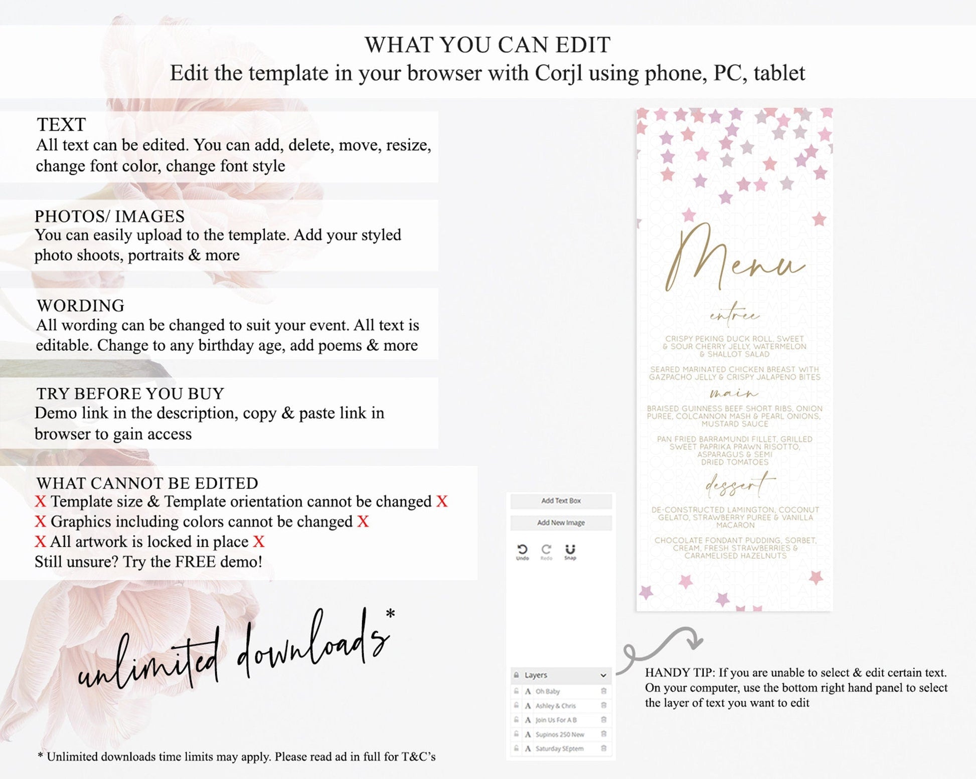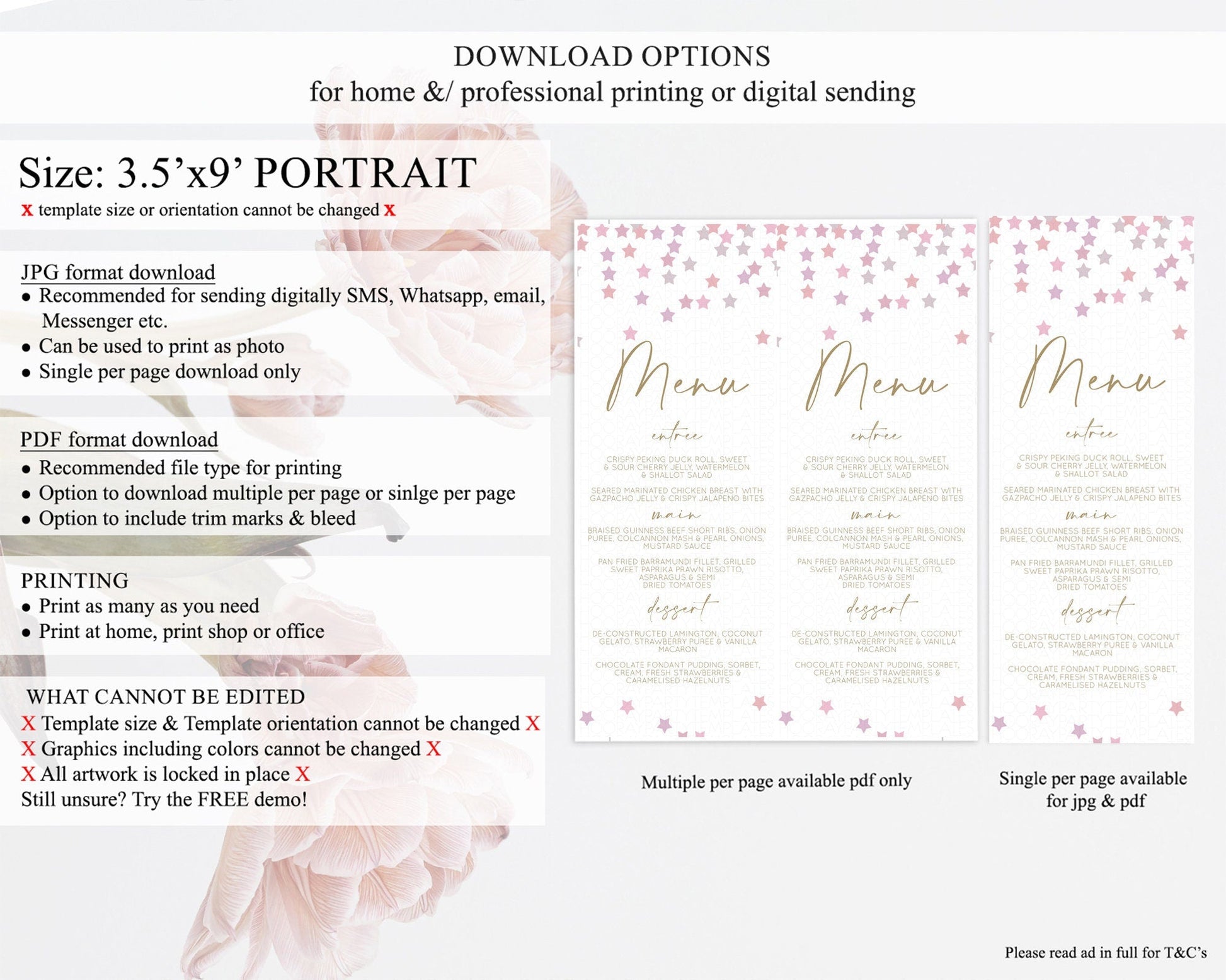 • Template size & orientation cannot be changed. Please use the demo link to confirm this product suits your needs.