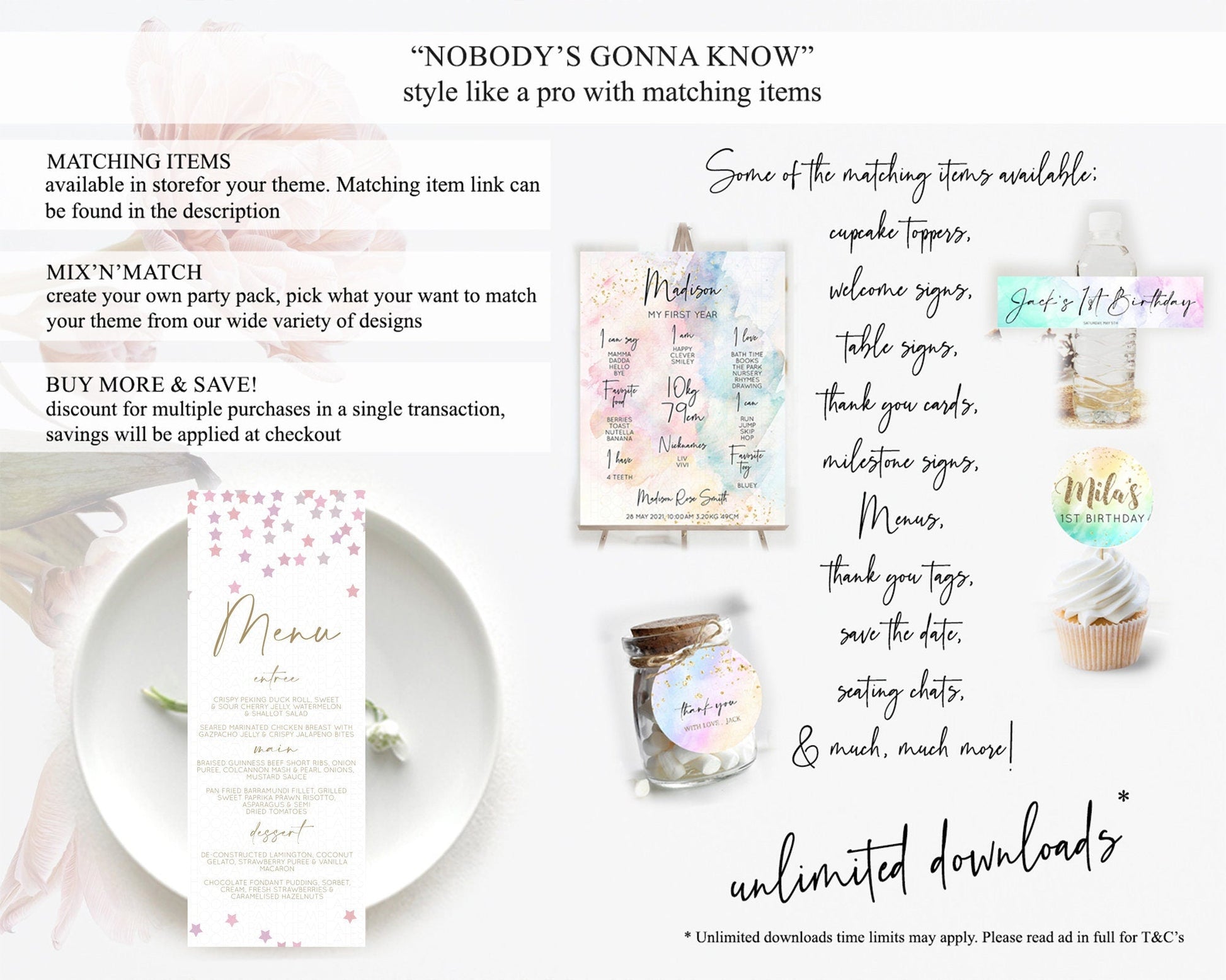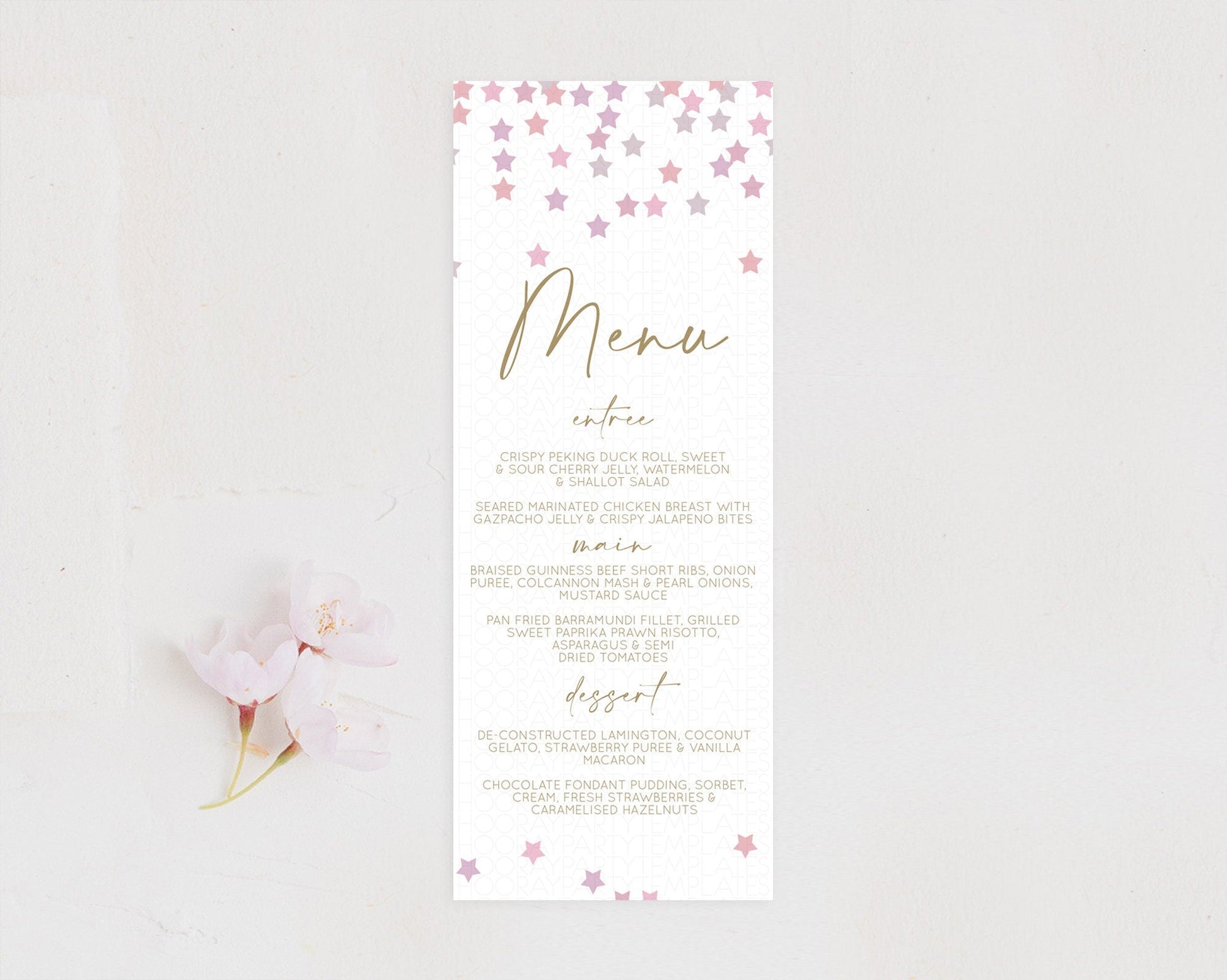 Star Menu Template Pastel Stars Menu Shooting Star Twinkle Little Star Decor Rainbow Colorful Confetti Dinner Dessert Food Menu D10344
