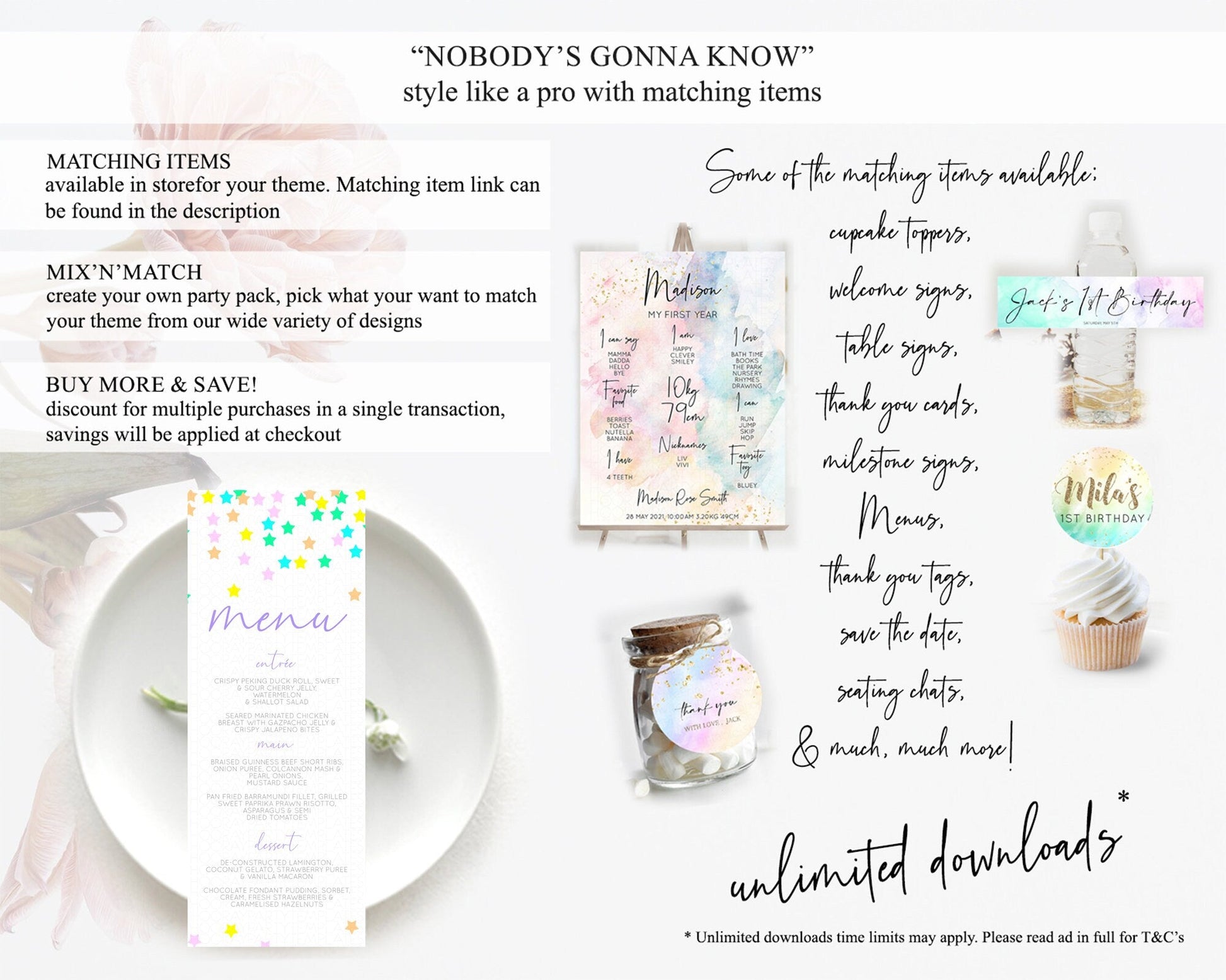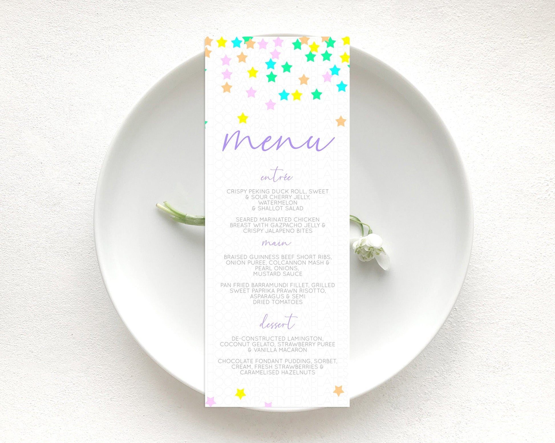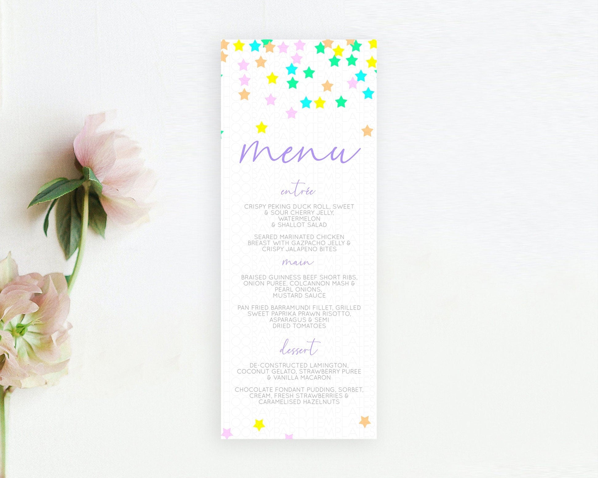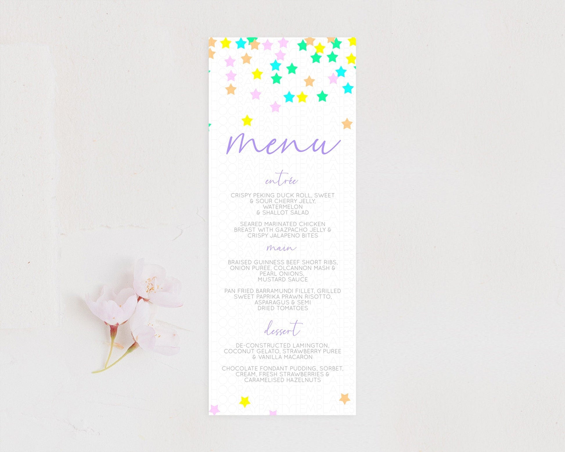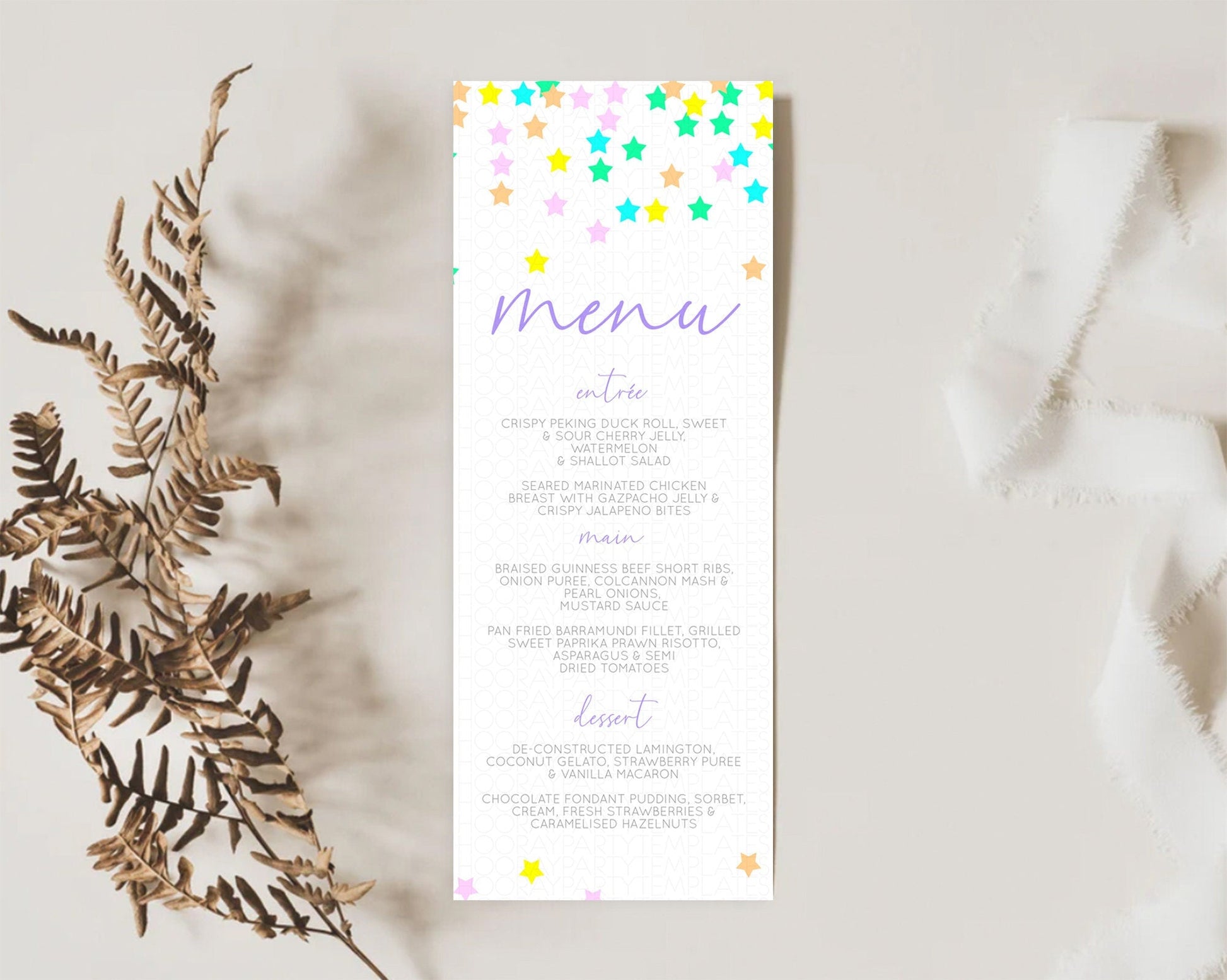 Star Menu Template Pastel Stars Menu Shooting Star Twinkle Little Star Decor Rainbow Colorful Confetti Dinner Dessert Food Menu D10394