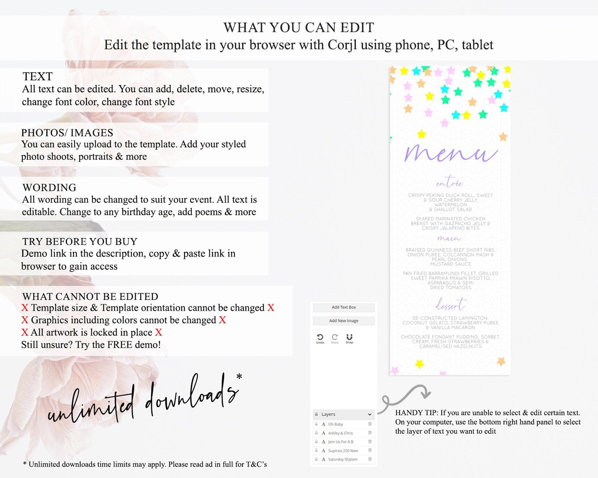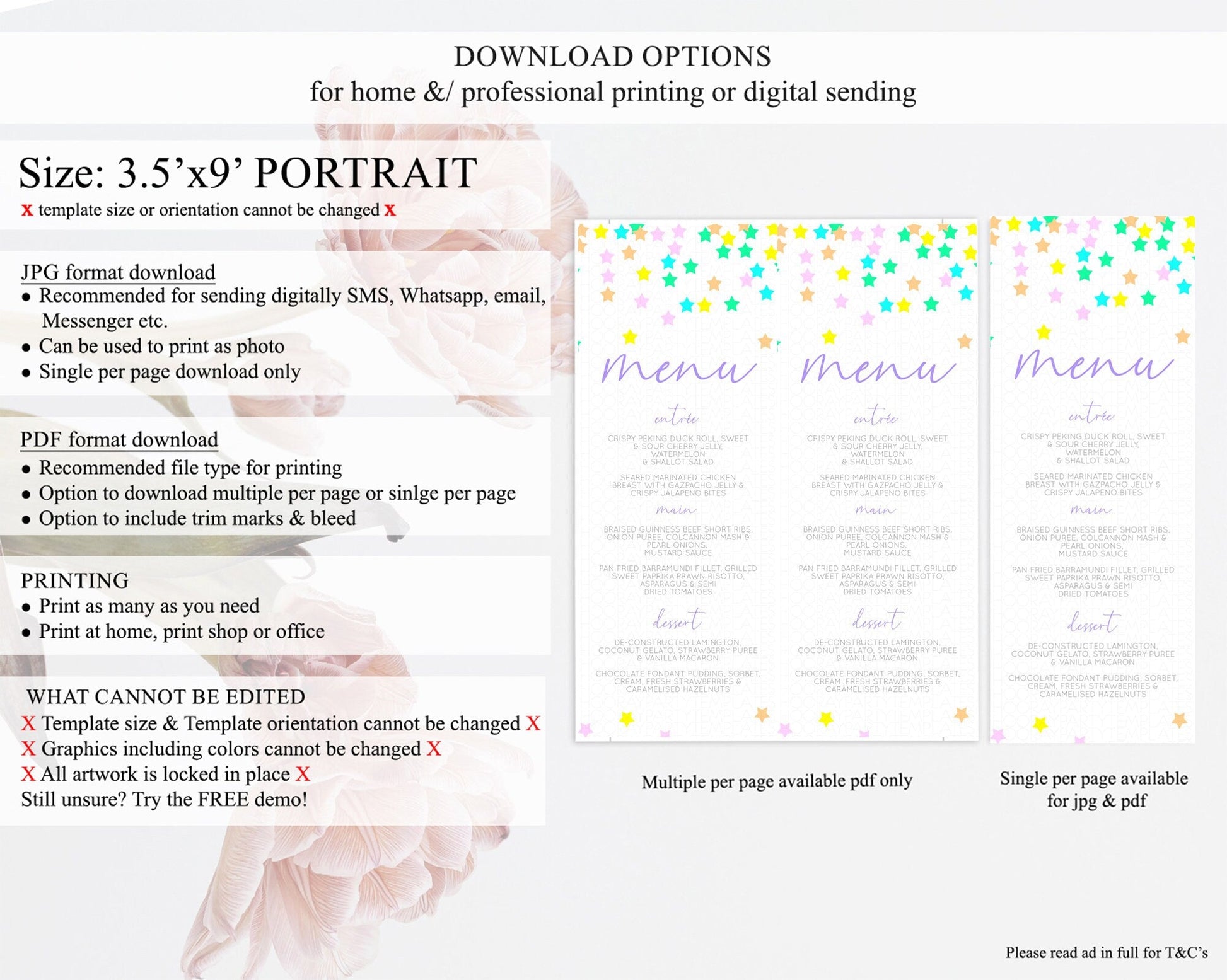• Template size & orientation cannot be changed. Please use the demo link to confirm this product suits your needs.