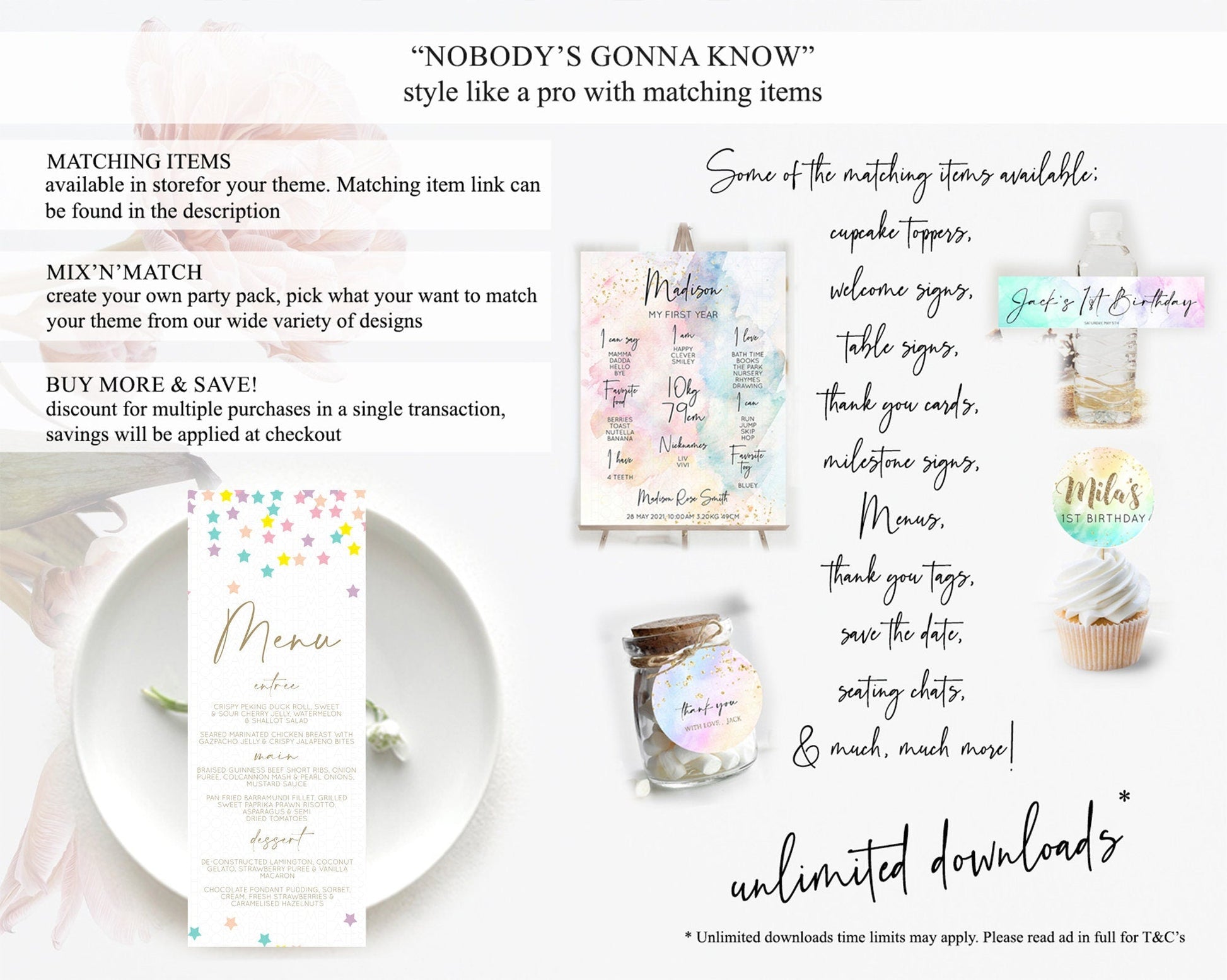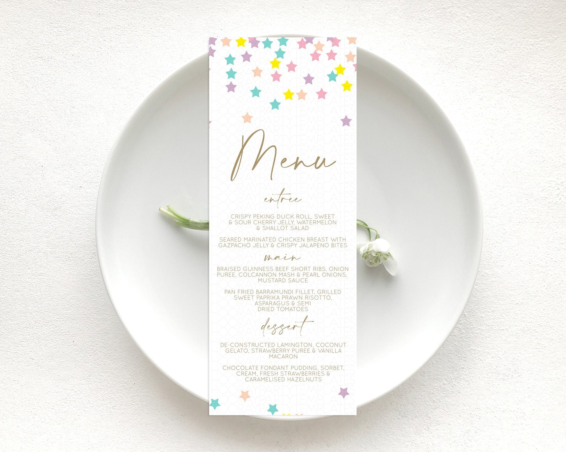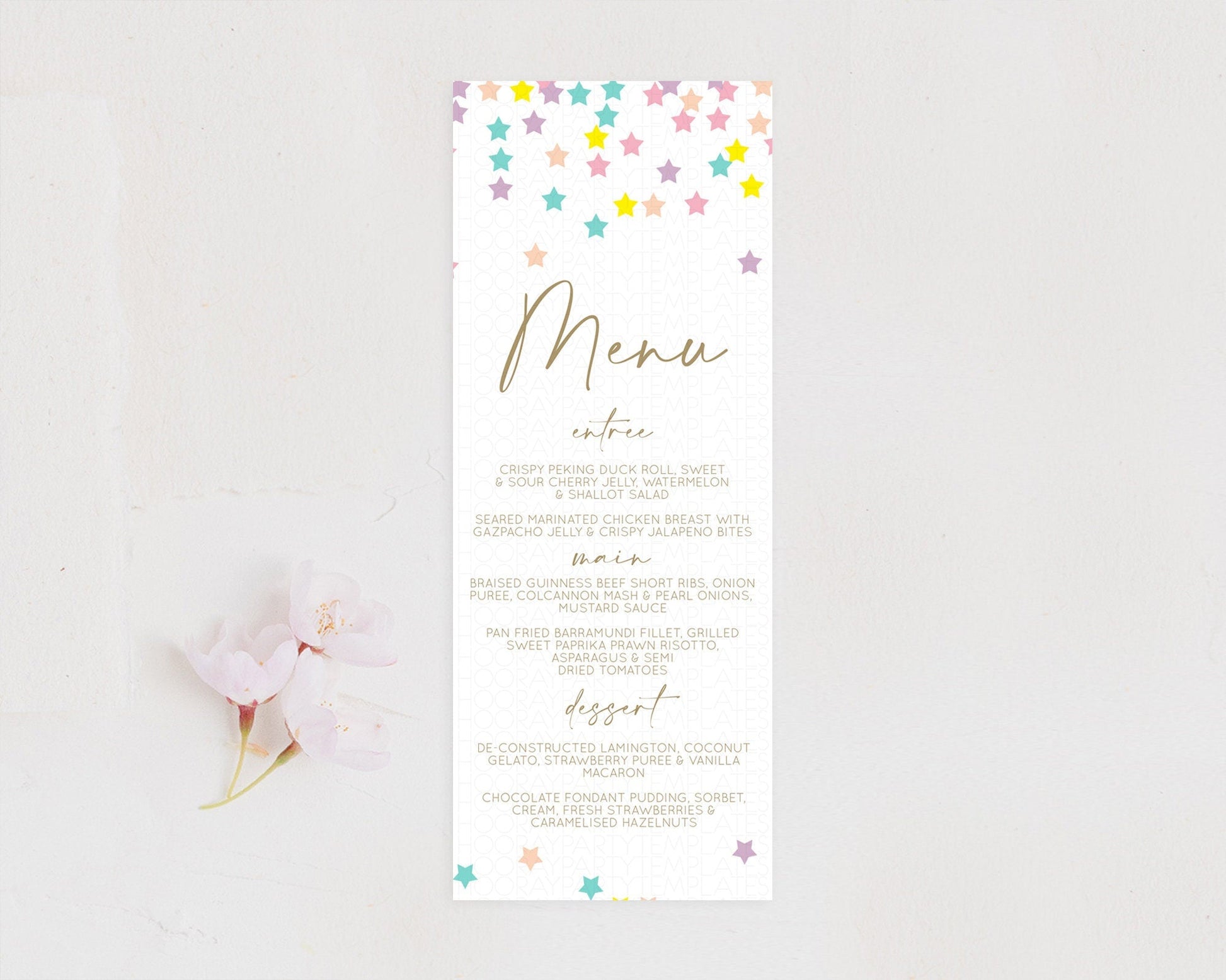 Star Menu Template Pastel Stars Menu Shooting Star Twinkle Little Star Decor Rainbow Colorful Confetti Dinner Dessert Food Menu D10601