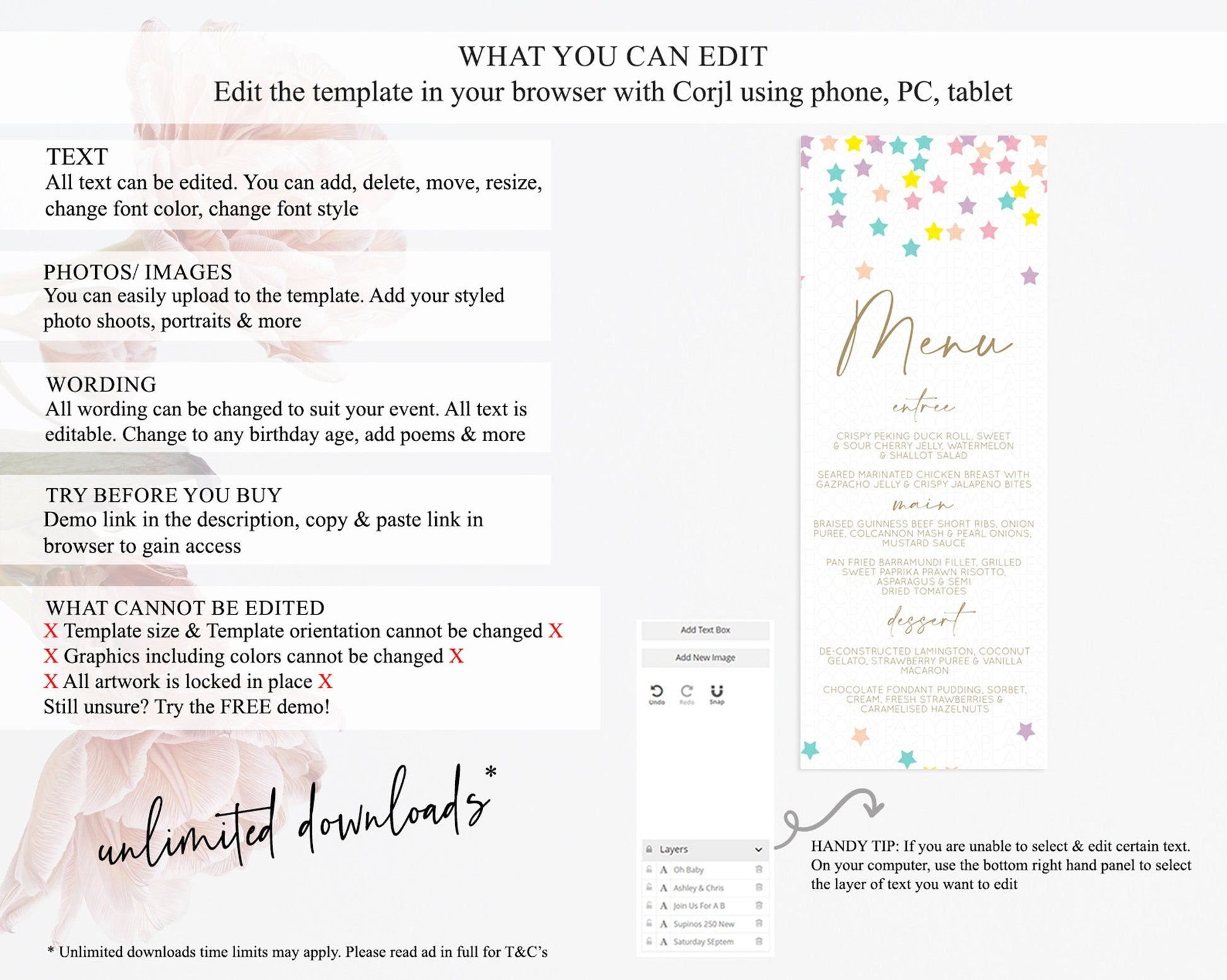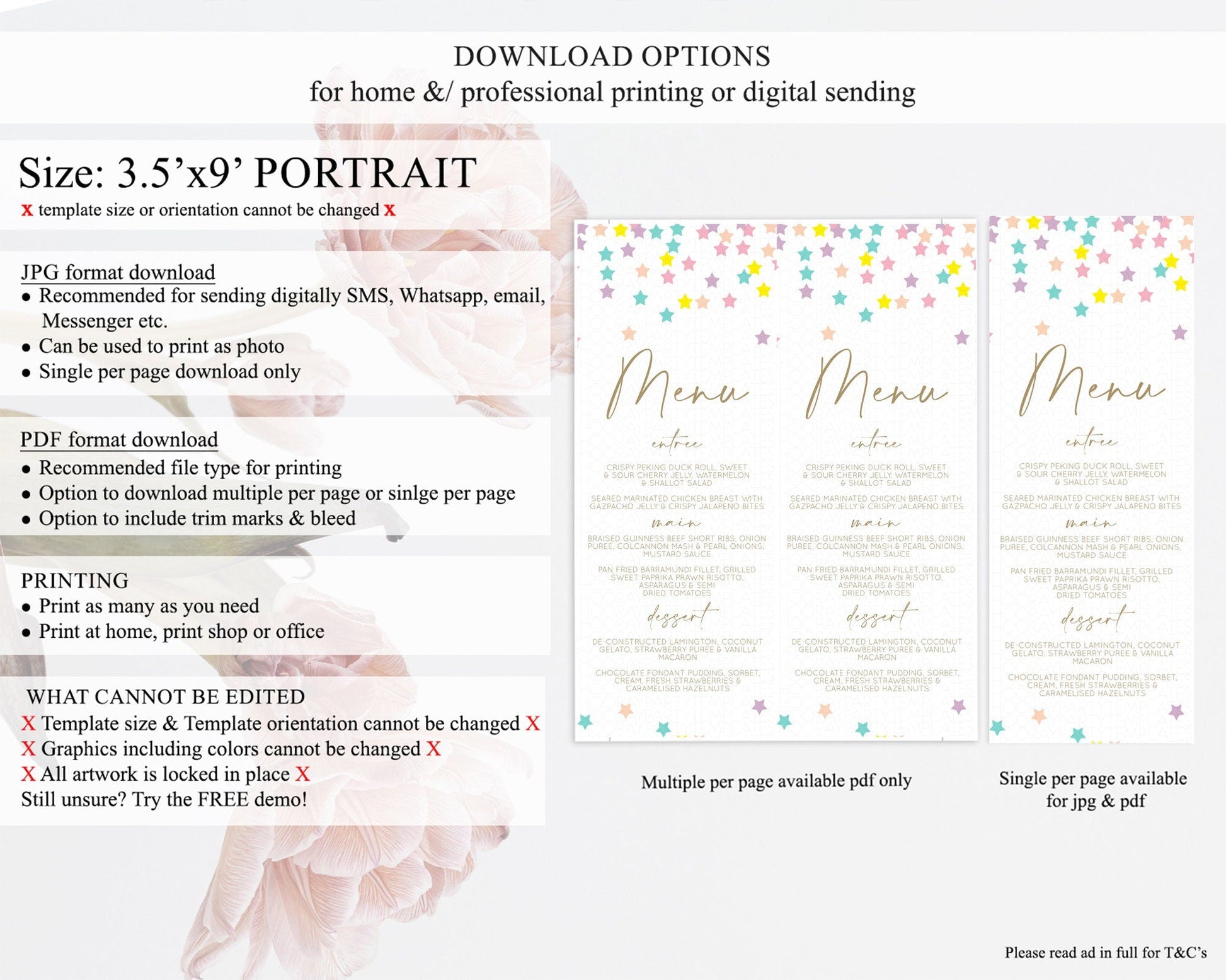 • Template size & orientation cannot be changed. Please use the demo link to confirm this product suits your needs.