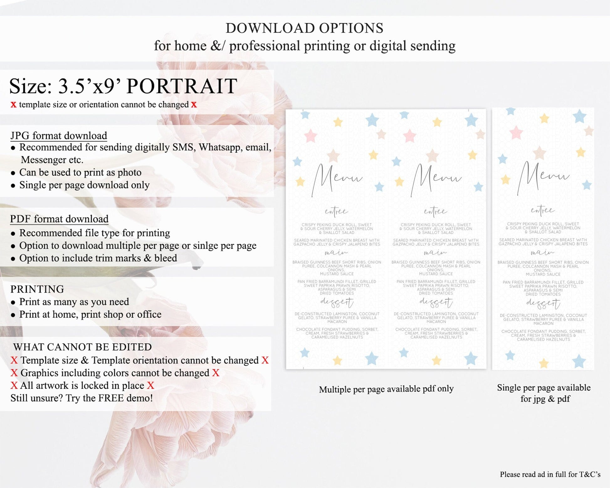 • Template size & orientation cannot be changed. Please use the demo link to confirm this product suits your needs.
