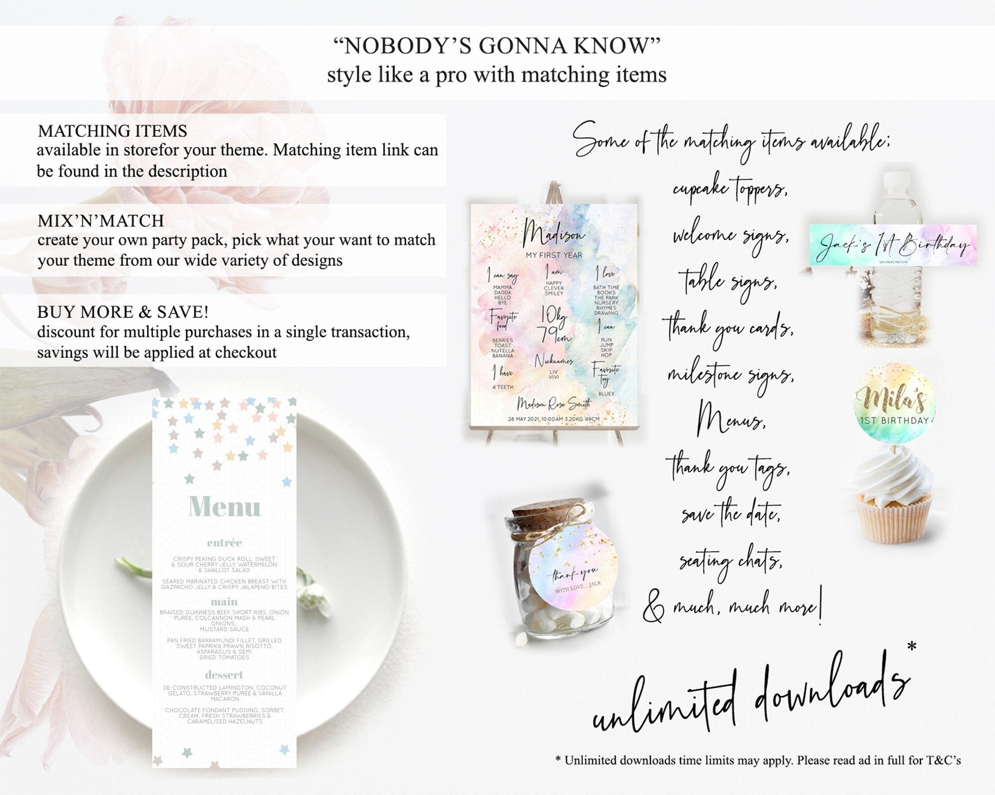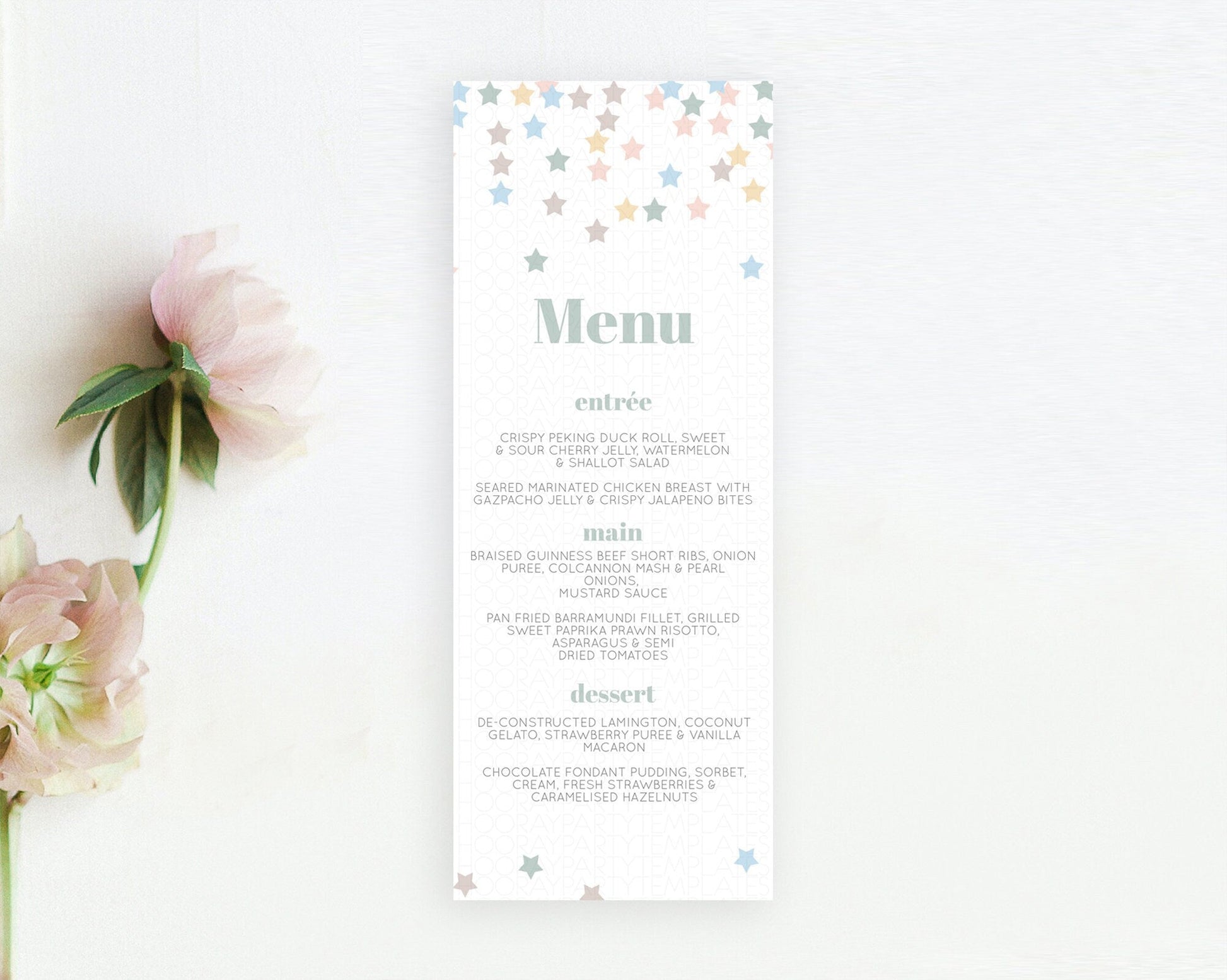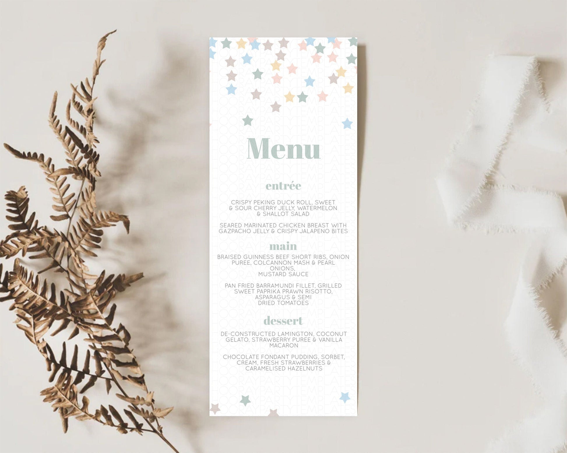 Star Menu Template Pastel Stars Menu Shooting Star Twinkle Little Star Decor Rainbow Colorful Confetti Dinner Dessert Food Menu D10795