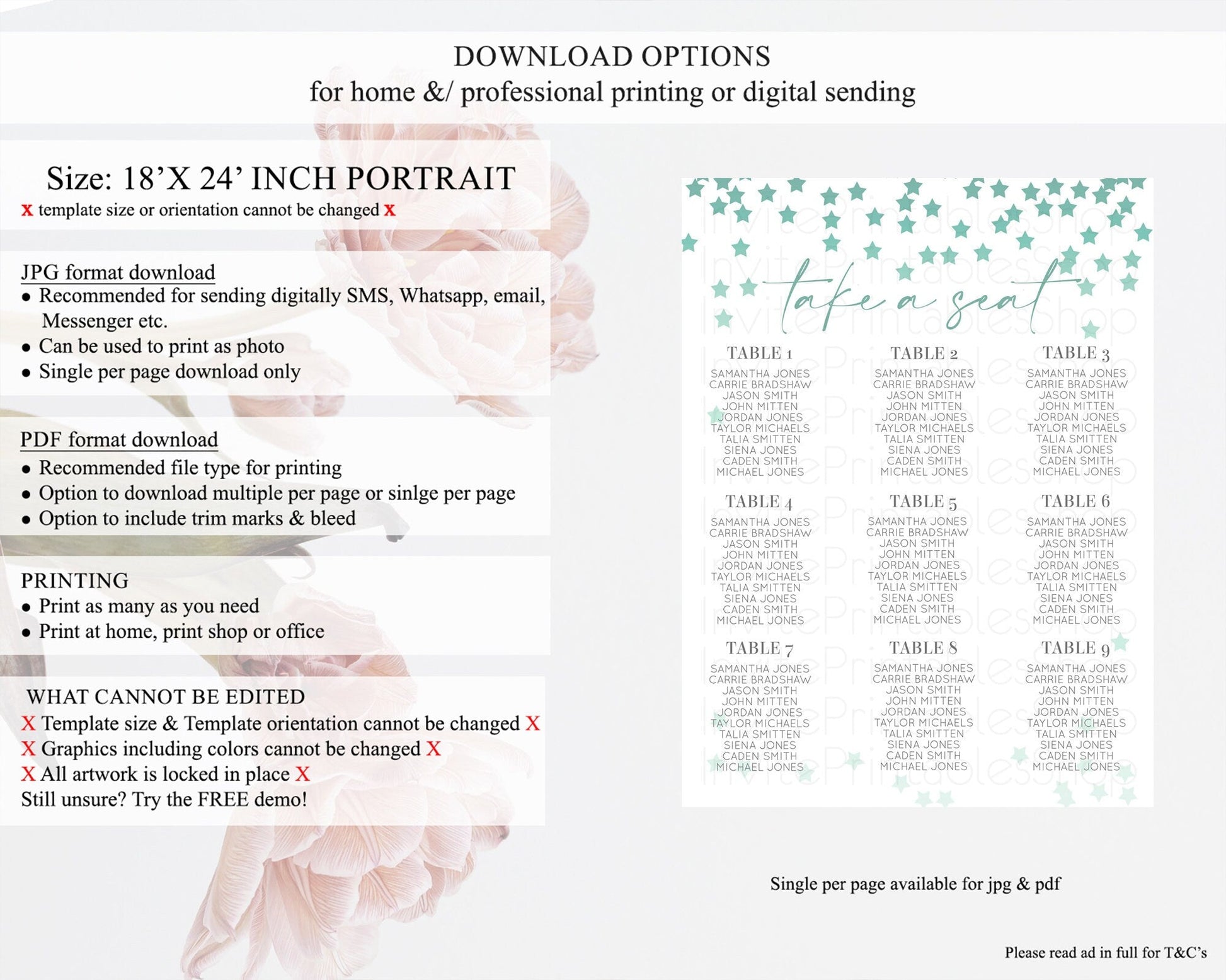 • Template size & orientation cannot be changed. Please use the demo link to confirm this product suits your needs.