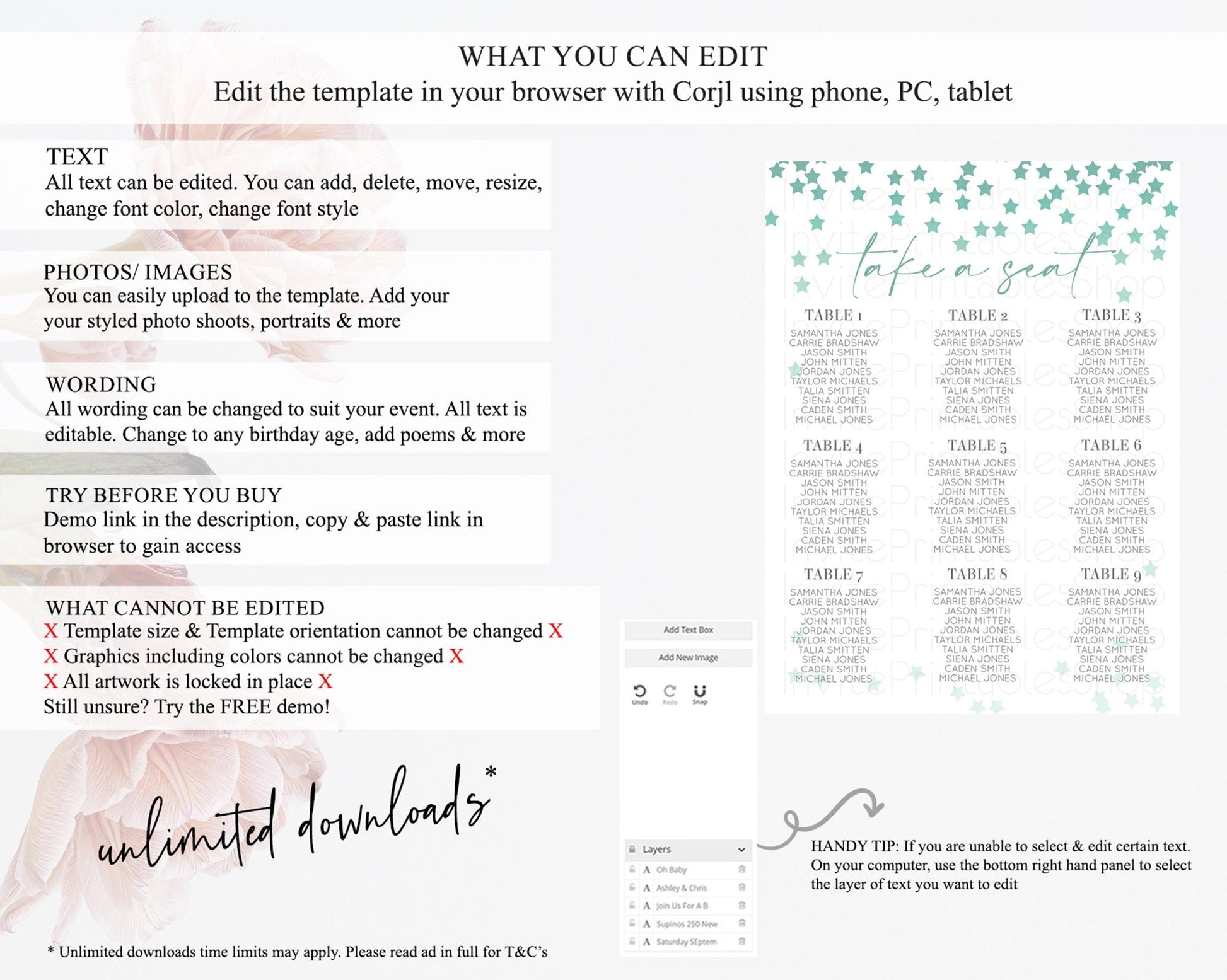 • After purchase, Corjl emails your editing link. Allow up to 15 minutes for delivery.