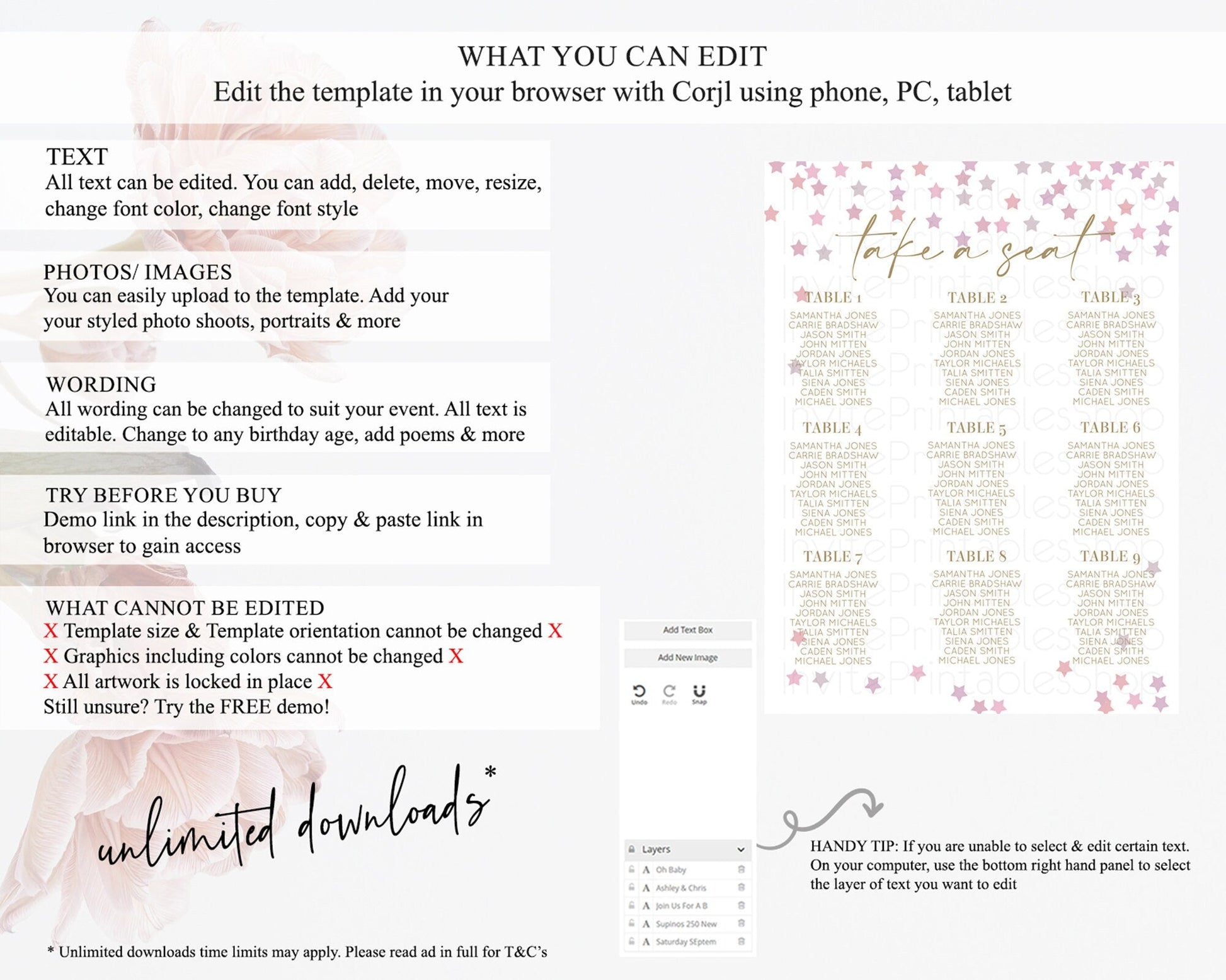 • After purchase, Corjl emails your editing link. Allow up to 15 minutes for delivery.