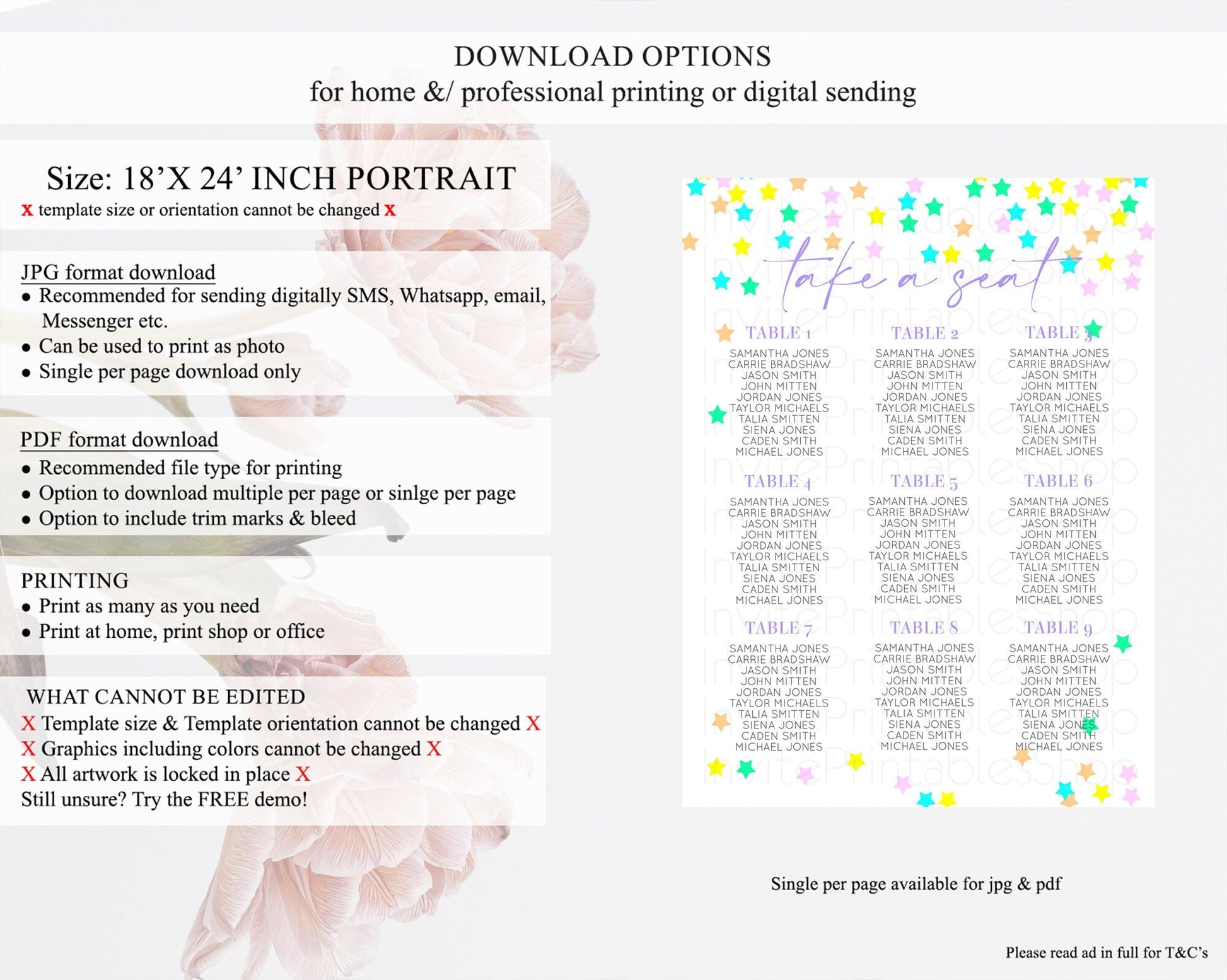 • Template size & orientation cannot be changed. Please use the demo link to confirm this product suits your needs.
