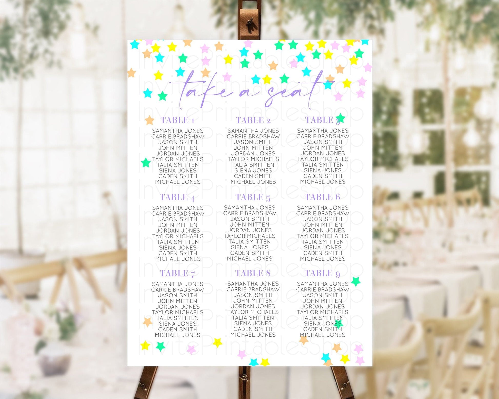 Star Seating Chart Pastel Stars Seating Chart Shooting Star Sprinkle Stars Rainbow Colorful Confetti Twinkle Little Star Decor D10395