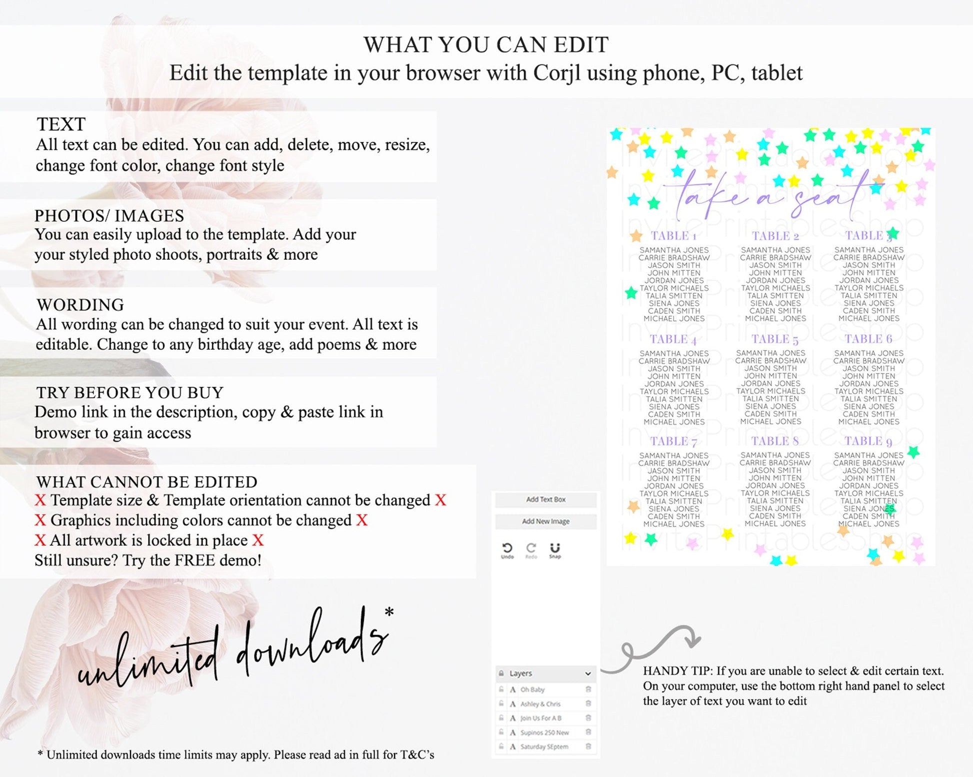 • After purchase, Corjl emails your editing link. Allow up to 15 minutes for delivery.