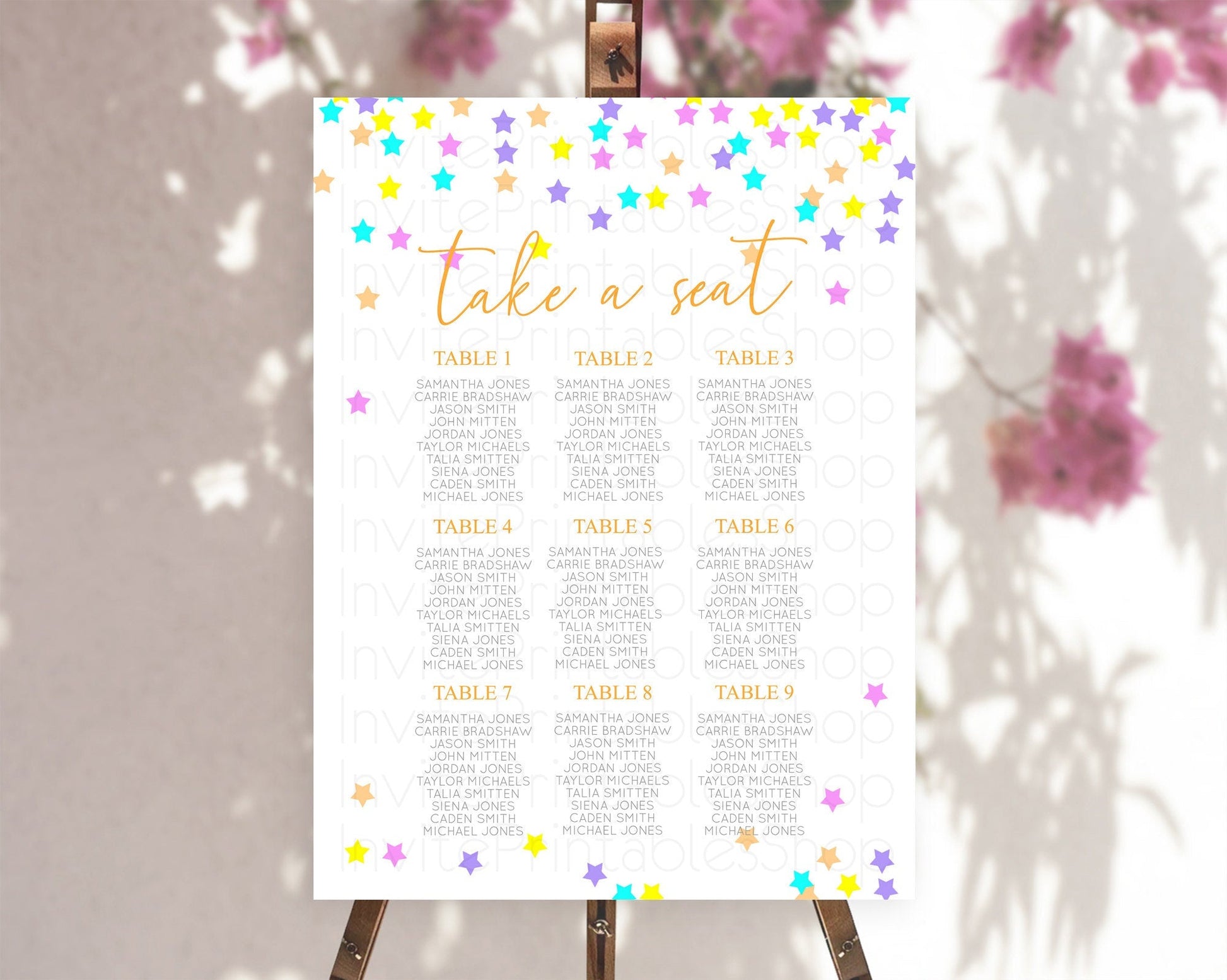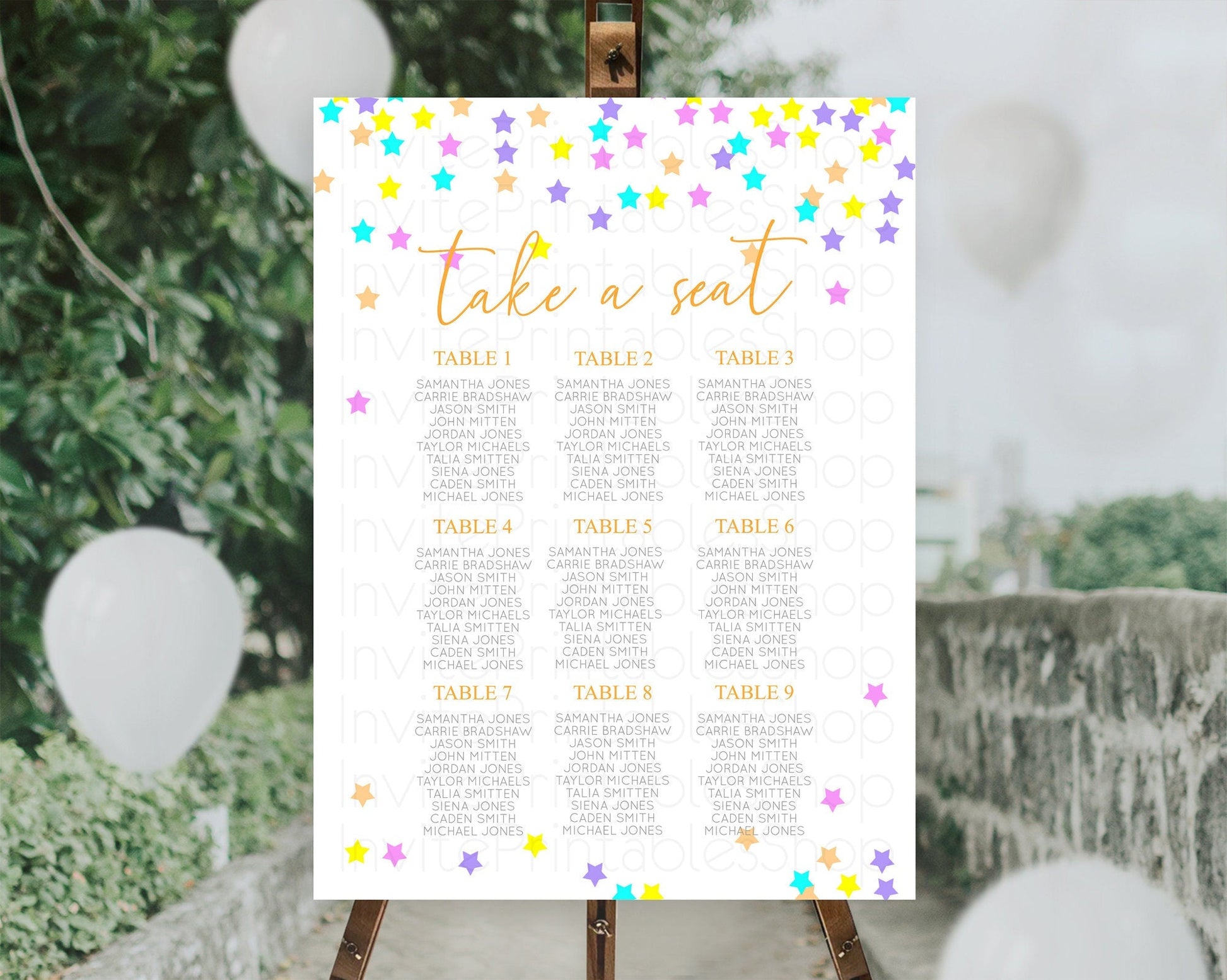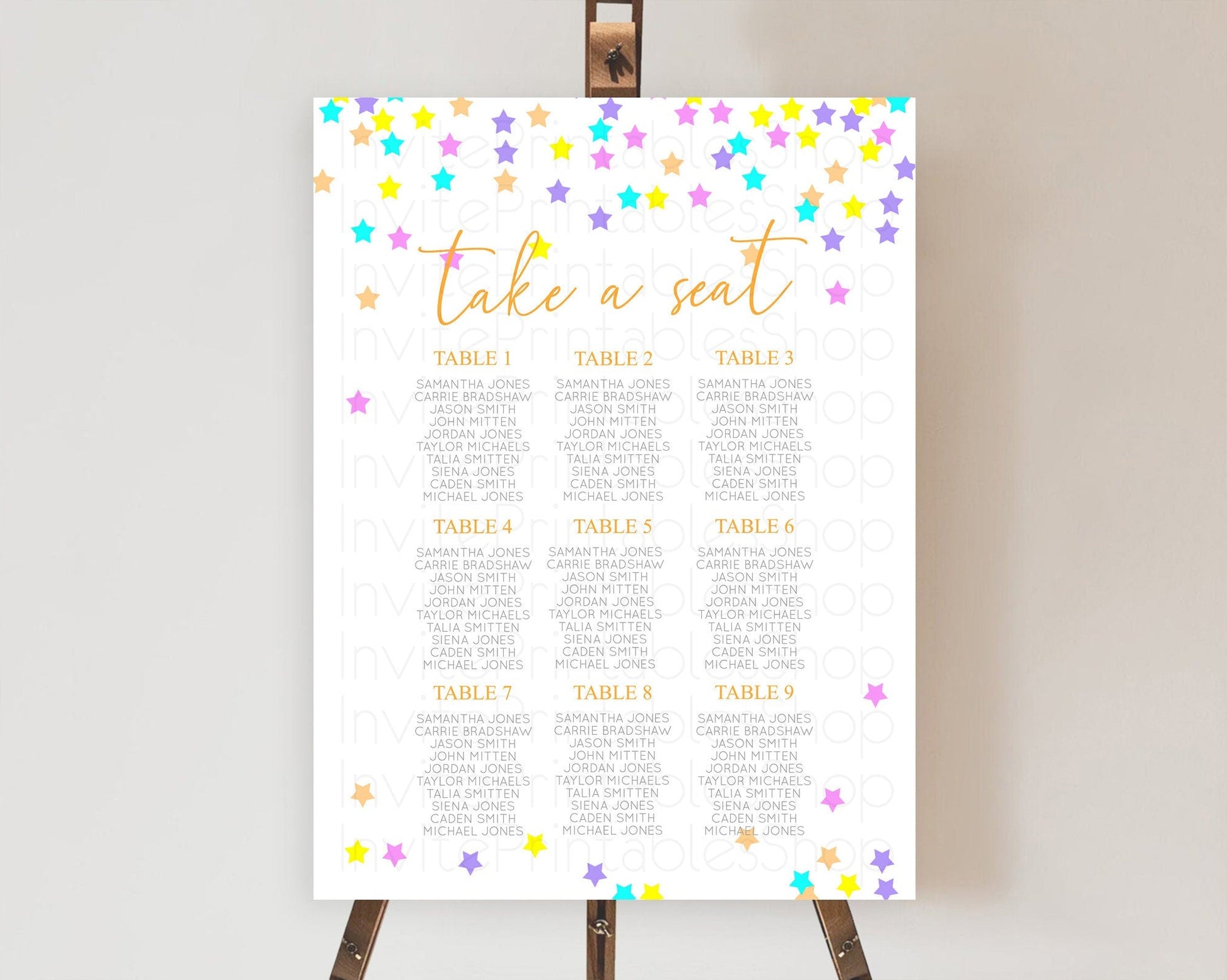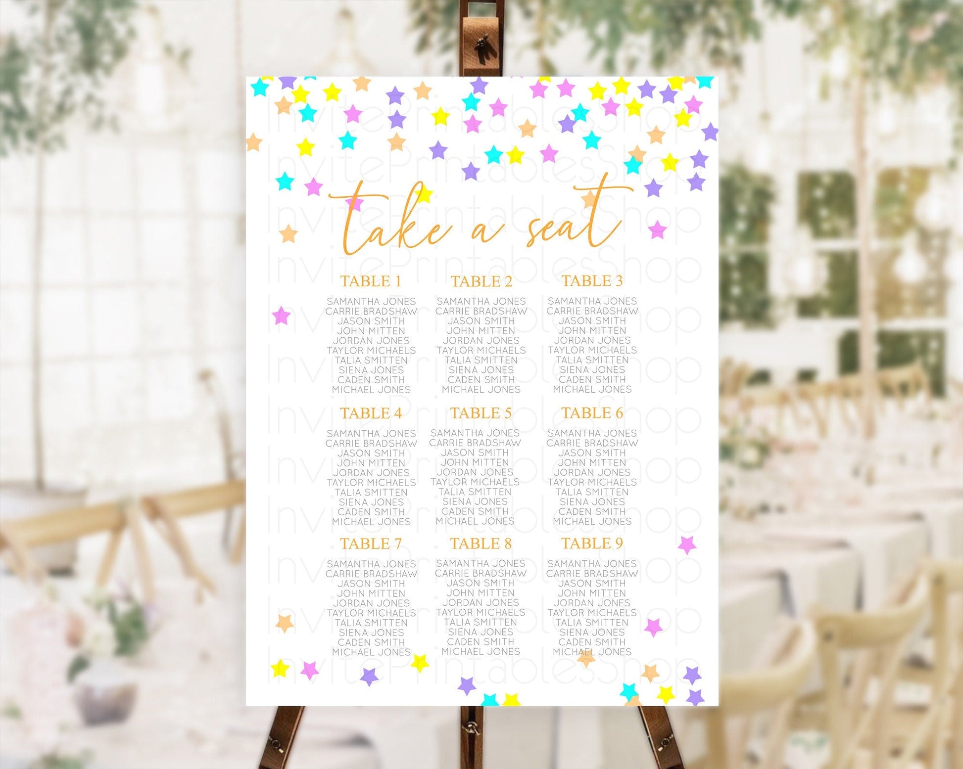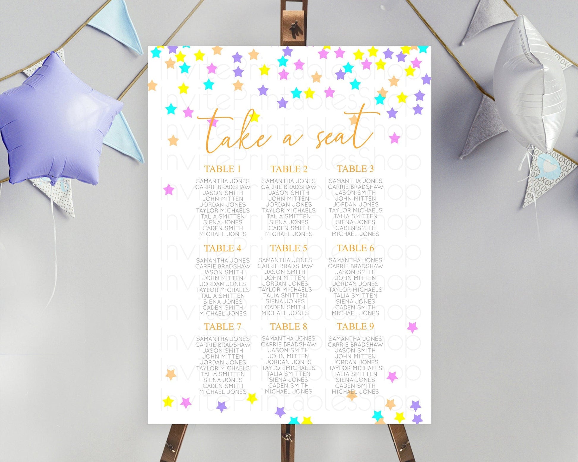 Star Seating Chart Pastel Stars Seating Chart Shooting Star Sprinkle Stars Rainbow Colorful Confetti Twinkle Little Star Decor D10397