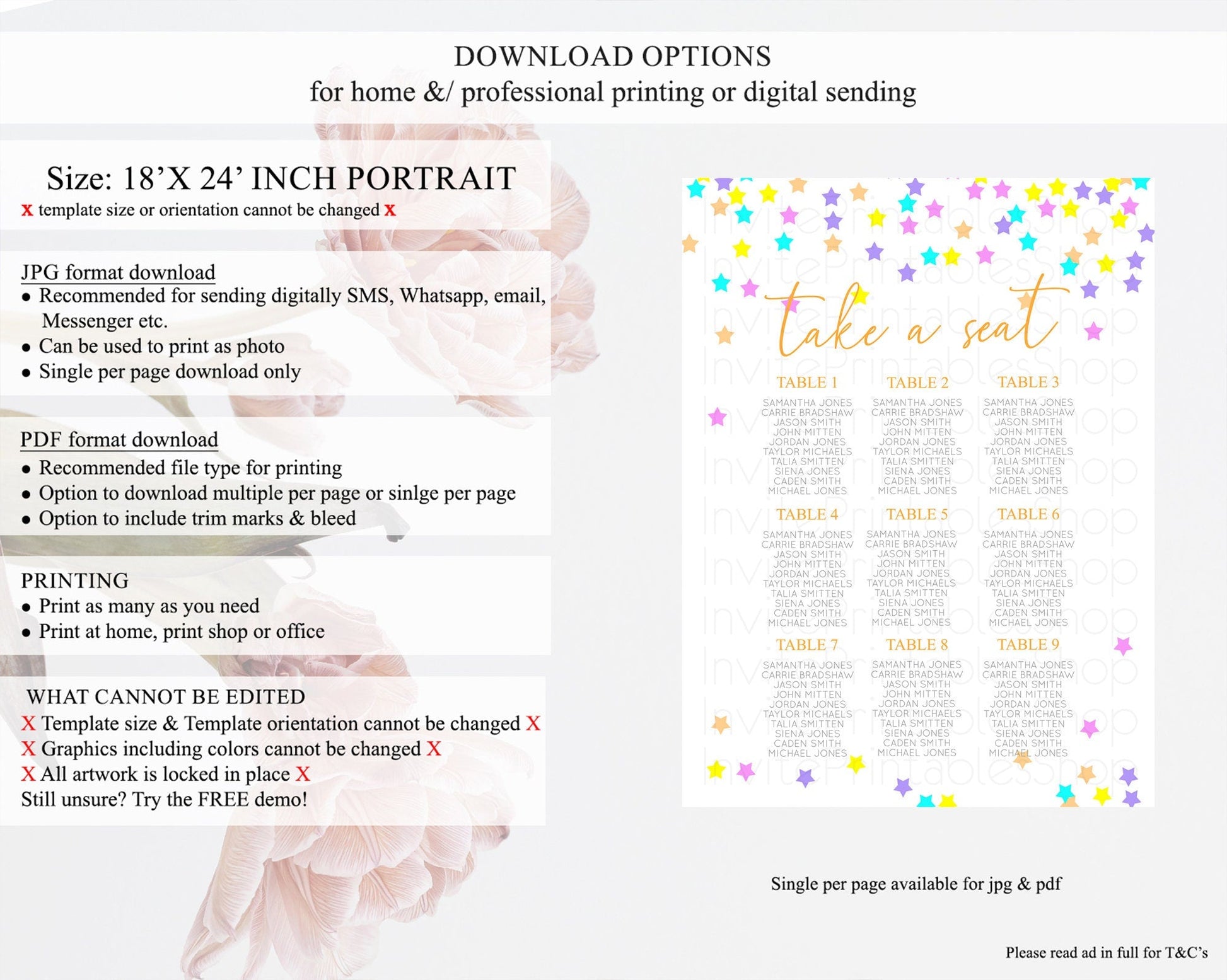 • Template size & orientation cannot be changed. Please use the demo link to confirm this product suits your needs.