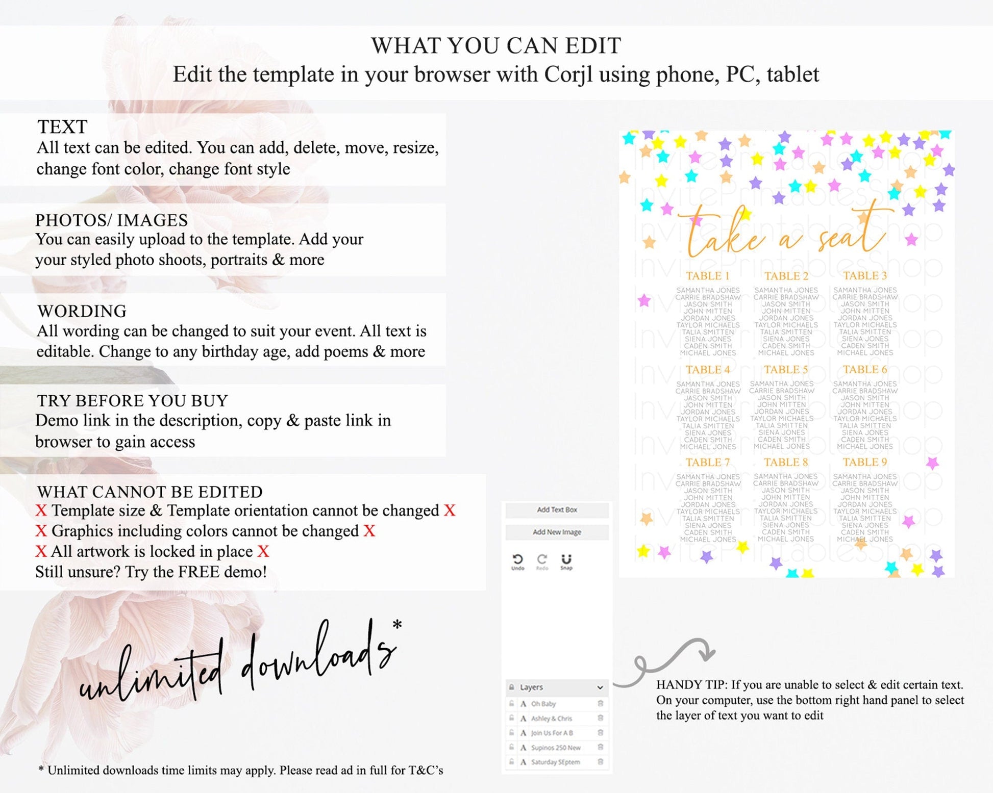 • After purchase, Corjl emails your editing link. Allow up to 15 minutes for delivery.