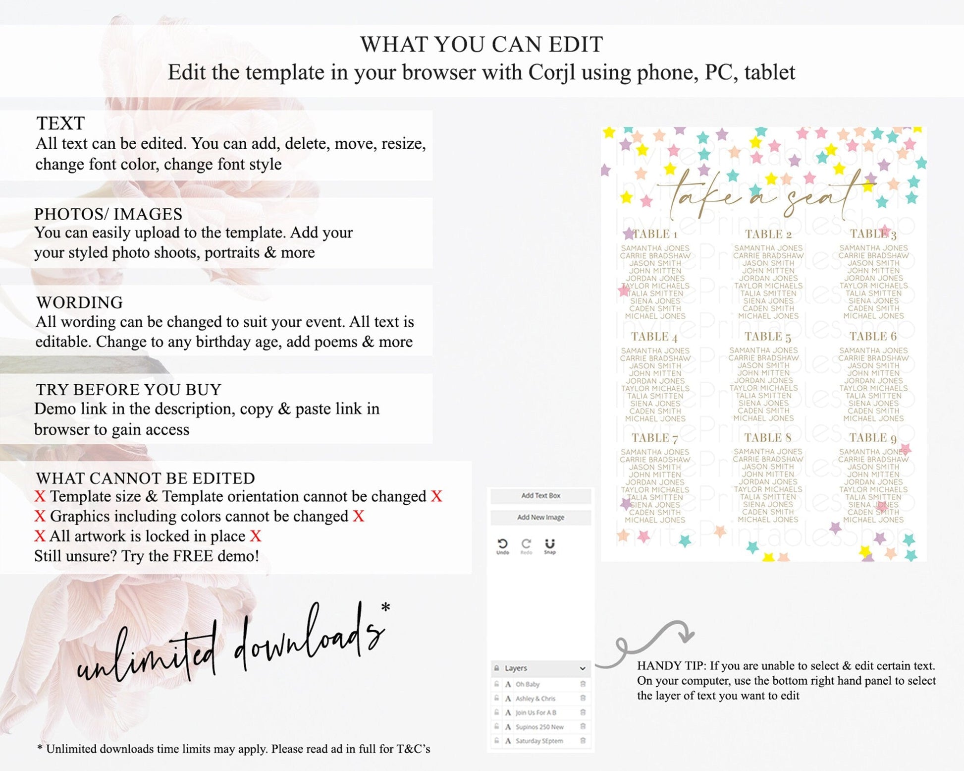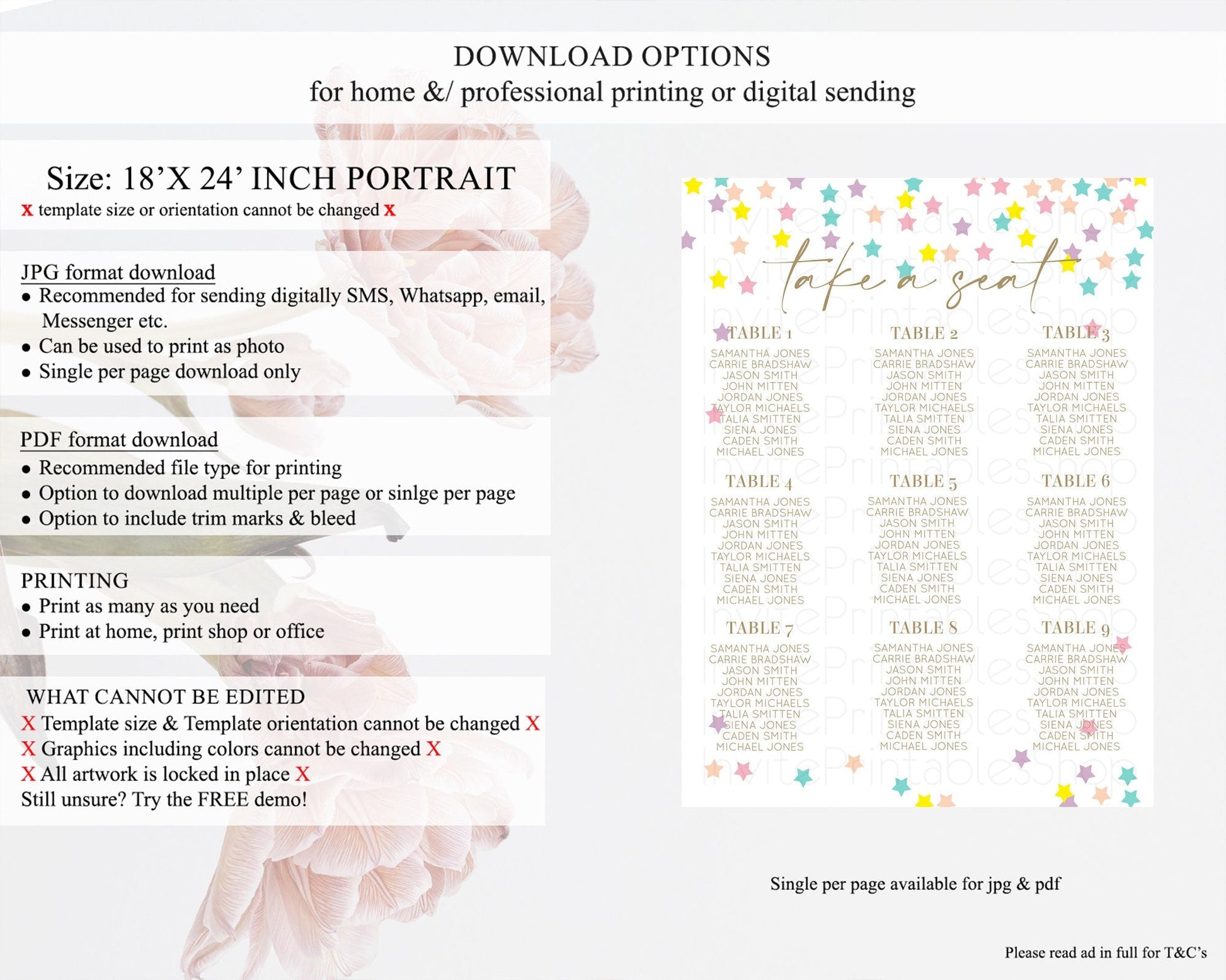 Star Seating Chart Pastel Stars Seating Chart Shooting Star Sprinkle Stars Rainbow Colorful Confetti Twinkle Little Star Decor D10601