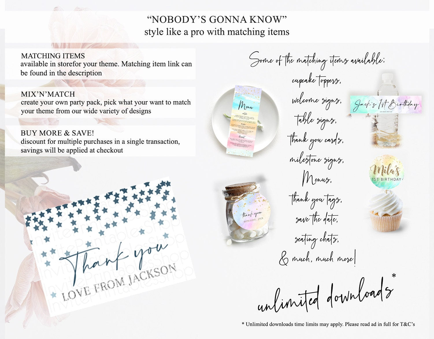 Star Thank You Card Pastel Stars Thank You Shooting Star Rainbow Colorful Confetti Twinkle Little Star Birthday Teacher Thank You D10308