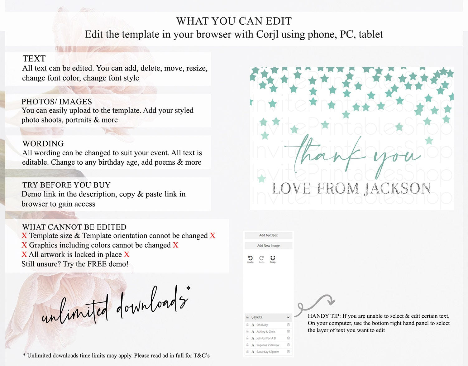 • After purchase, Corjl emails your editing link. Allow up to 15 minutes for delivery.
