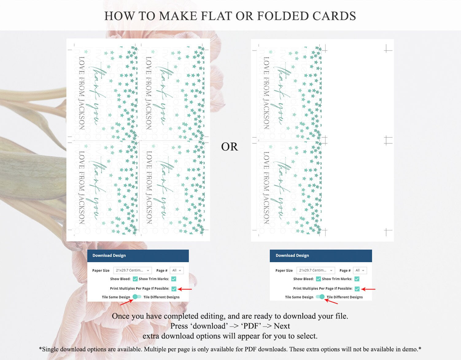 • Custom changes to artwork are not provided on existing templates.